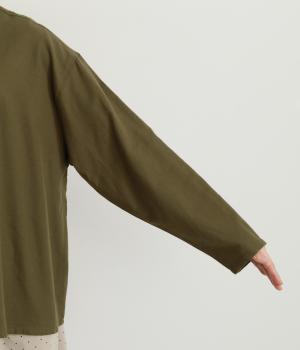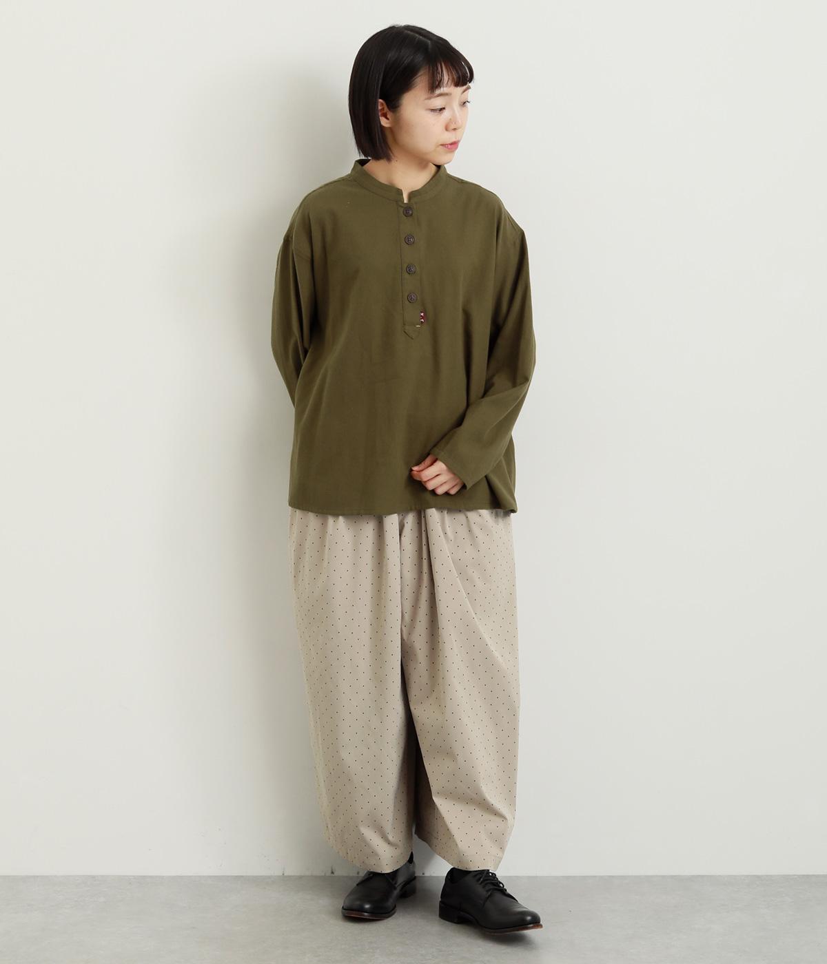 微起毛した、あたたかみのあるコットンフランネル素材です。ふわふわとした風合いが、ナチュラルな雰囲気を演出します。肌にやさしくなじむ質感が、快適な着心地を叶えます。