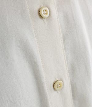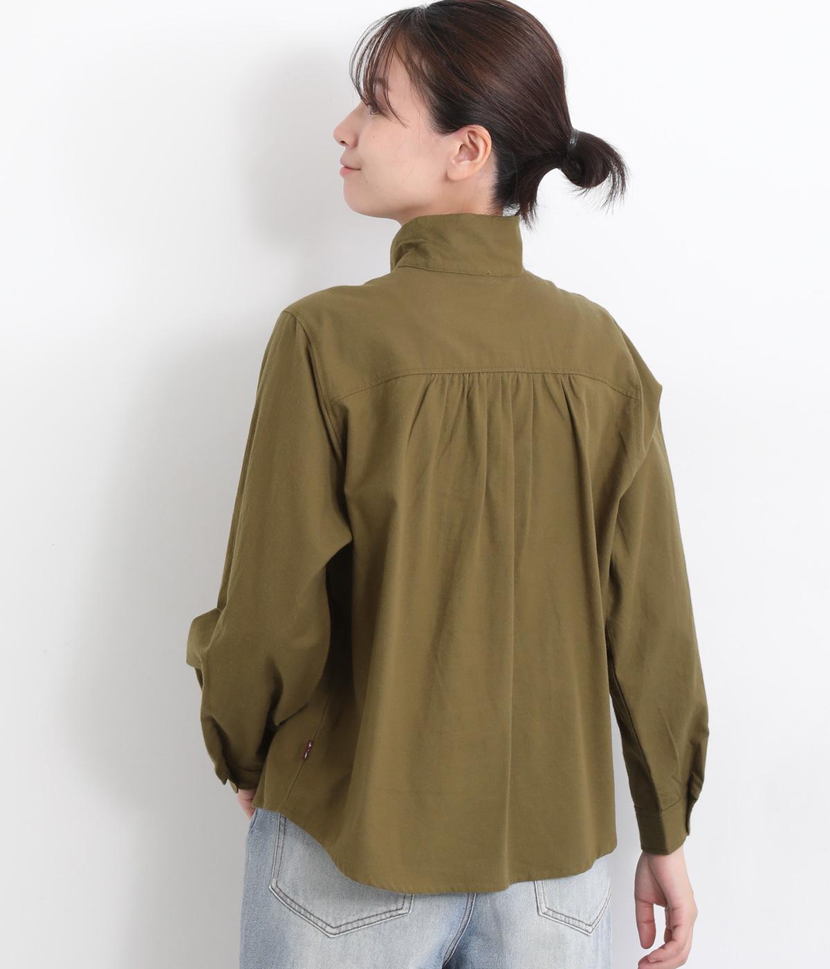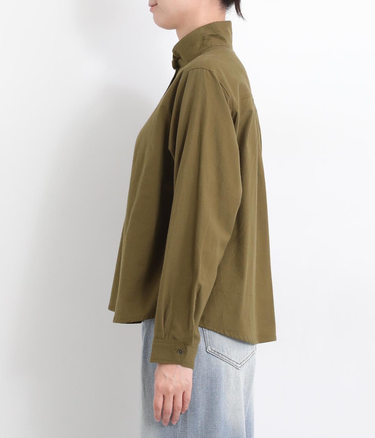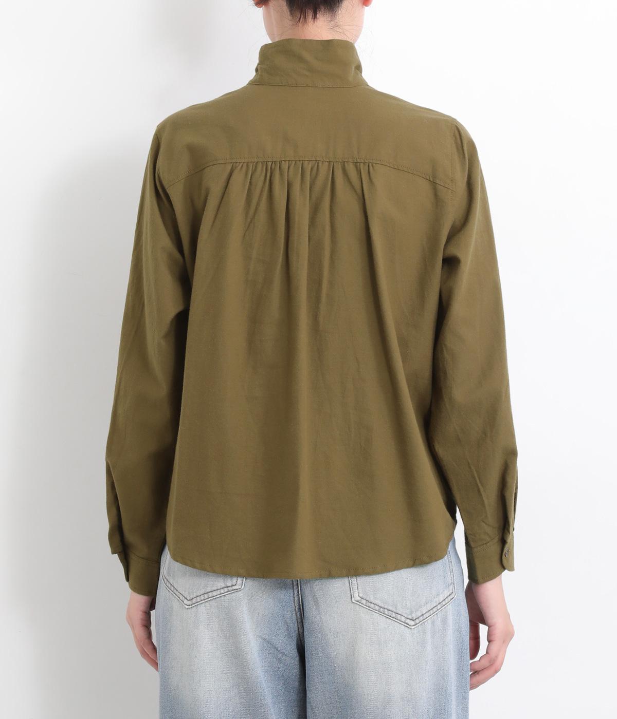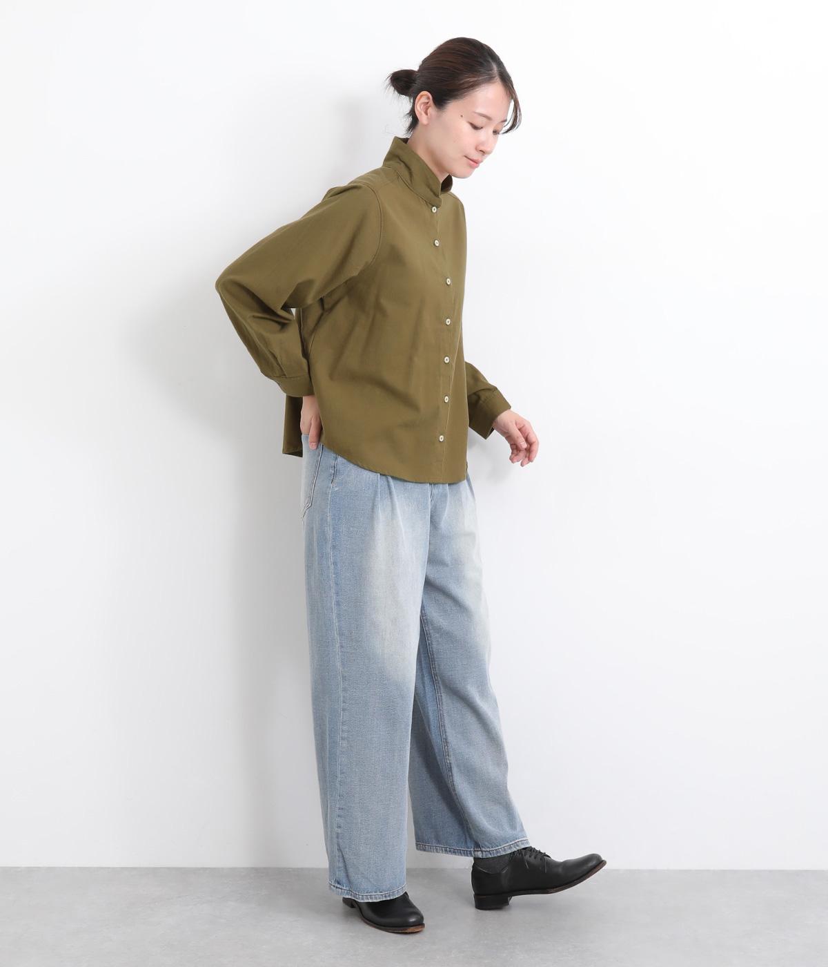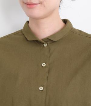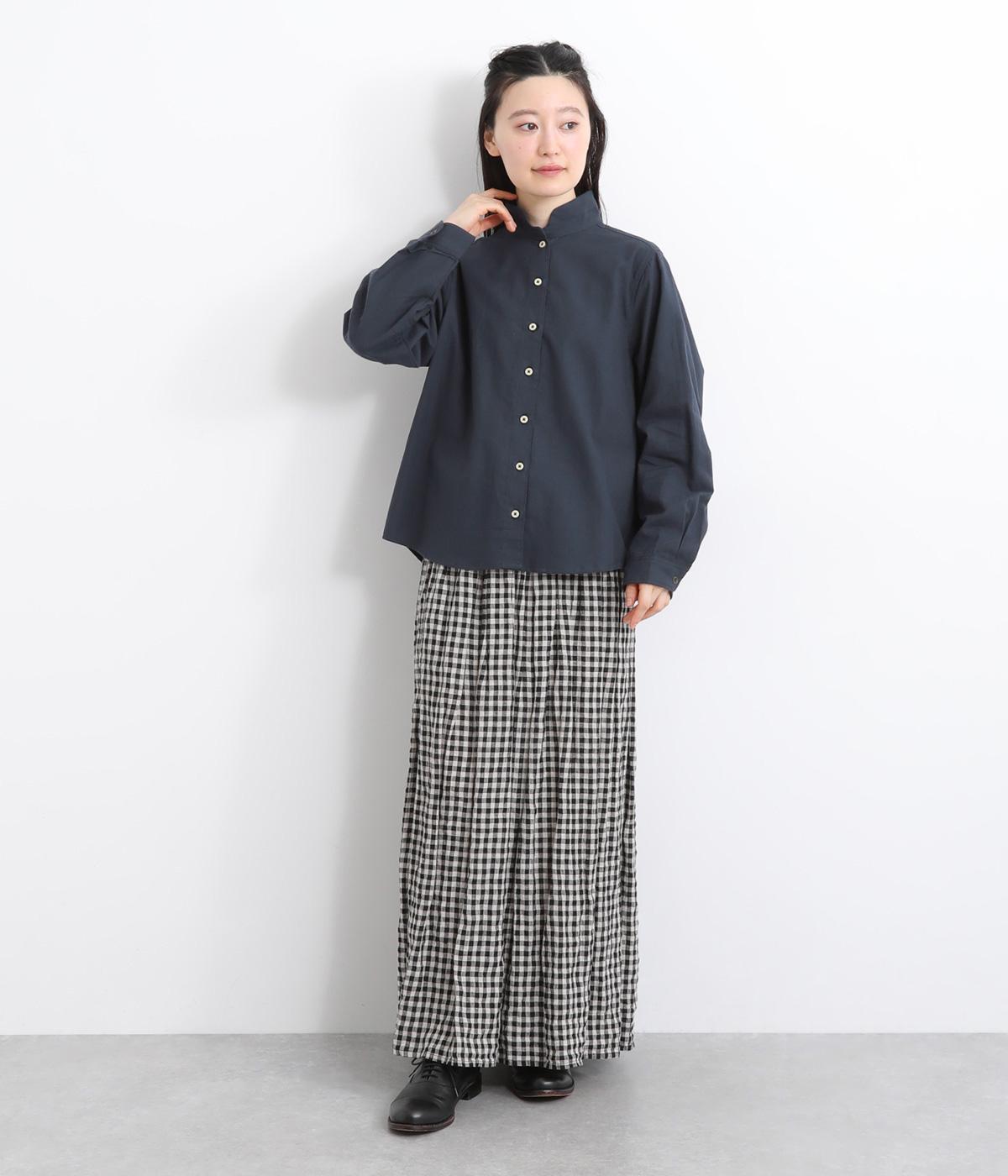 首元にやさしく沿うコンパクトな襟がきちんと感と女性らしいムードを運ぶシャツ。後ろ姿にふんわりとした動きを出すギャザー使いがポイントです。袖口にはカフスとタックをあしらい、長めの袖に立体的な丸みを持たせました。