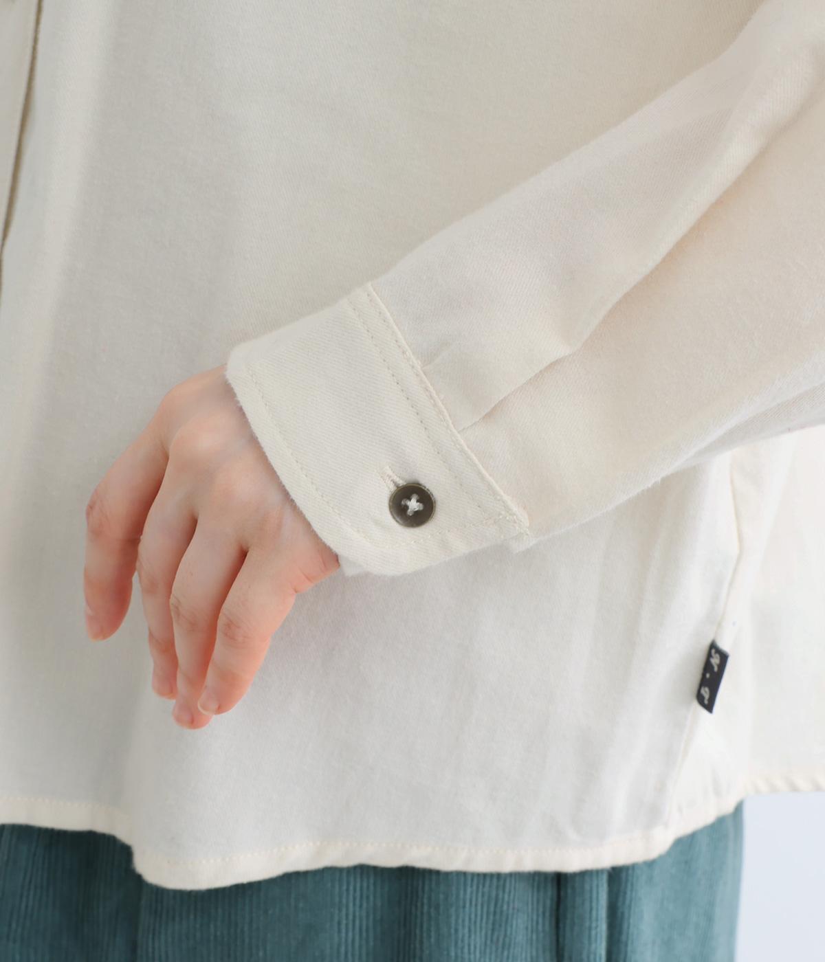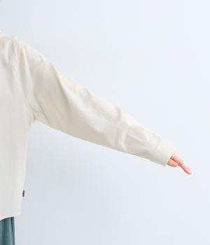 ソフトで繊細な起毛をまとった、とてもやわらかなここちよい肌ざわりのコットン生地です。やや薄手の軽い生地感なので、一枚ではもちろんインナー使いにも重宝します。