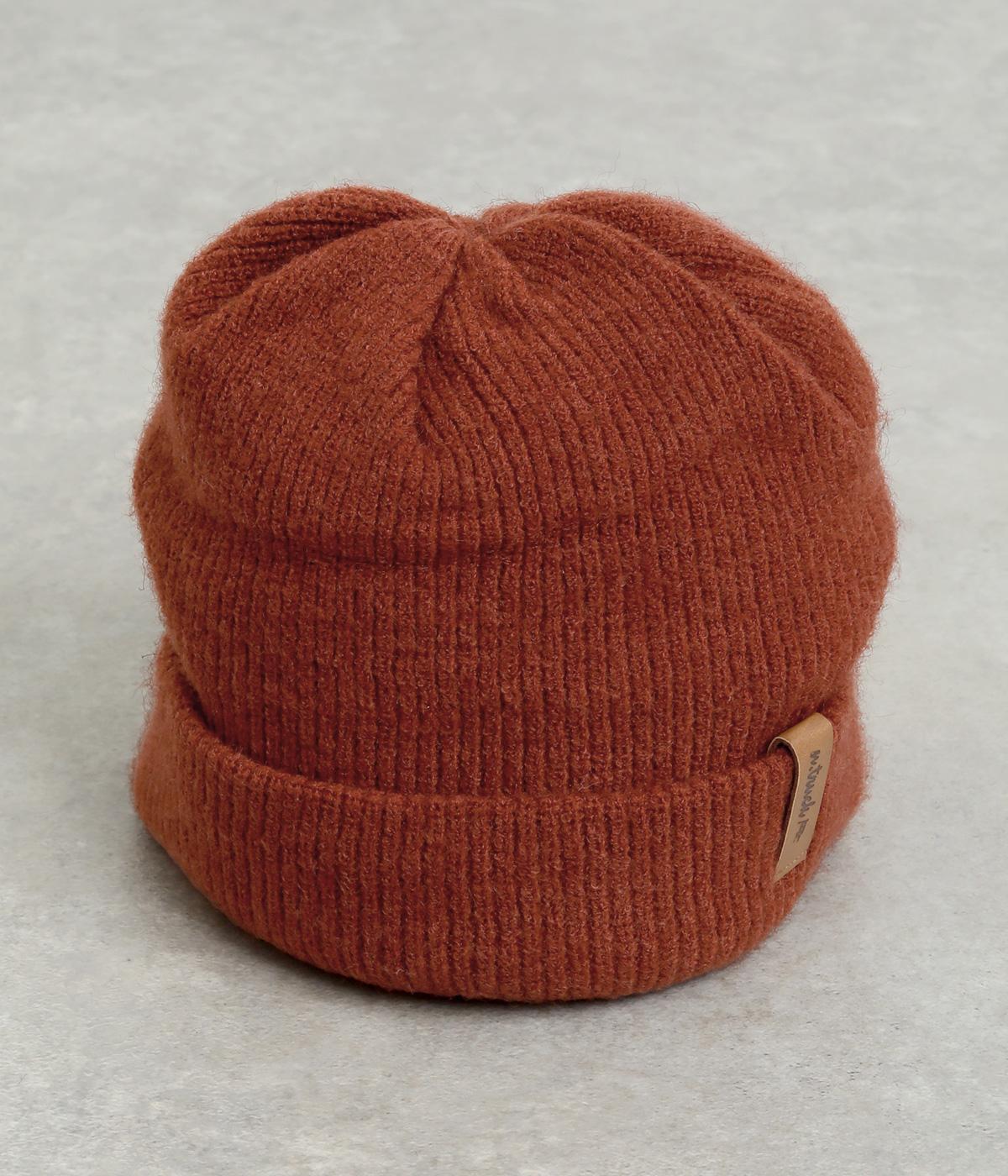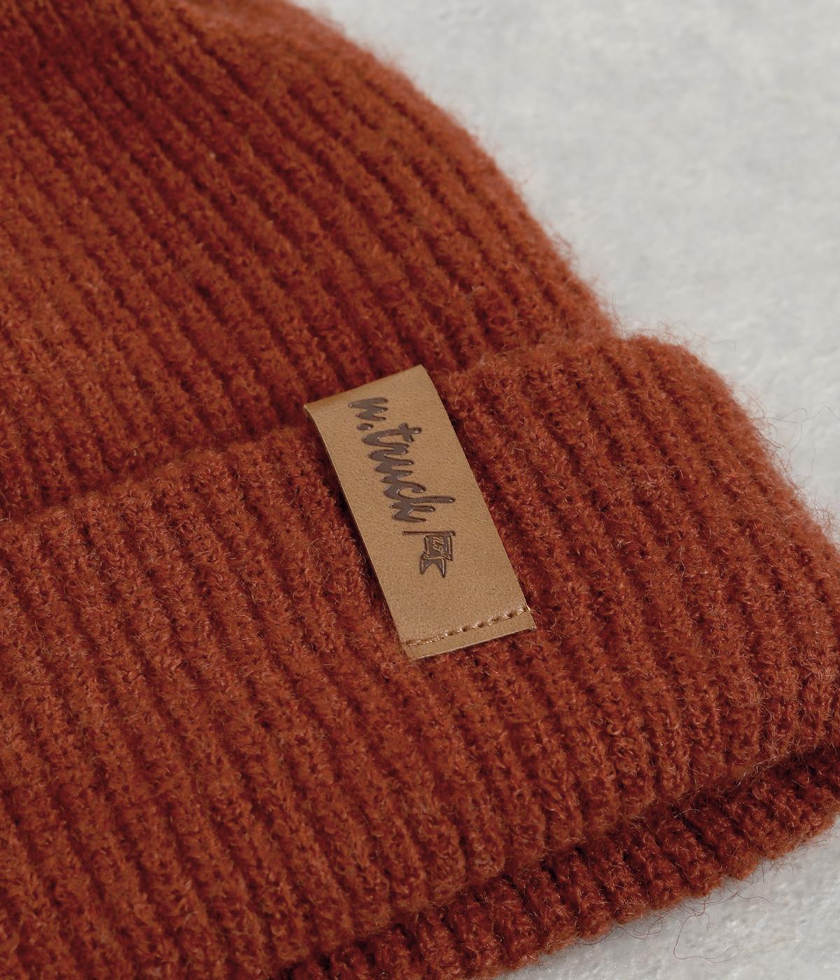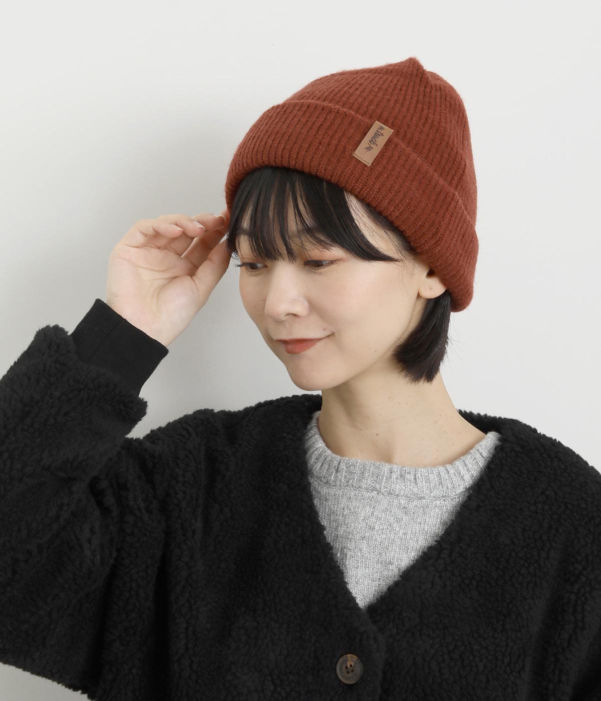 折り返し幅を広くとってカジュアルにまとめたニットキャップ。重たい印象になりがちな秋冬スタイルのワンポイントになり、全体のバランスを整えてくれます。フェイクレザーのワッペンもちょうどいいアクセントに。