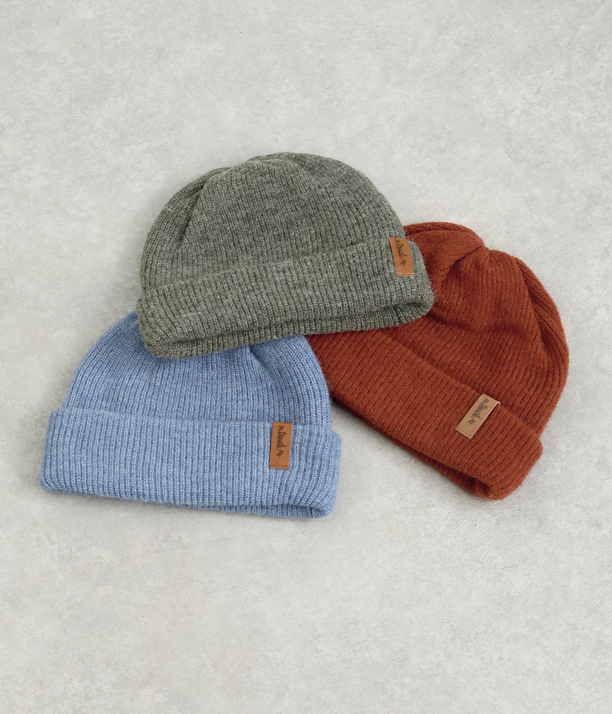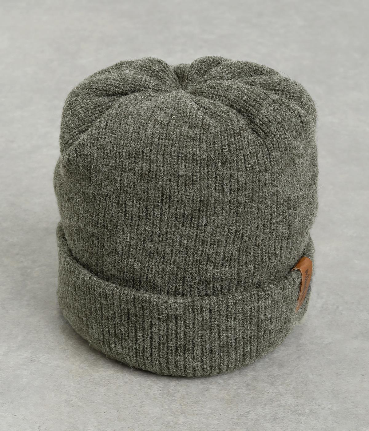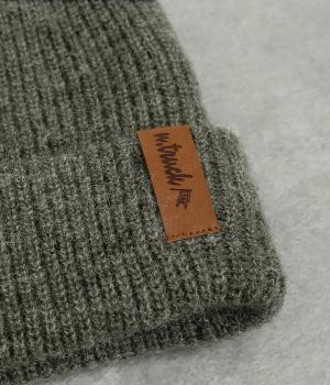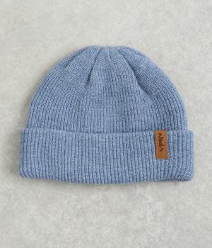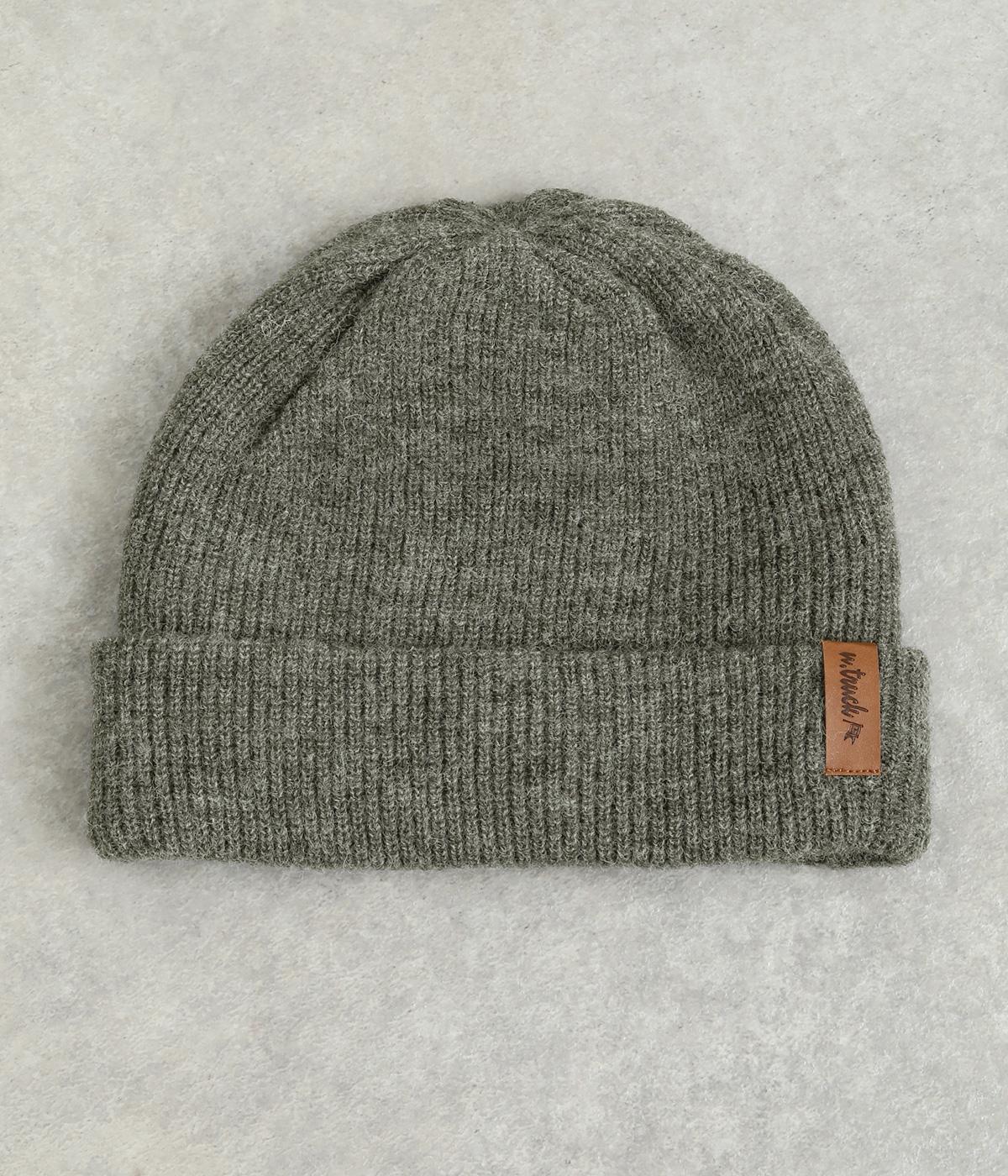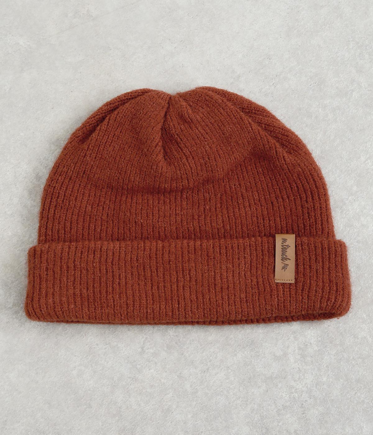 折り返し幅を広くとってカジュアルにまとめたニットキャップ。重たい印象になりがちな秋冬スタイルのワンポイントになり、全体のバランスを整えてくれます。フェイクレザーのワッペンもちょうどいいアクセントに。