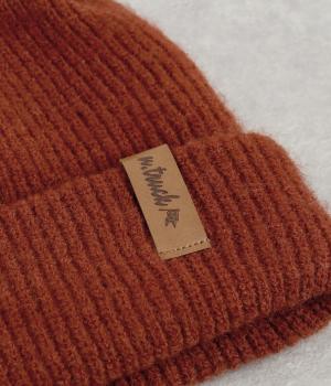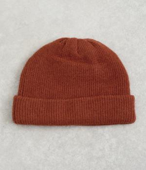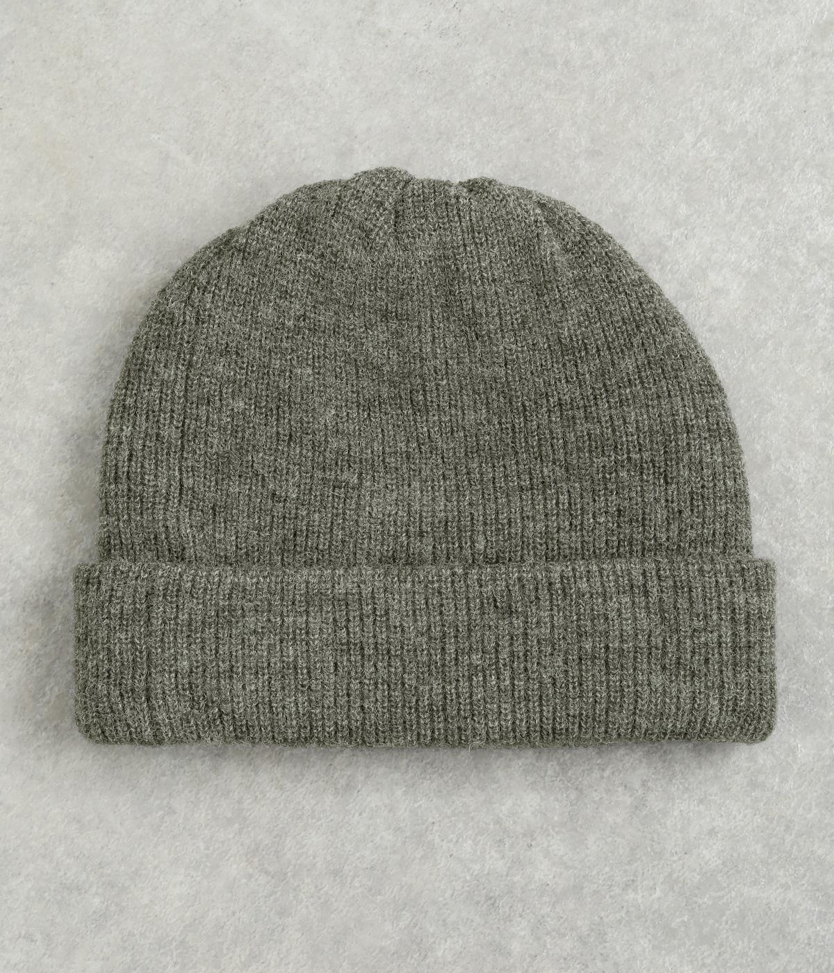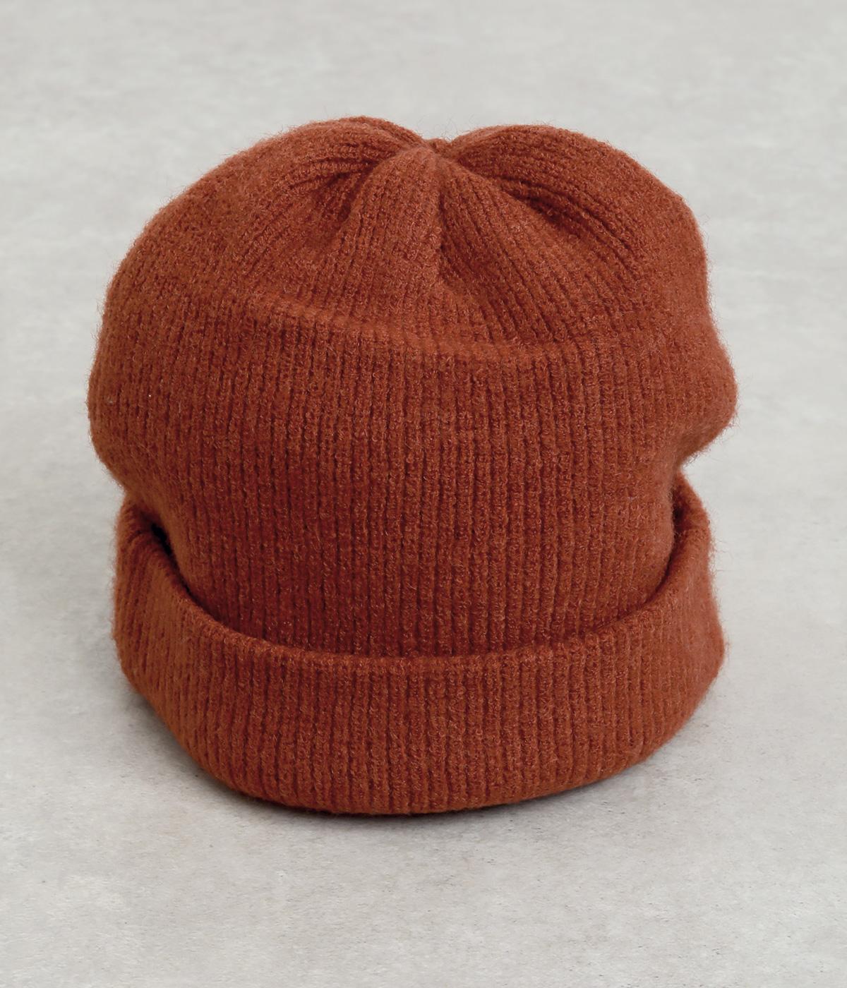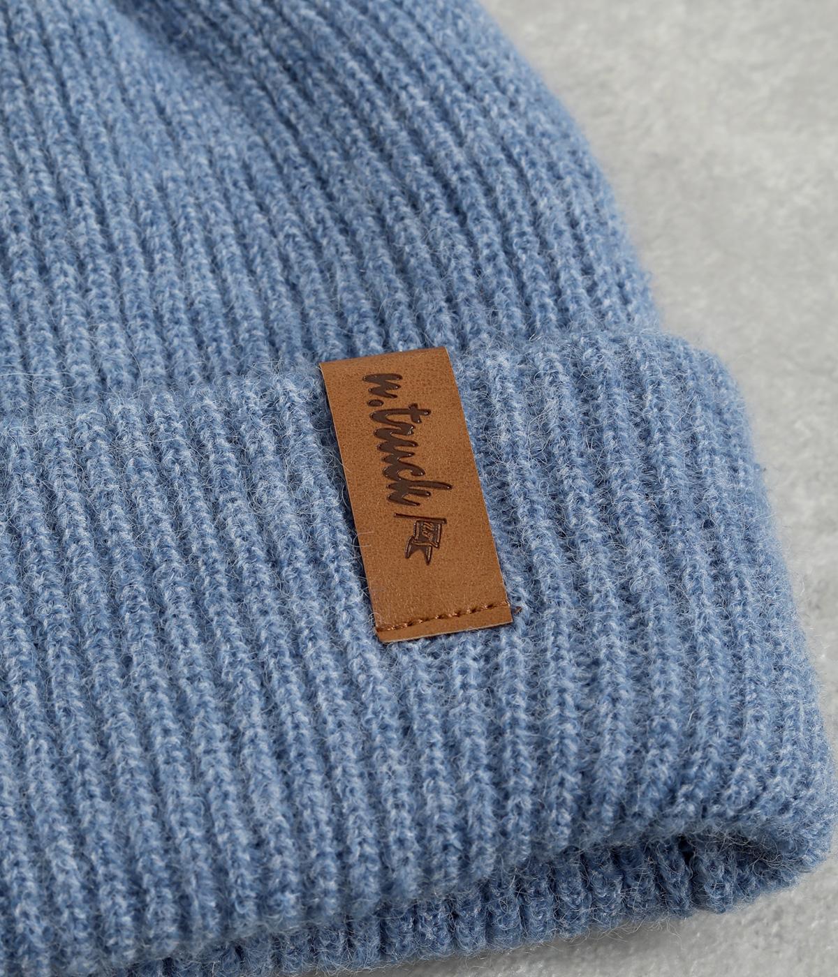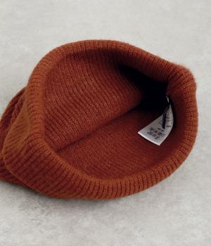 折り返し幅を広くとってカジュアルにまとめたニットキャップ。重たい印象になりがちな秋冬スタイルのワンポイントになり、全体のバランスを整えてくれます。フェイクレザーのワッペンもちょうどいいアクセントに。