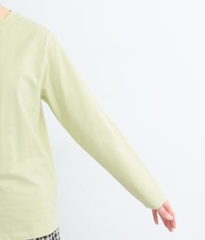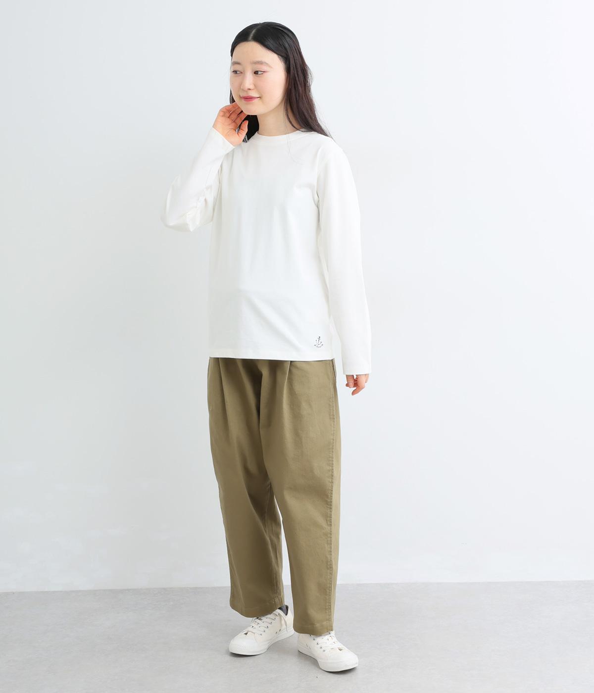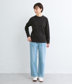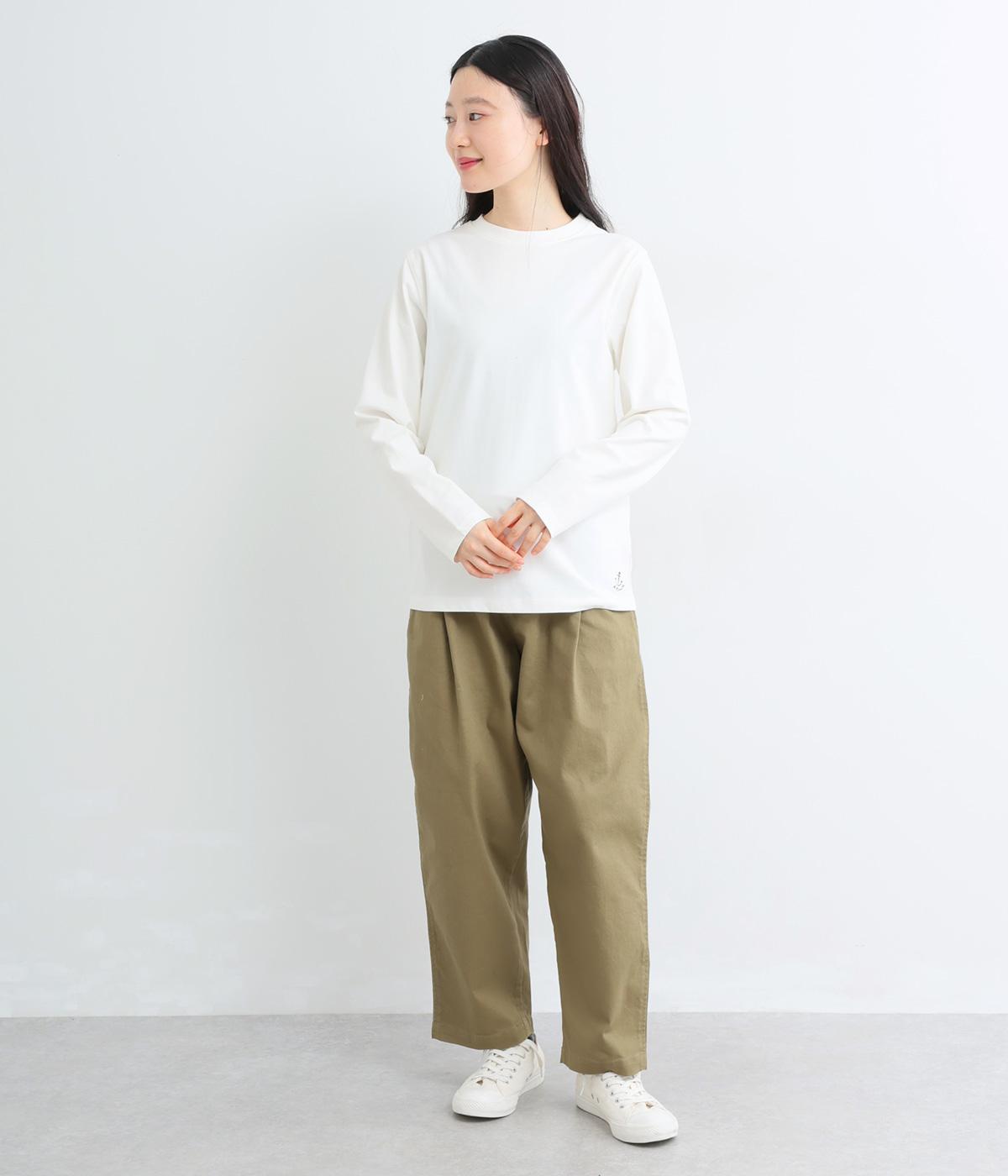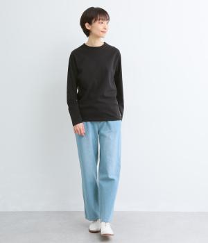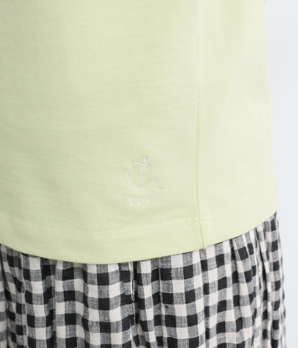 ほどよい厚みでしなやかな肌ざわりのコットン生地です。ふっくらと素肌にやさしい着心地で、デイリーにぴったりな素材感です。裾にロゴ刺しゅうをあしらいました。