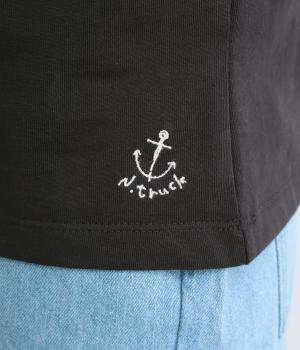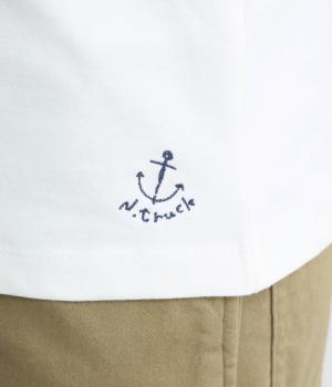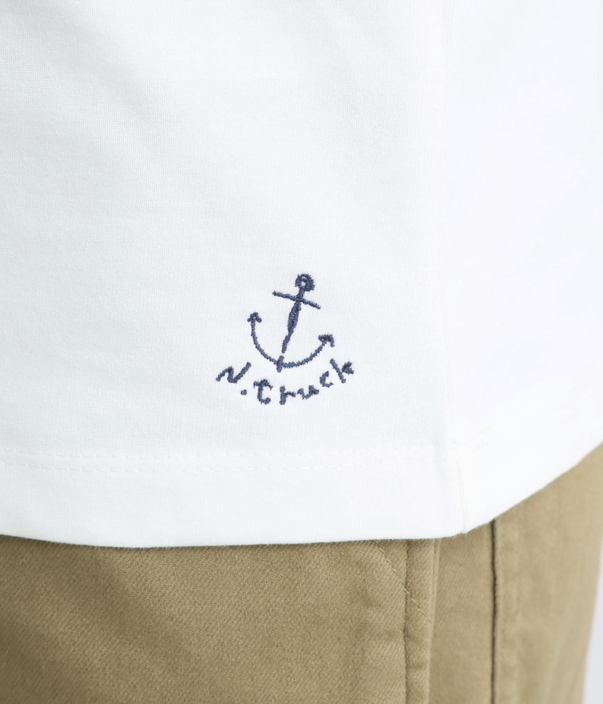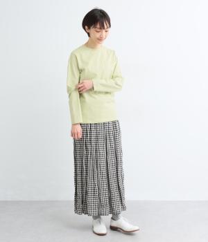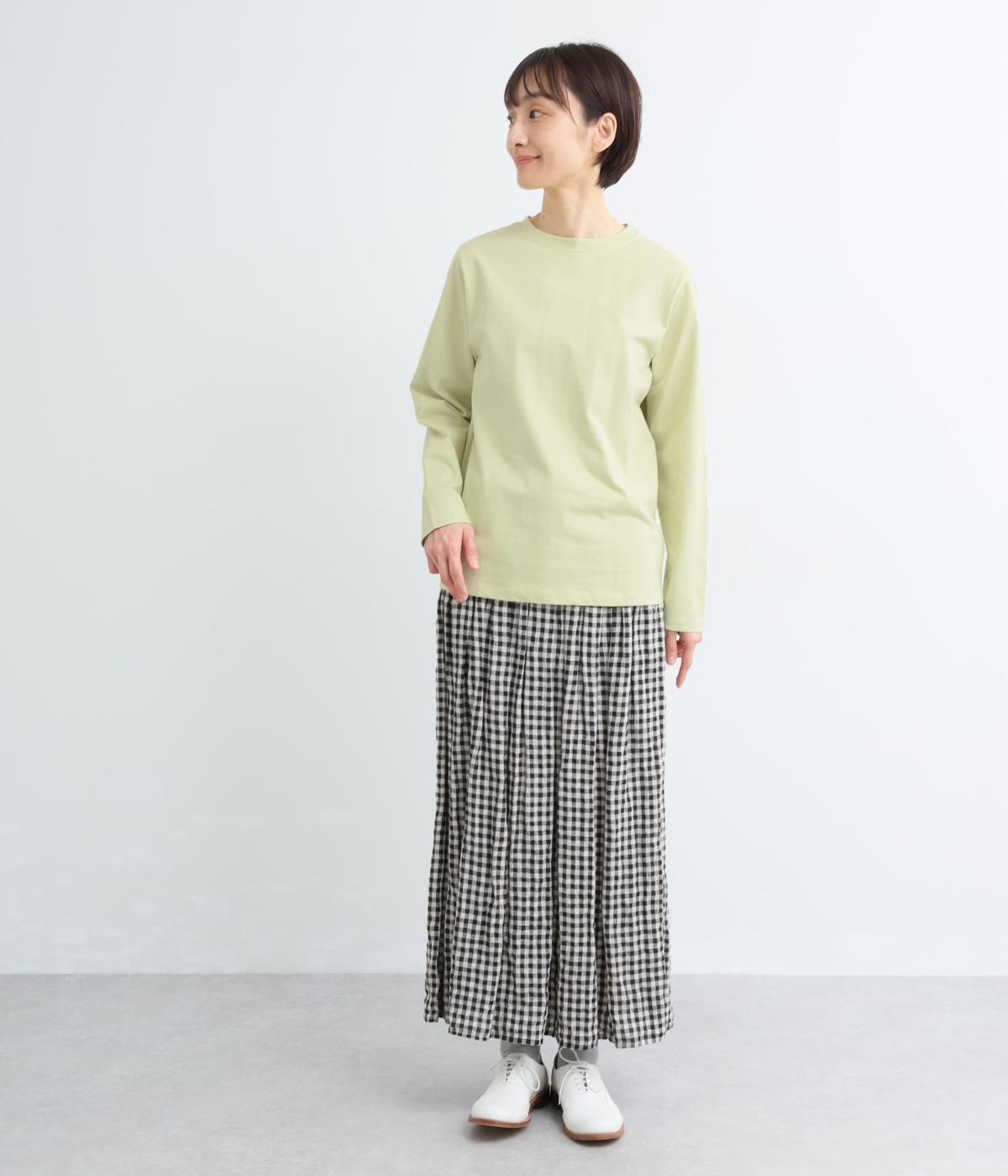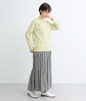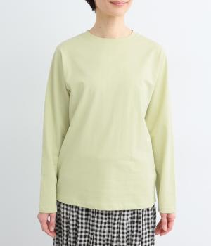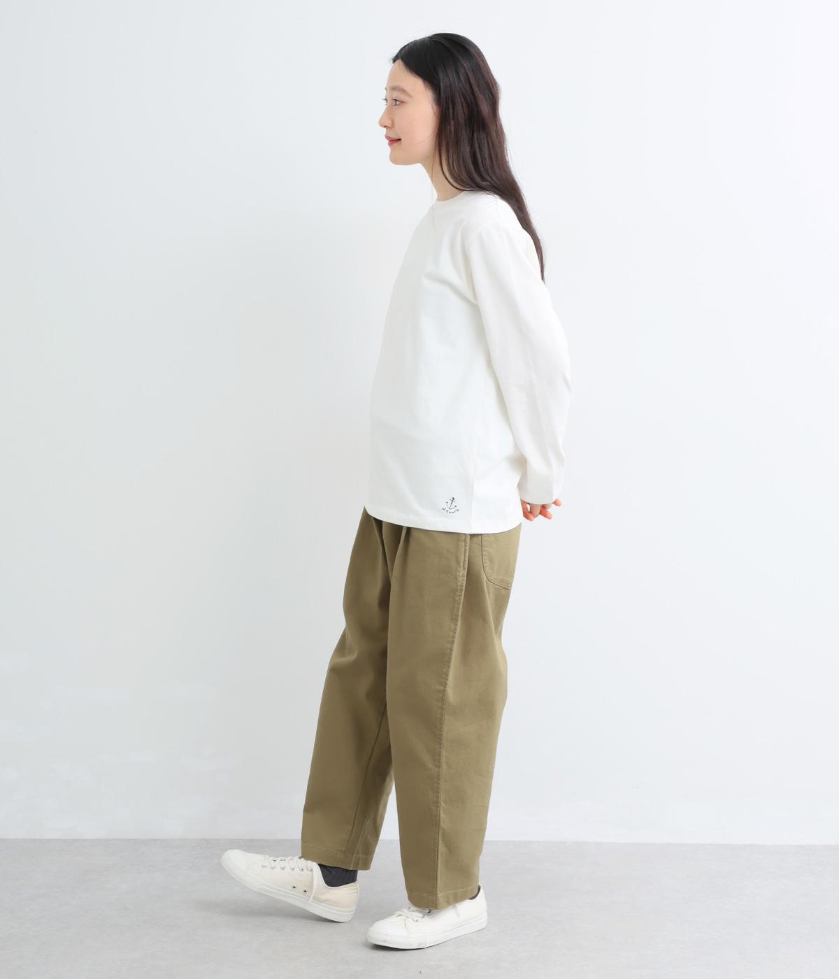 ほどよい厚みでしなやかな肌ざわりのコットン生地です。ふっくらと素肌にやさしい着心地で、デイリーにぴったりな素材感です。裾にロゴ刺しゅうをあしらいました。