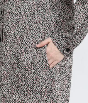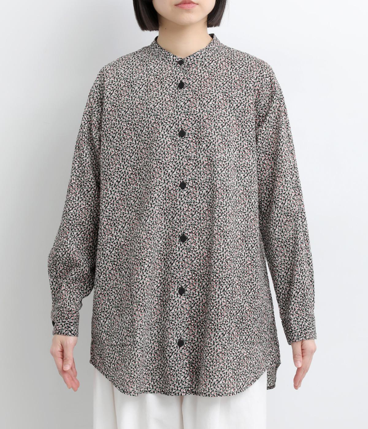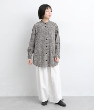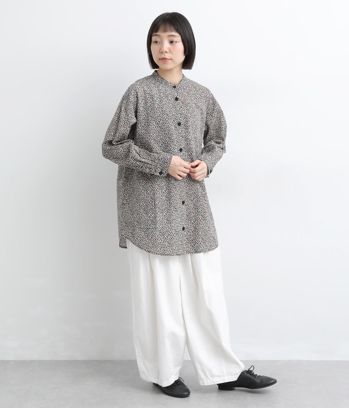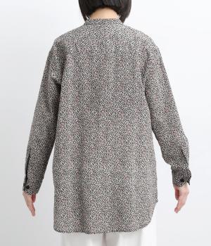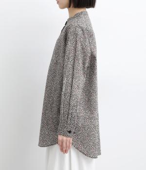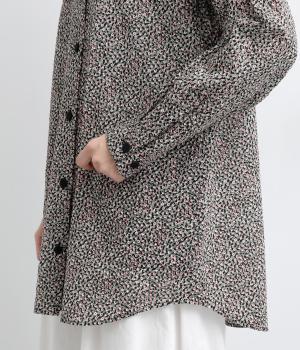 甘すぎない細かな花柄が大人のモードな装いに華を添えます。ヒップを隠すほどのやや長めの着丈にうれしいポケットつきでデイリーに活躍。バンドカラーで顔まわりはすっきり見せつつ、ラウンドヘムが女性らしい着こなしをアシスト。