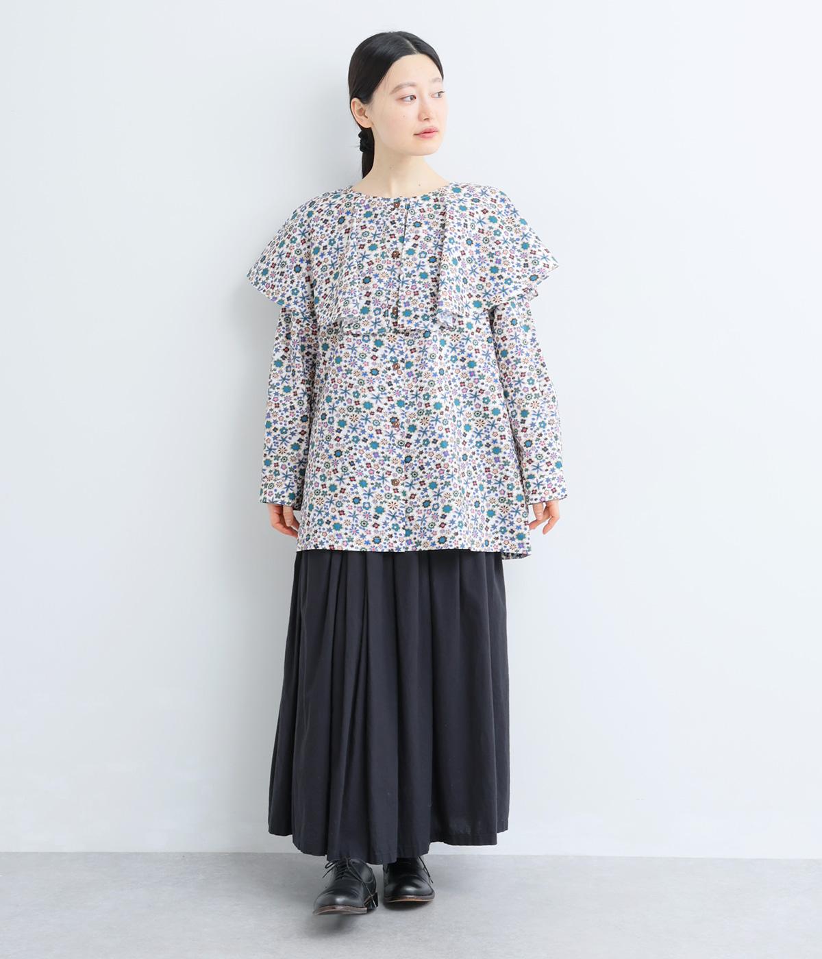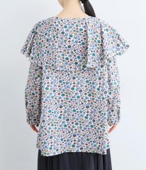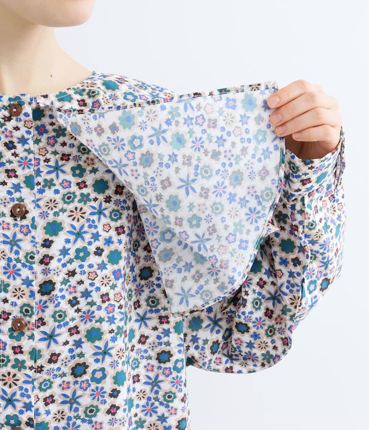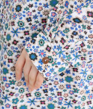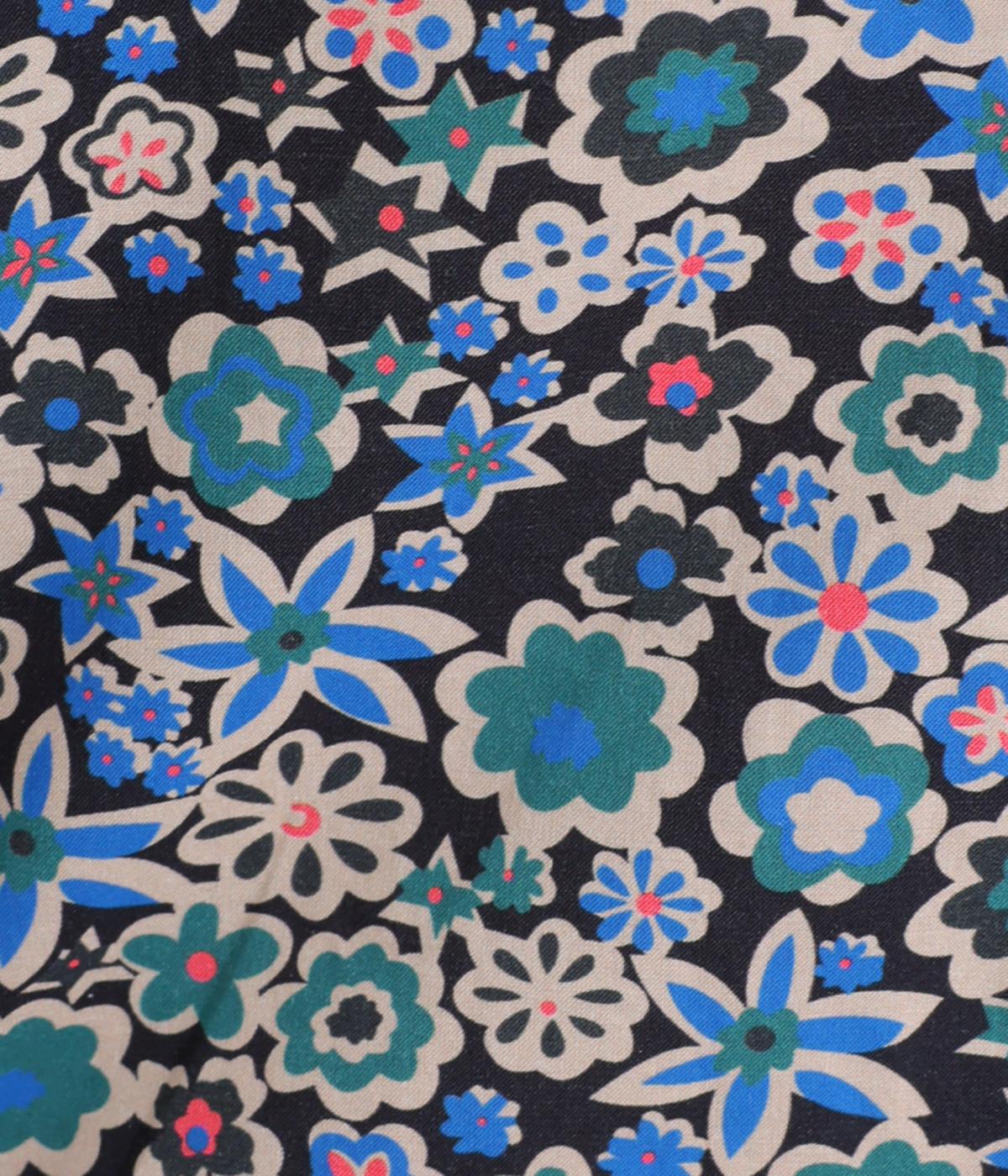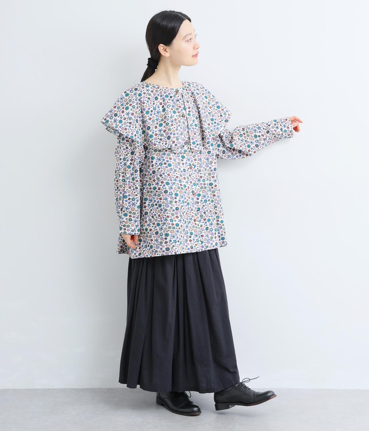 ややハリのある、さらりとした質感のコットン素材を使用しました。色とりどりのアンティークフラワーが、大人かわいいスタイリングに仕上げてくれます。