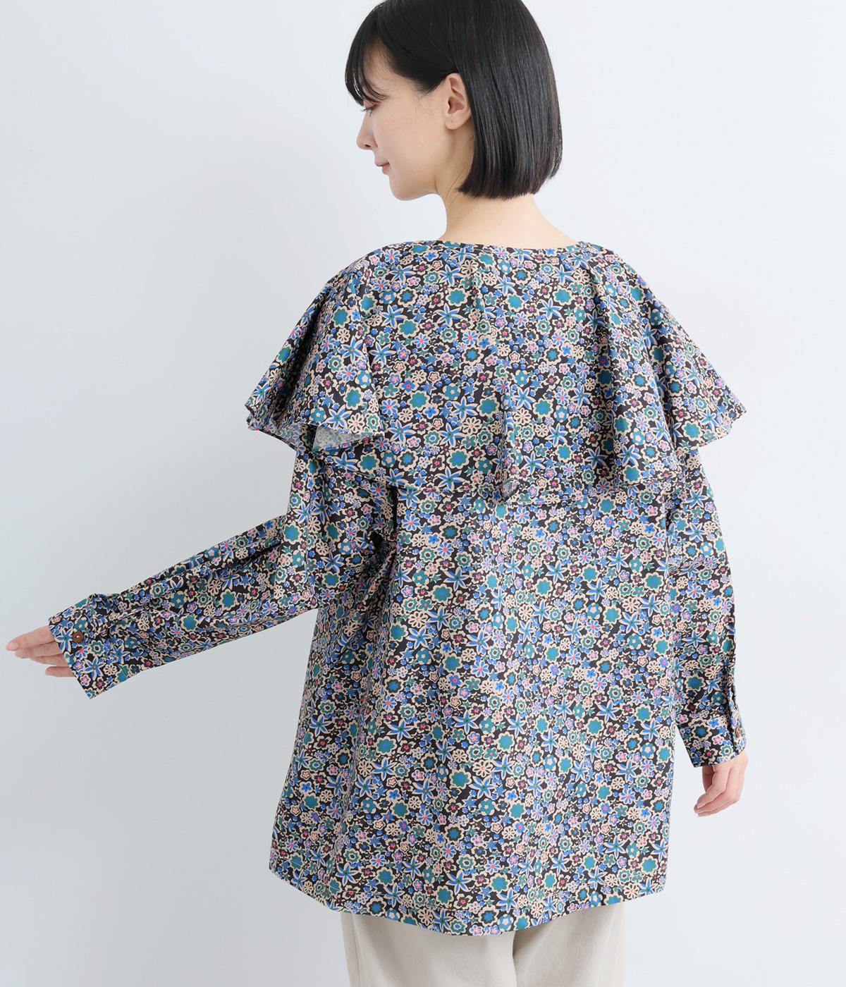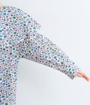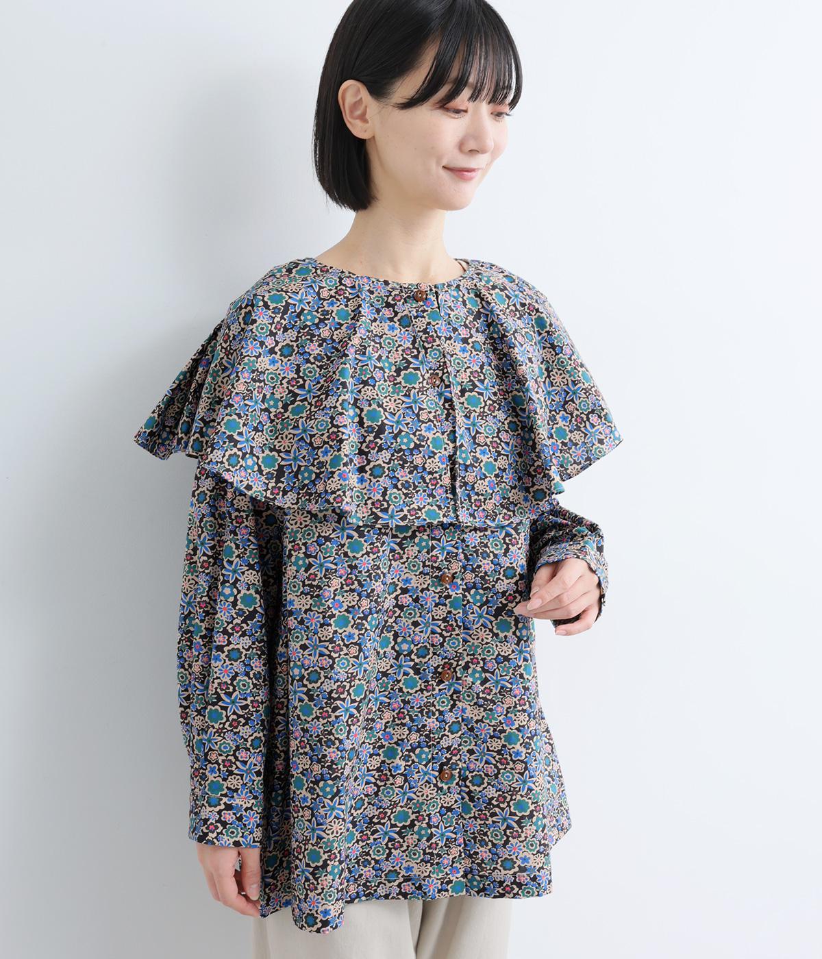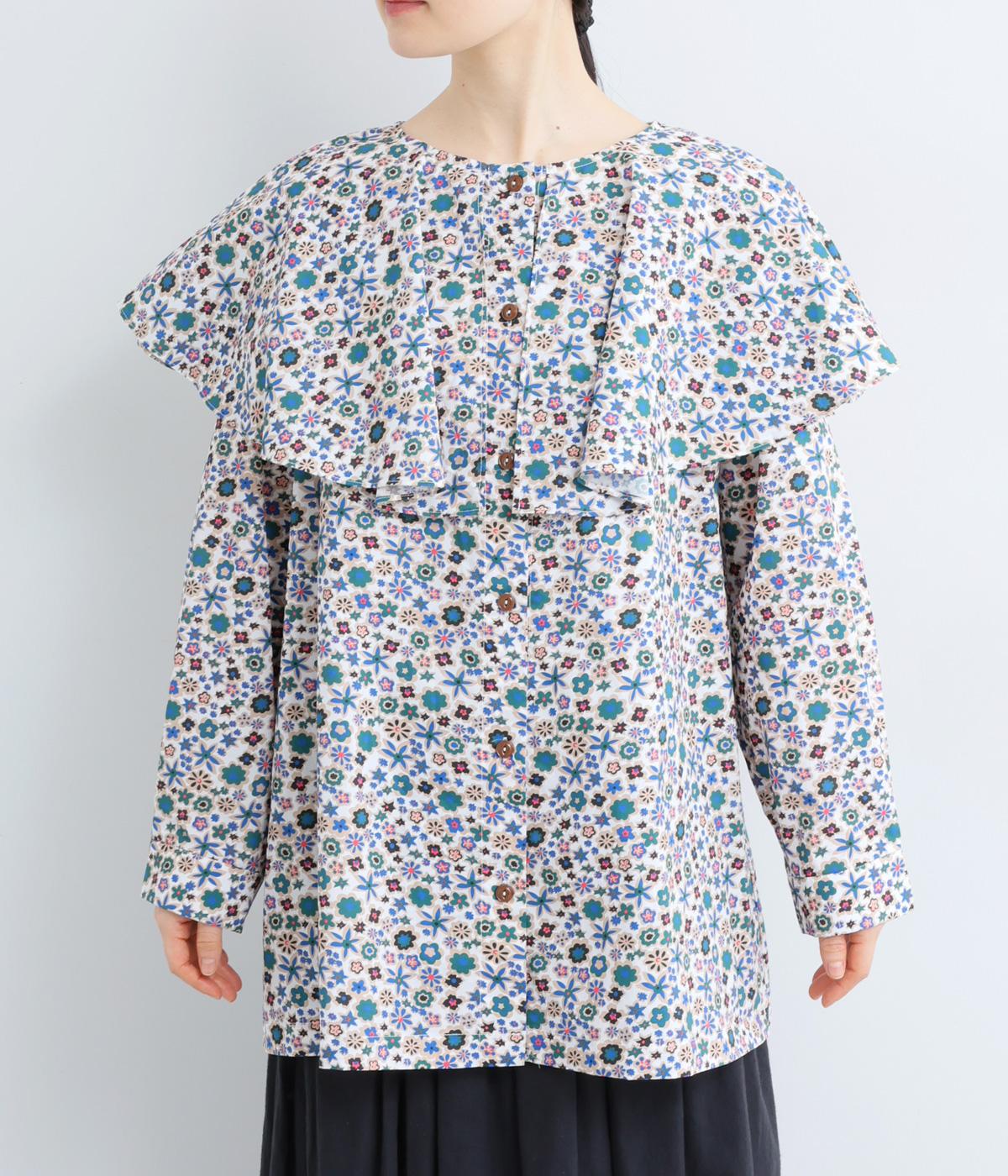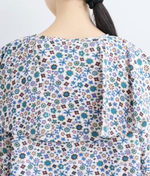 ややハリのある、さらりとした質感のコットン素材を使用しました。色とりどりのアンティークフラワーが、大人かわいいスタイリングに仕上げてくれます。