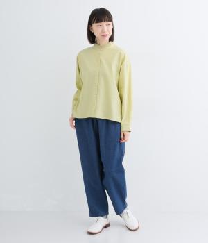 清涼感があり軽やかな着心地のコットンシャンブレー。しなやかなハリでシルエットをきれいに描きます。シャンブレー特有の霜降り状のムラ感が、ナチュラルで柔らかな表情と奥行きを演出します。
