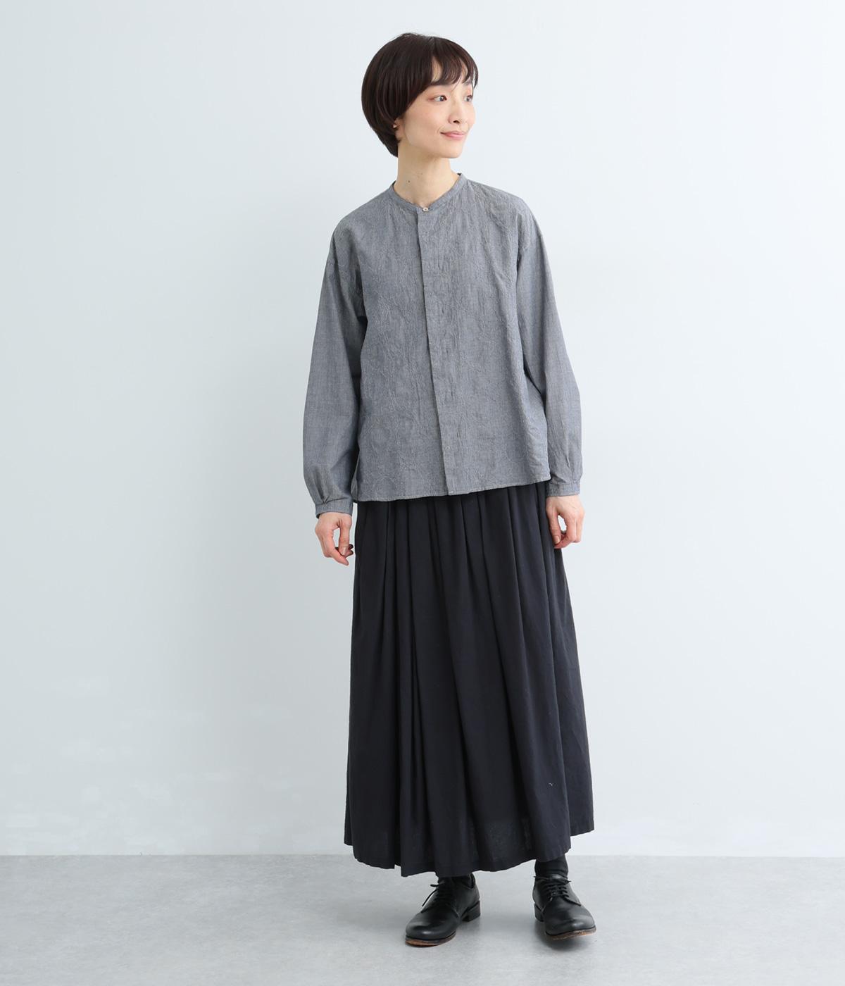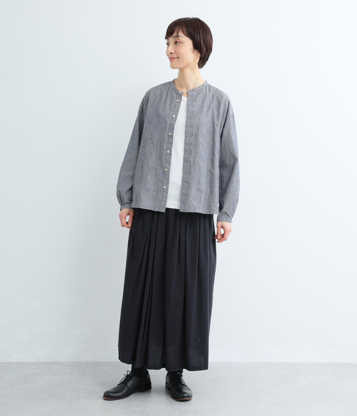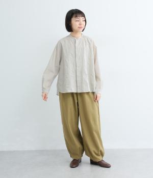 ドライなタッチと軽やかさが心地よい、コットンリネン素材。ネップ感やナチュラルなシワが生み出す素朴な表情が、やさしい雰囲気を添えます。肌離れのよいさらりとした質感で、季節の変わり目も快適に過ごせます。