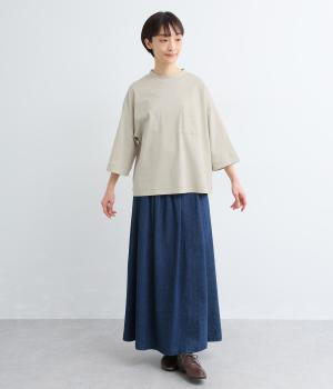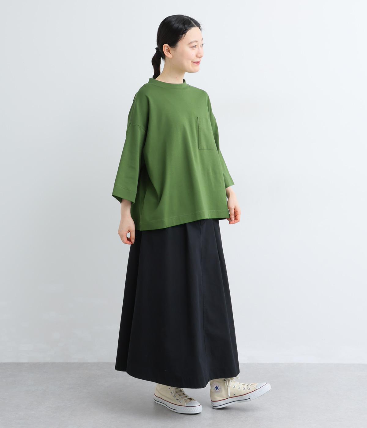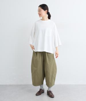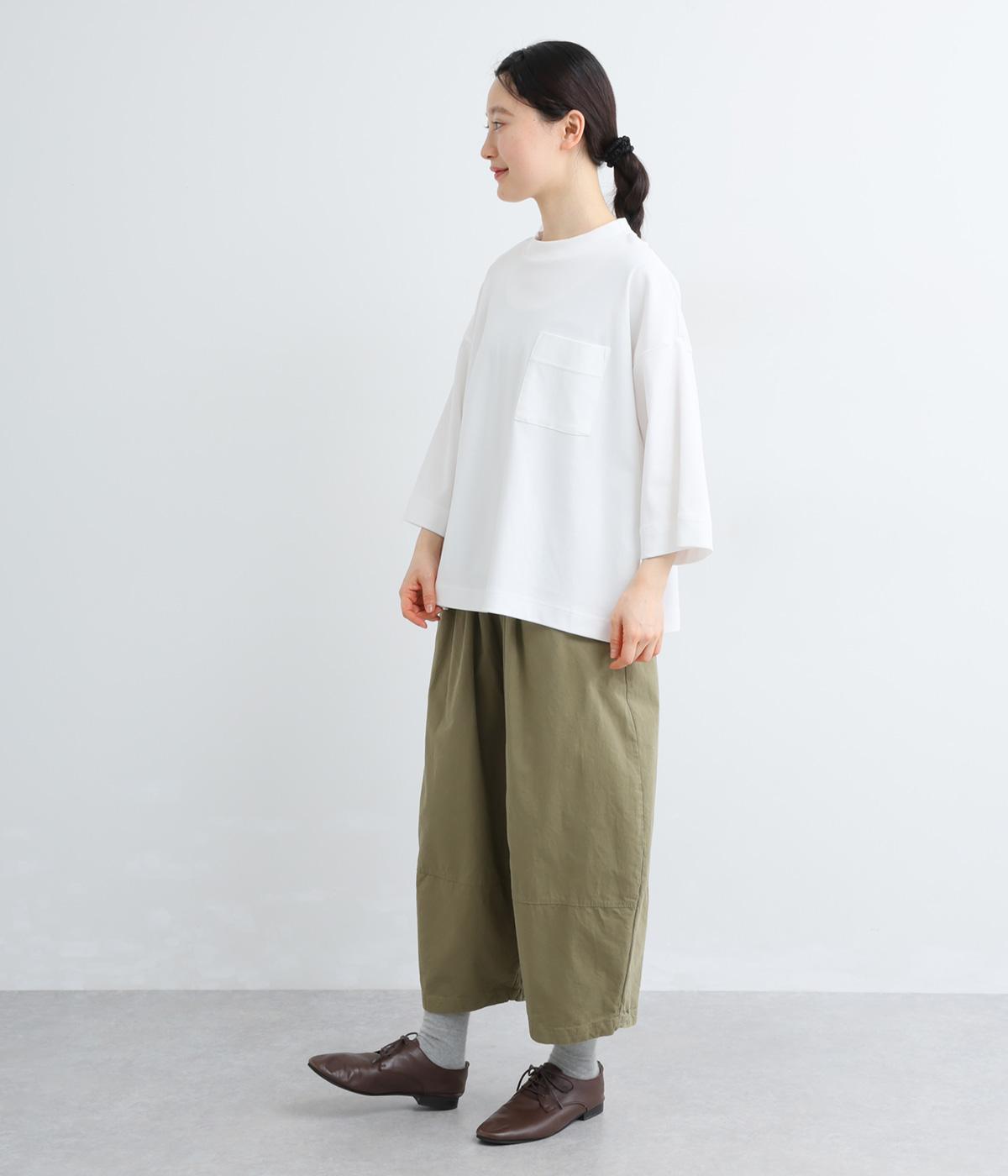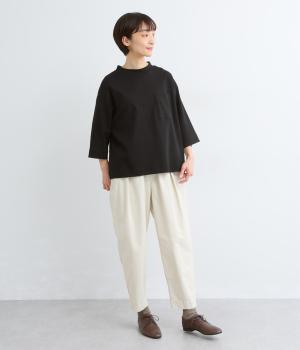 シルケット加工によるなめらかな肌触りが特徴的なコットンスムースを使用。適度な肉感のある中厚手生地でメイン使いしやすく、やわらかで伸びもいいのでデイリーに活躍します。