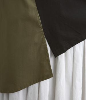 つるりとなめらかなコットンに、しっとりとやわらかな布帛を組み合わせました。通気性や吸湿性に優れ、ボリュームがありながらも軽やかな着心地です。
