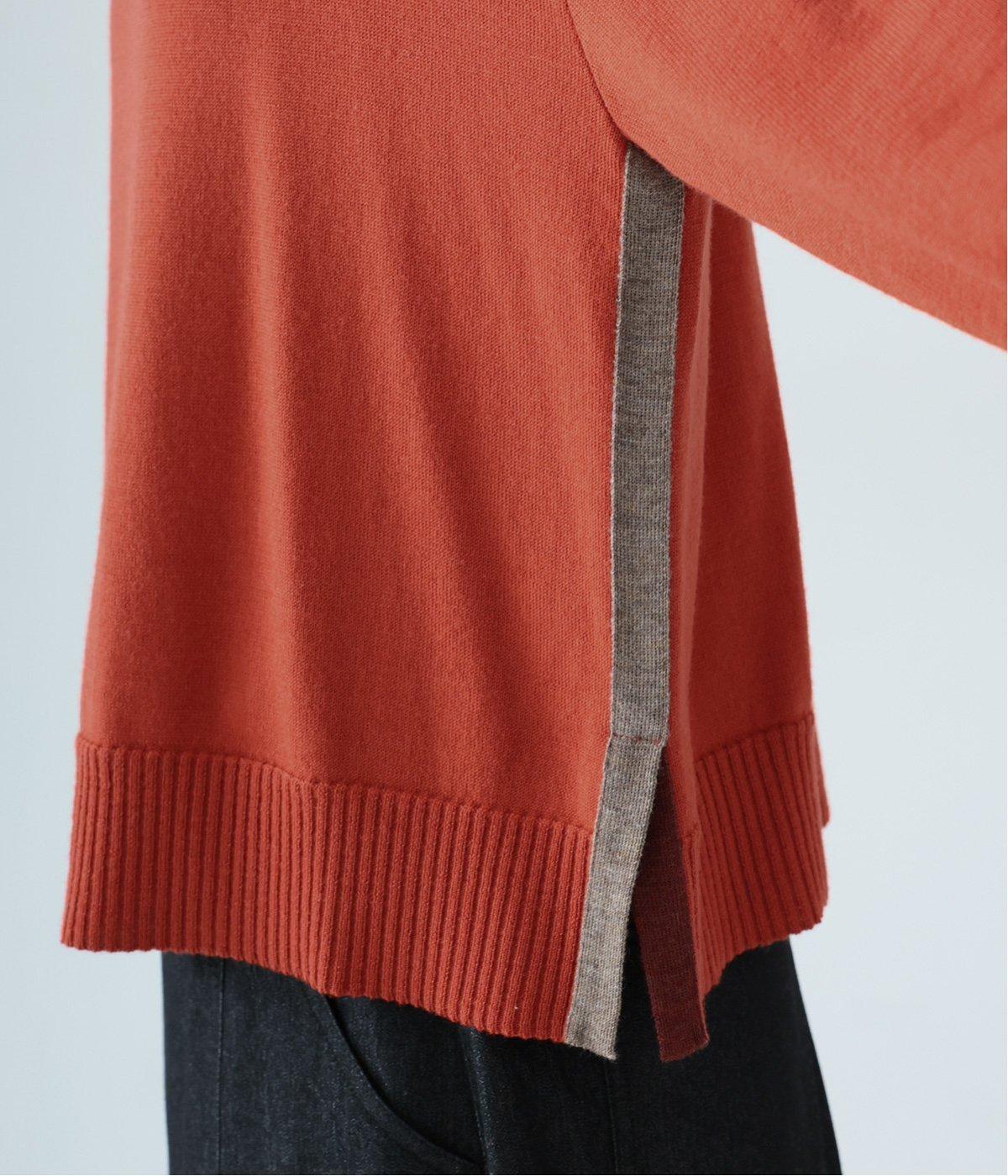 袖口の幅広リブがファッションムードを高めるプルオーバーニット。脇の配色テープと深めのスリットを横姿のアクセントにしています。きゅっと詰まったモックネックが上品なムードをプラス。左袖のさりげない配色ラインにも注目です。