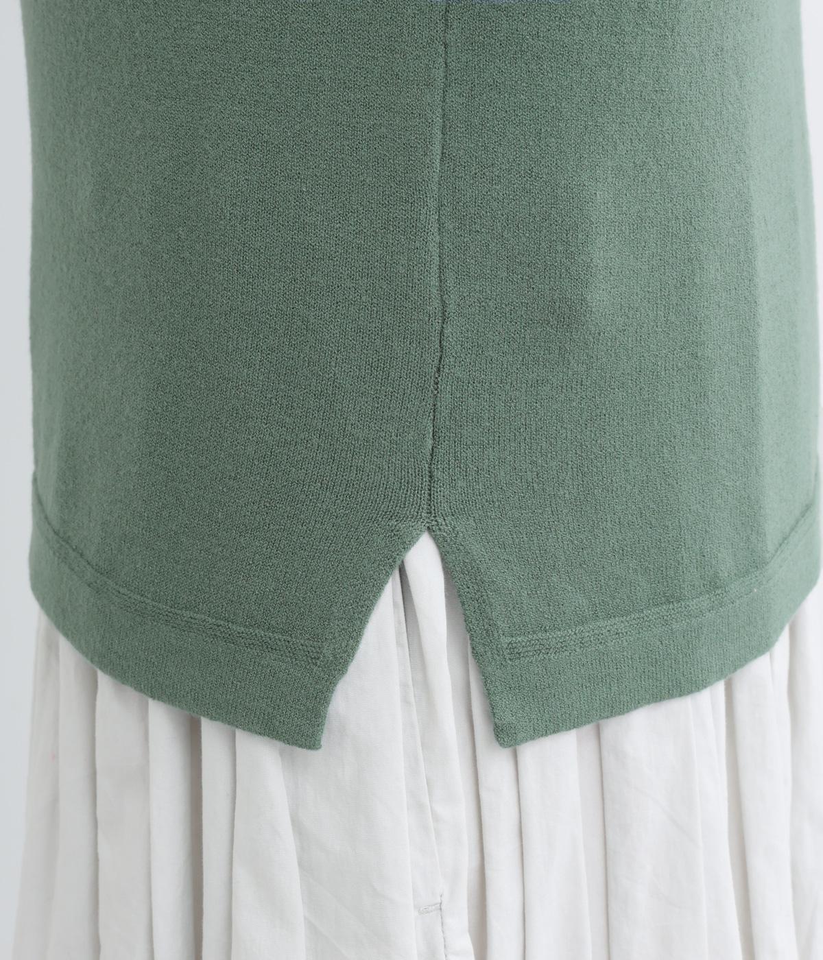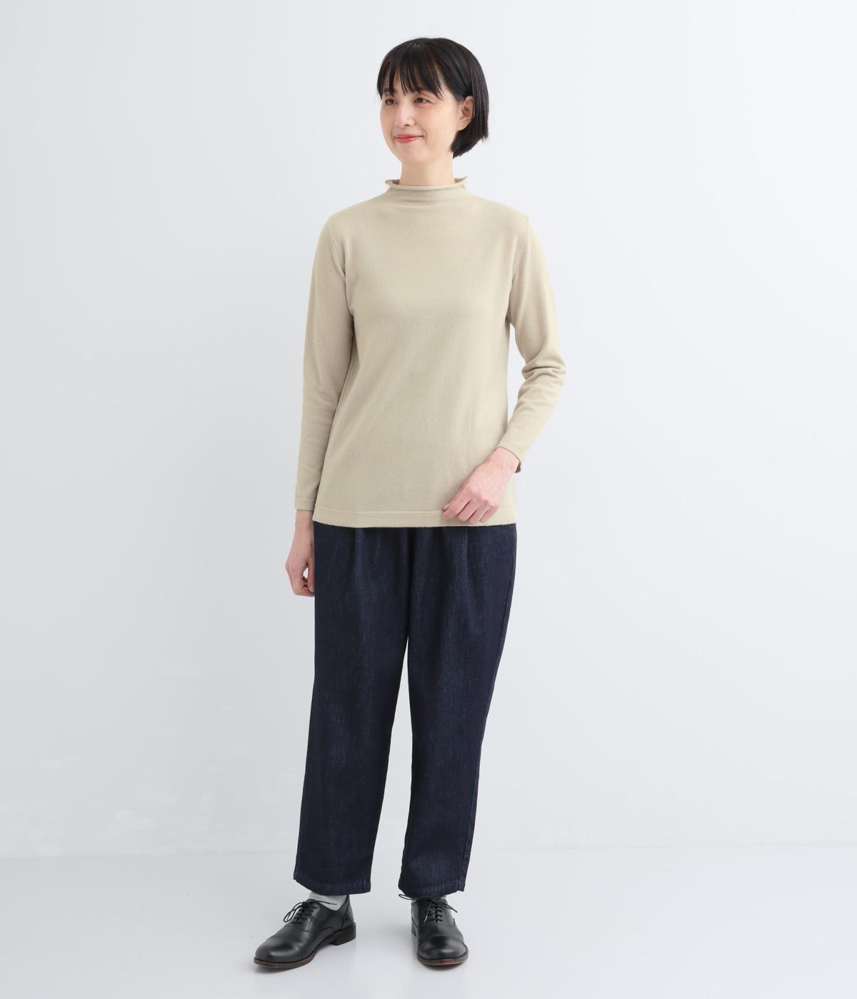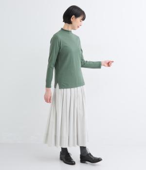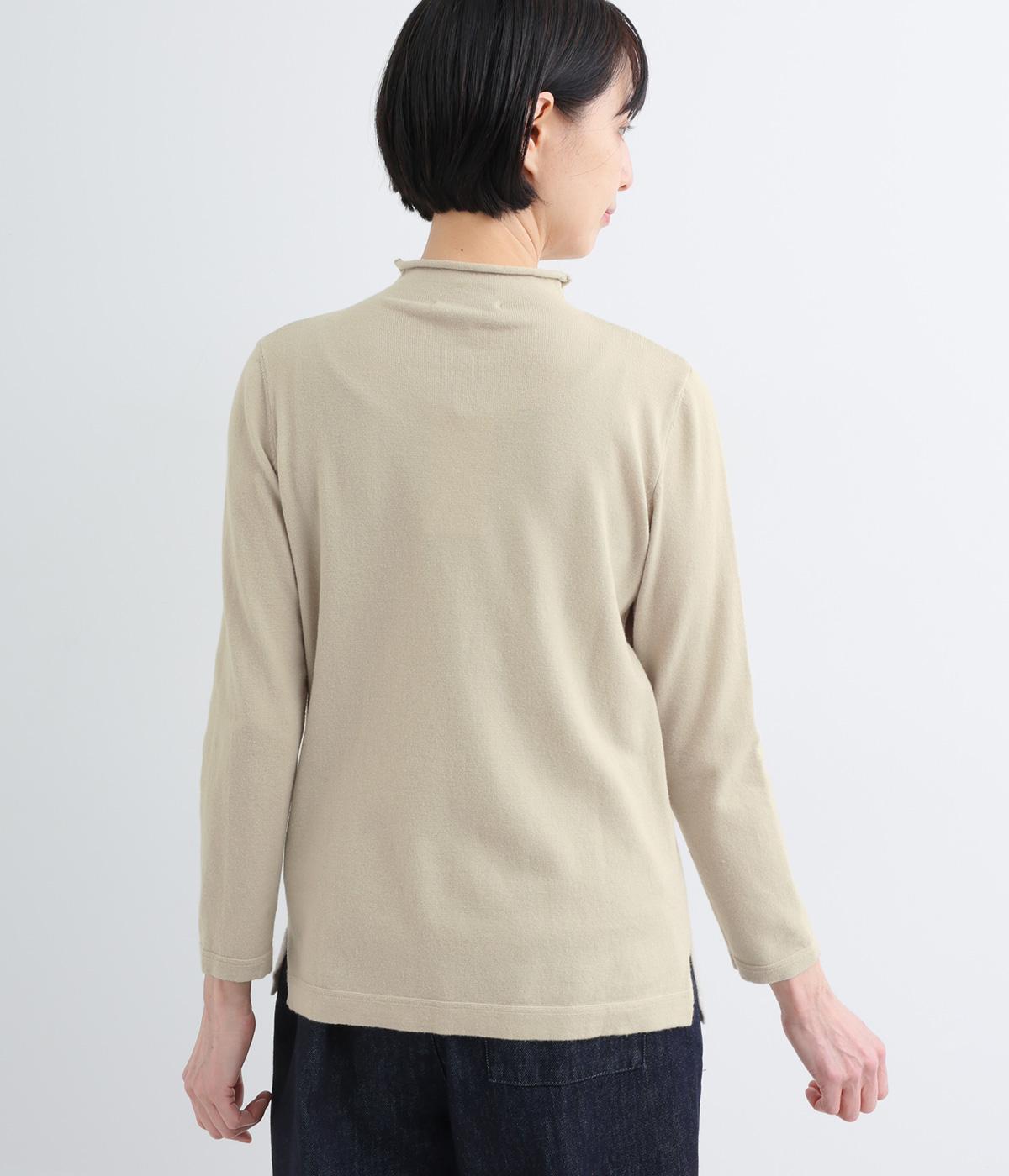 シンプルでミニマルな佇まいが、やわらかな素材感を引き立てます。ボトルネックがさりげない個性を、サイドスリットが抜け感を添えます。ボトムスを選ばず、フェミニンにもカジュアルにもなじむ一枚です。