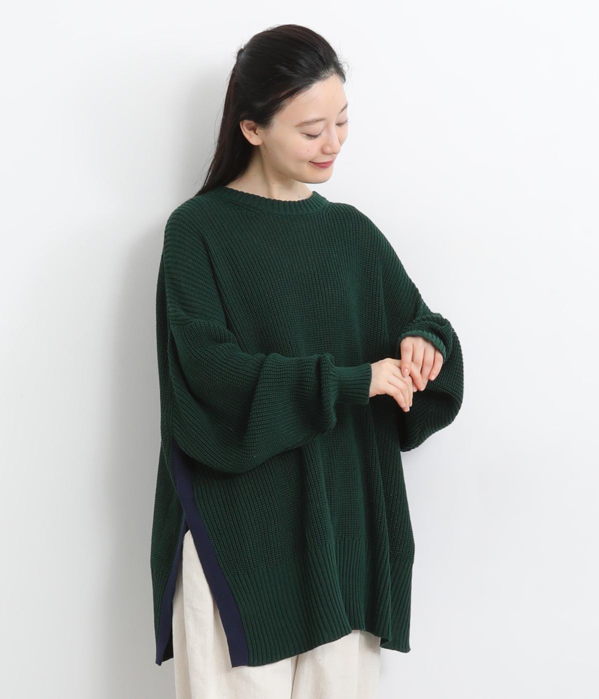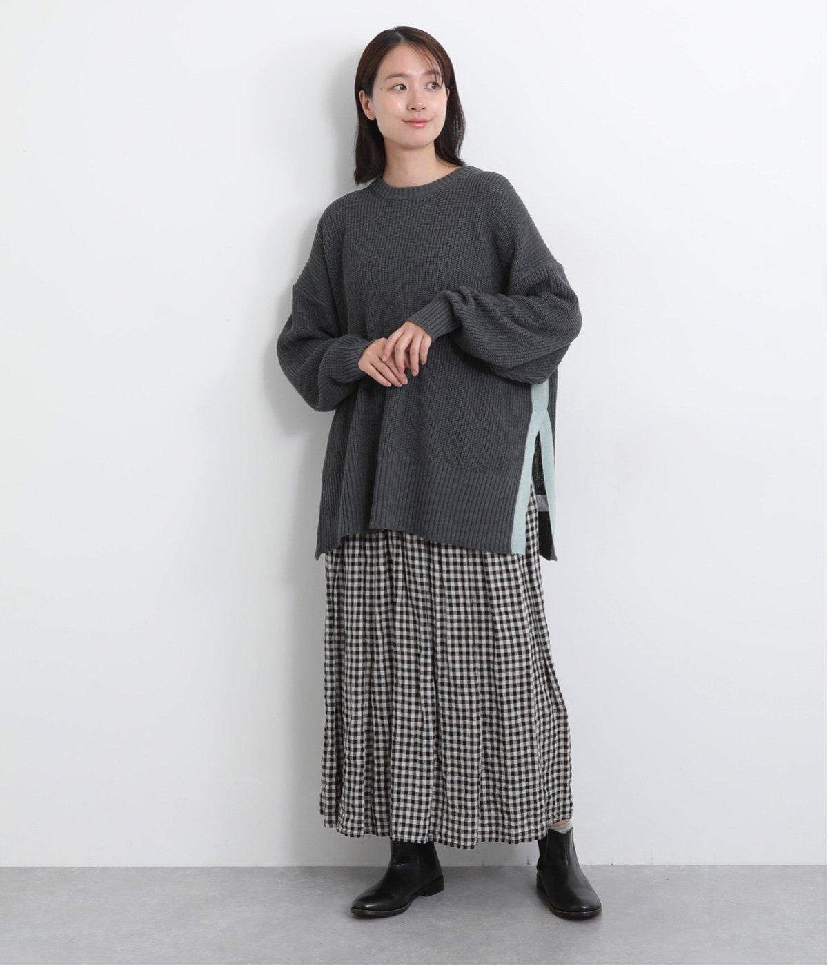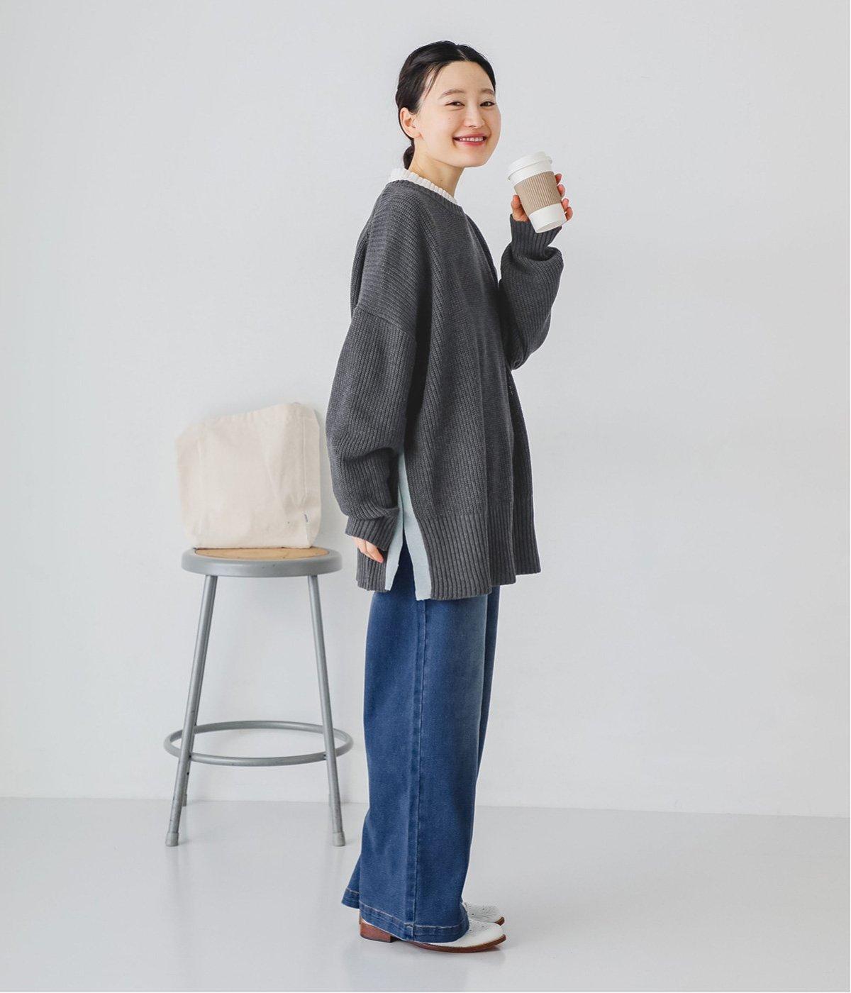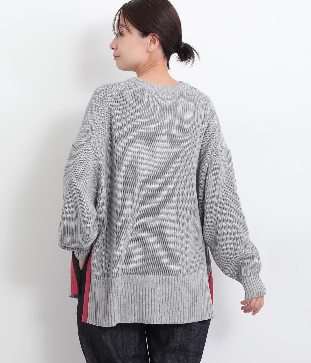 ゆったりとしたオーバーサイズのプルオーバーは、一見シンプルながらサイドの配色ロングスリットがアクセントになっています。リラックスムードな作りでボリュームボトムとも相性が良く、柄アイテム合わせもおすすめ。