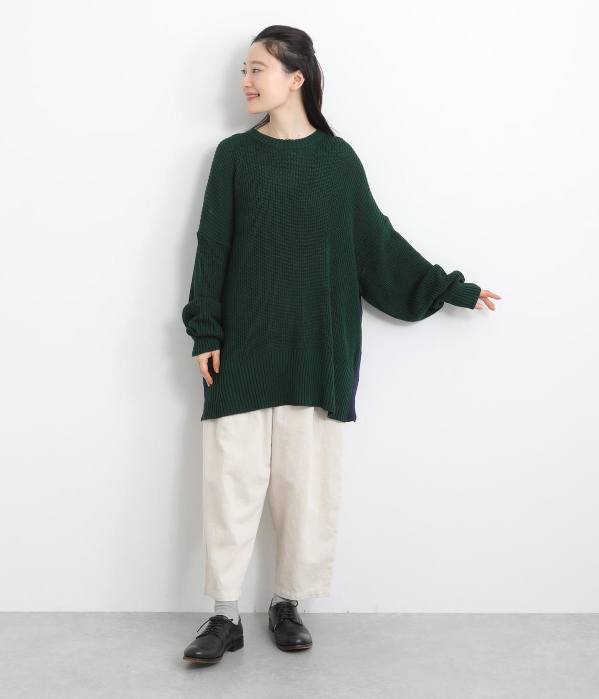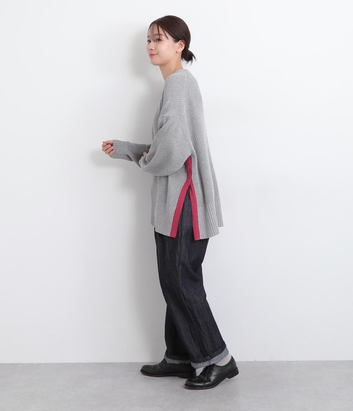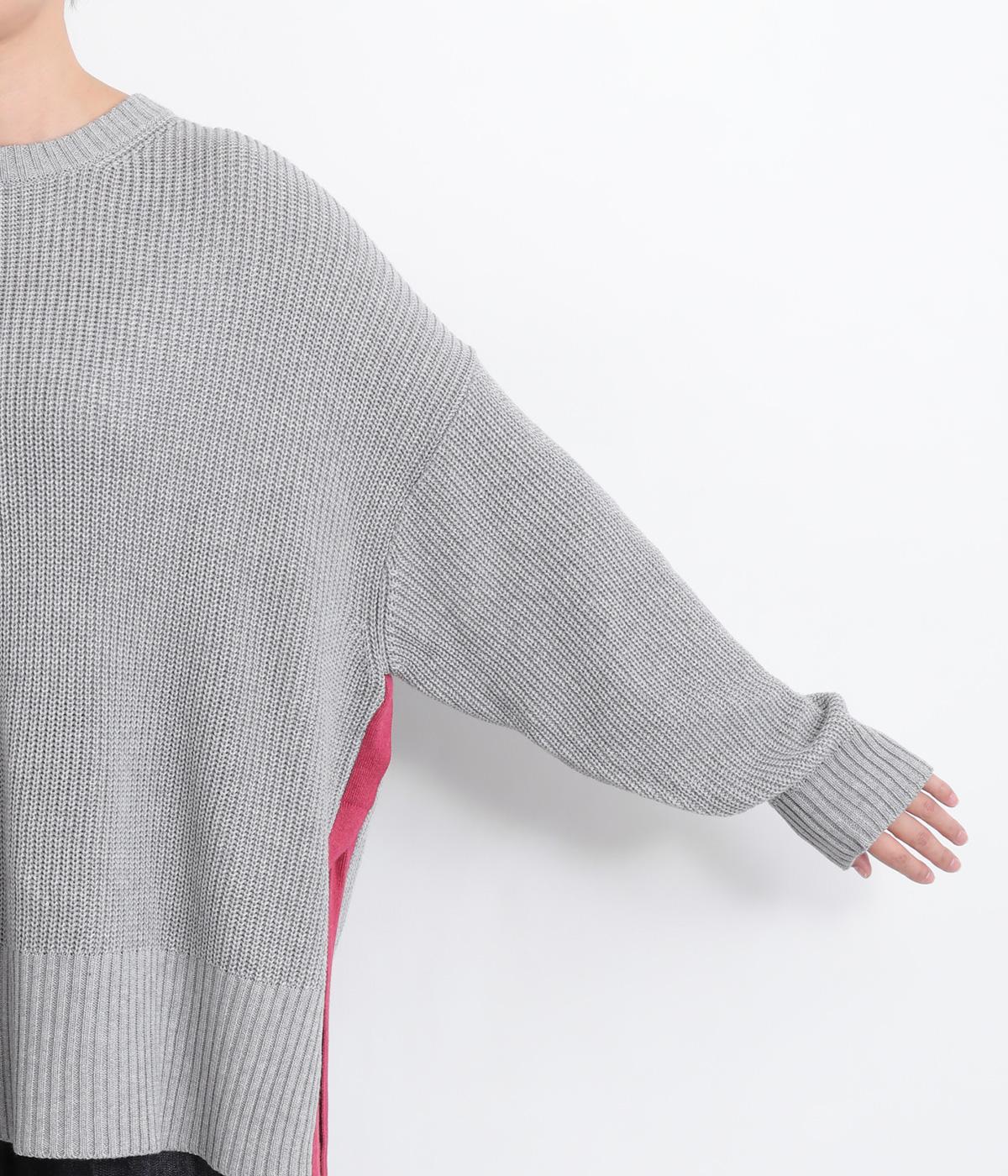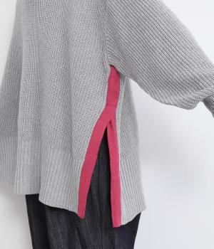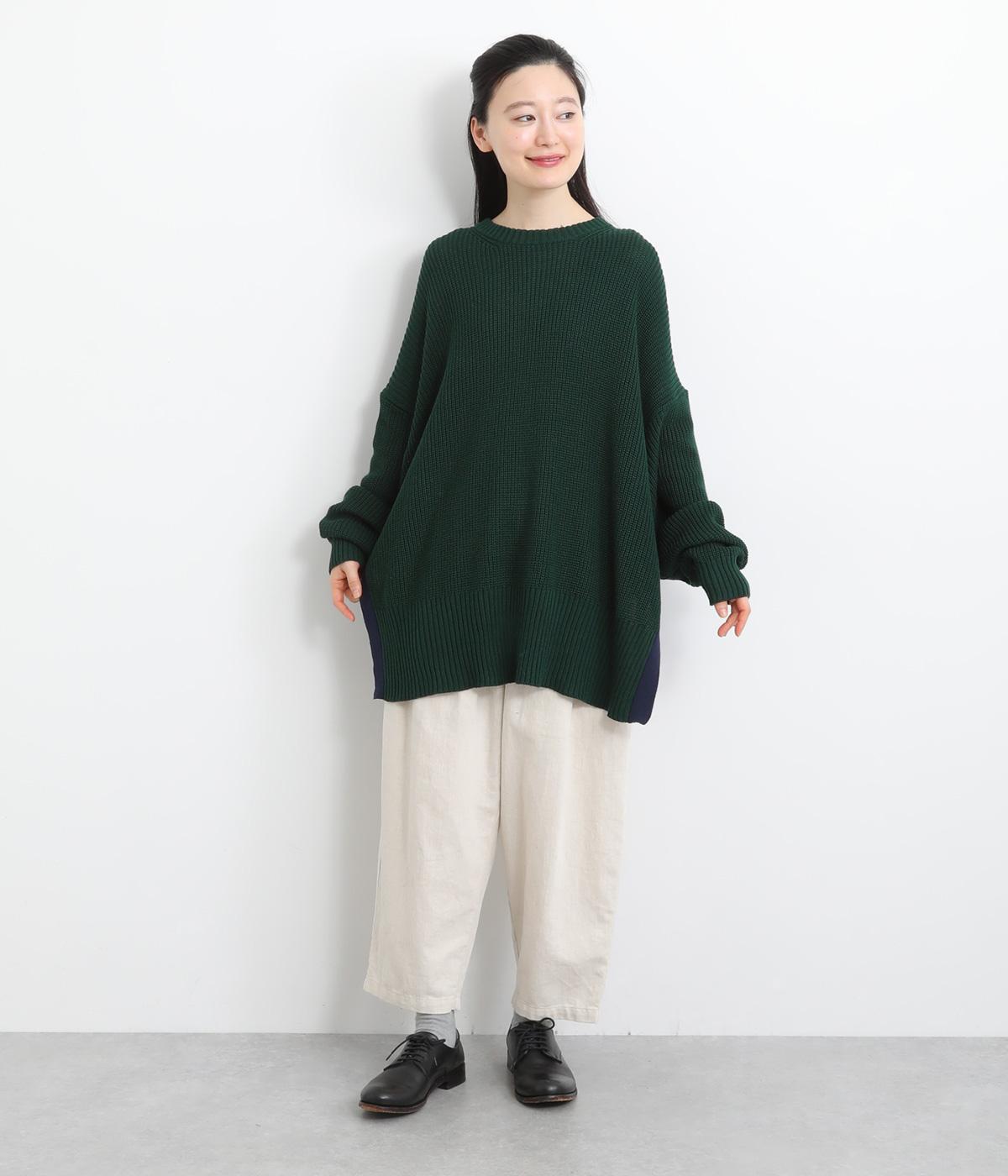 ゆったりとしたオーバーサイズのプルオーバーは、一見シンプルながらサイドの配色ロングスリットがアクセントになっています。リラックスムードな作りでボリュームボトムとも相性が良く、柄アイテム合わせもおすすめ。
