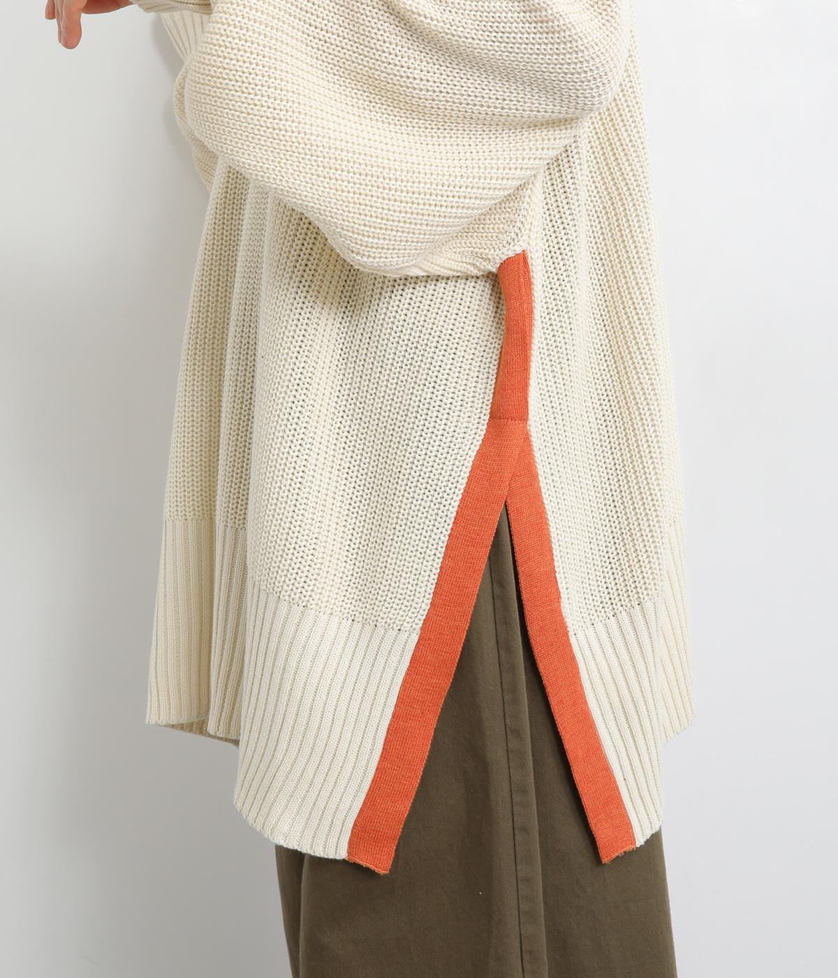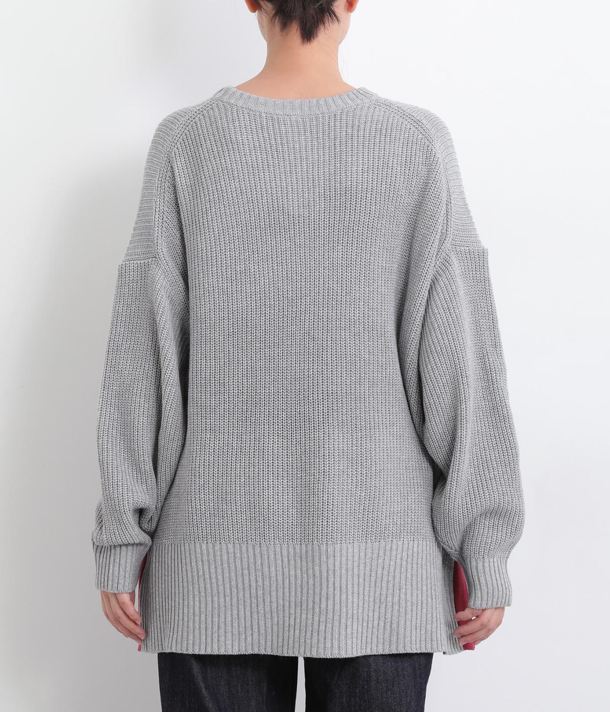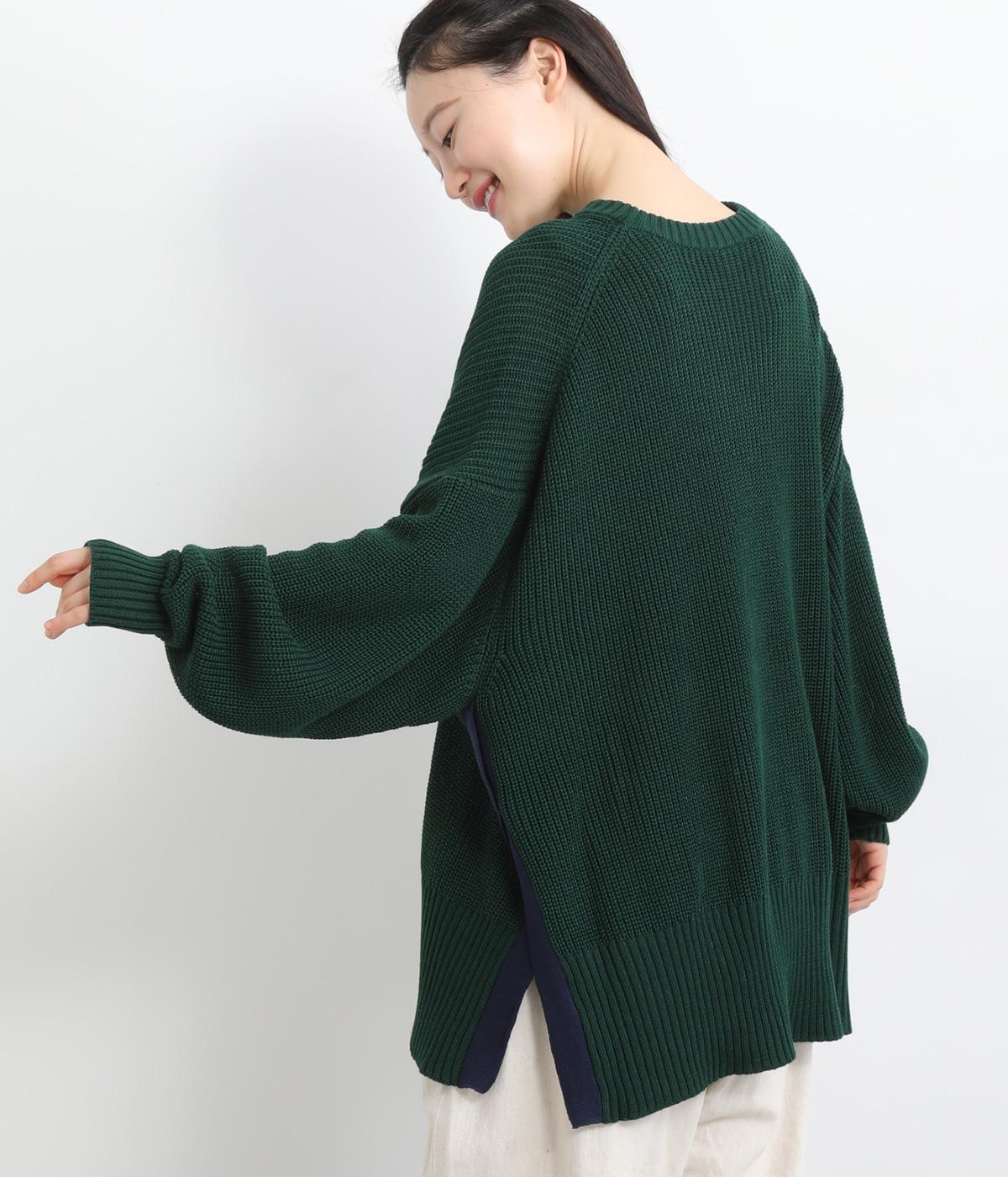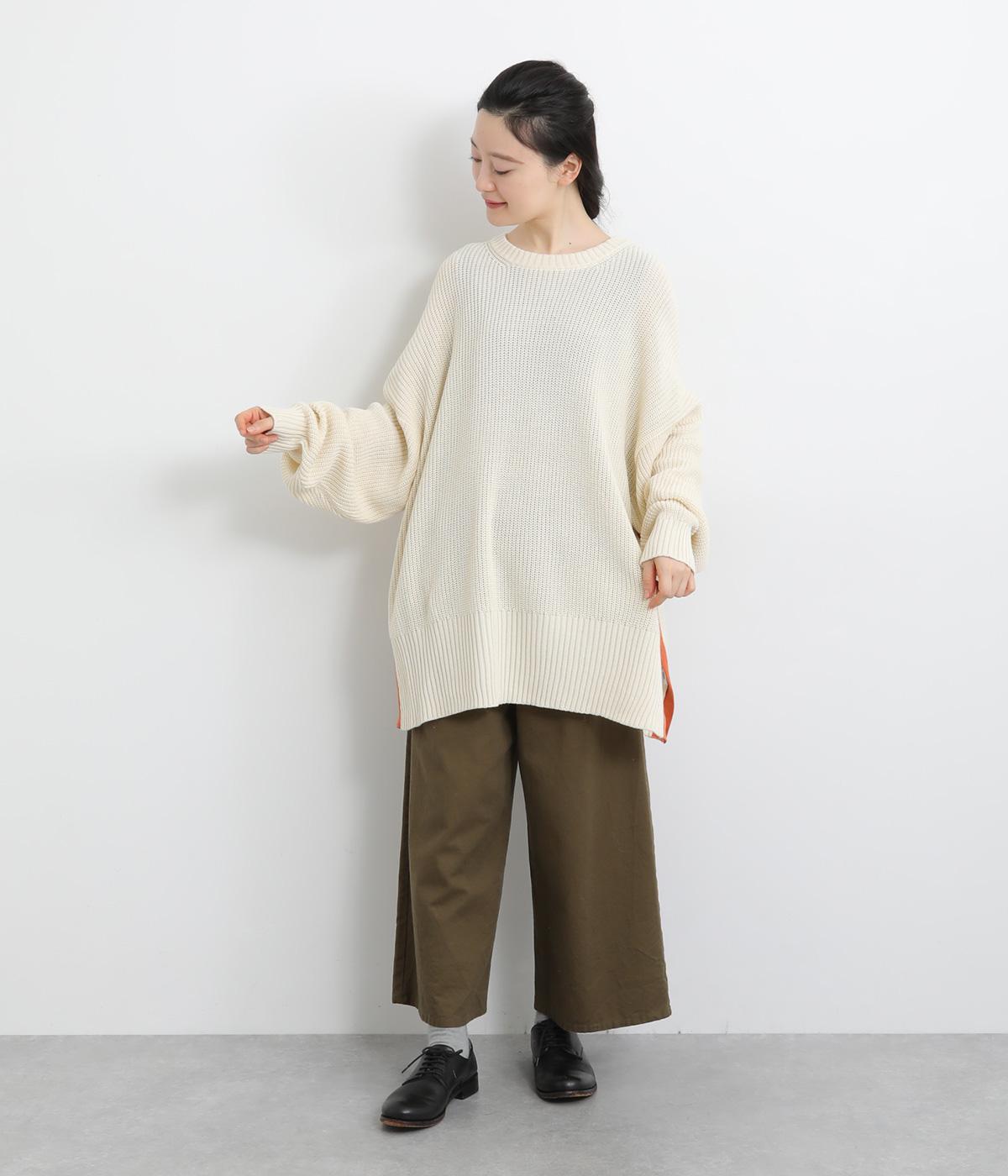 ゆったりとしたオーバーサイズのプルオーバーは、一見シンプルながらサイドの配色ロングスリットがアクセントになっています。リラックスムードな作りでボリュームボトムとも相性が良く、柄アイテム合わせもおすすめ。