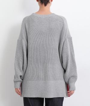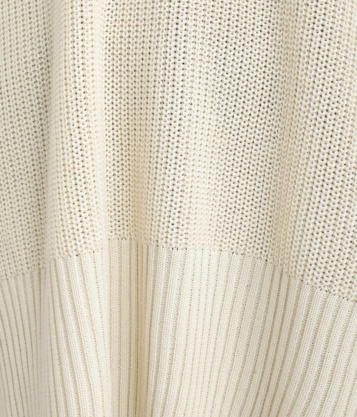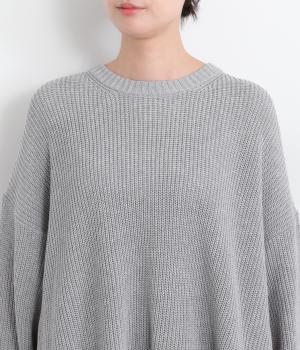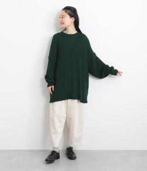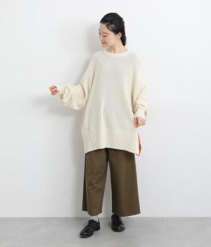 さり気なく表情のある畦編みが特徴的なニットプルオーバー。コットンとアクリルで軽やかに編み立て、季節の変わり目から長く着まわせます。