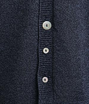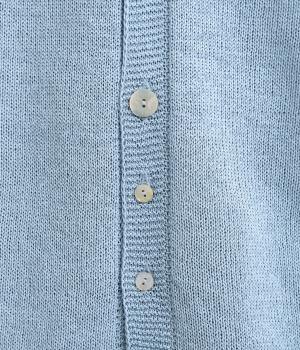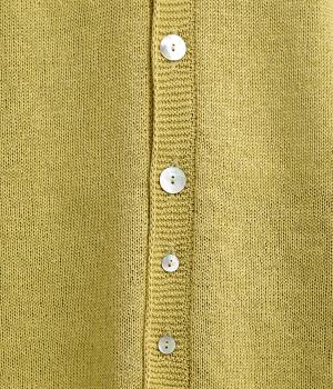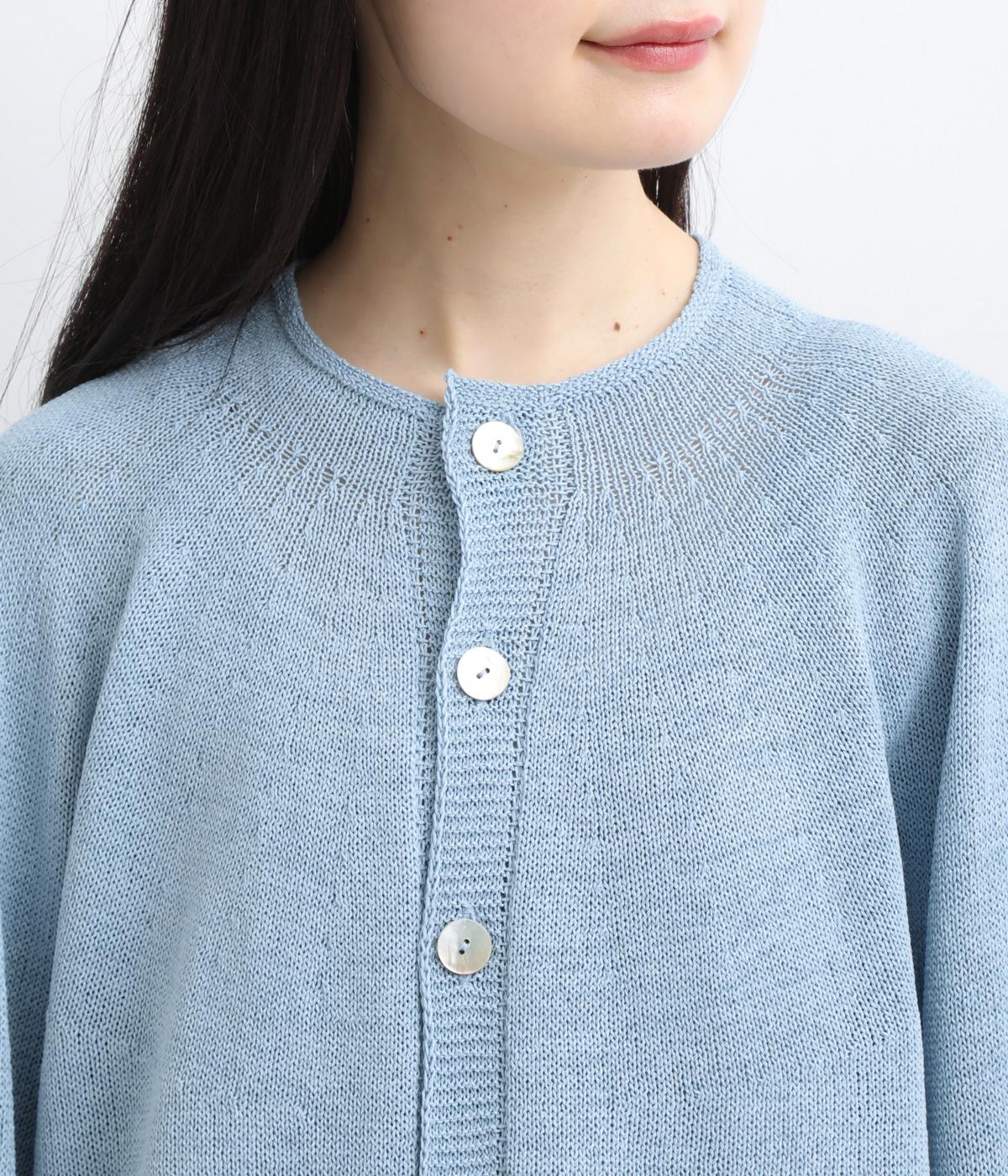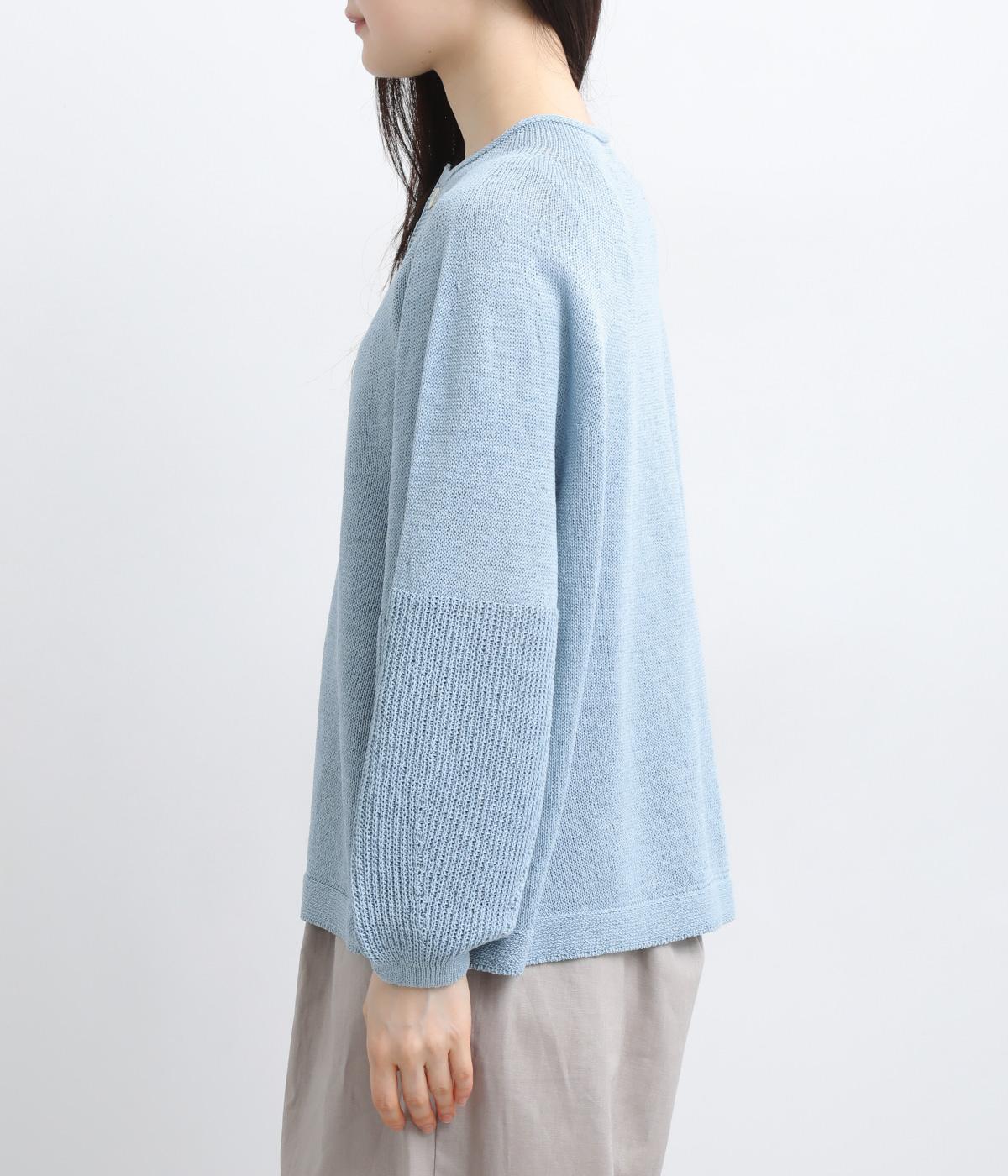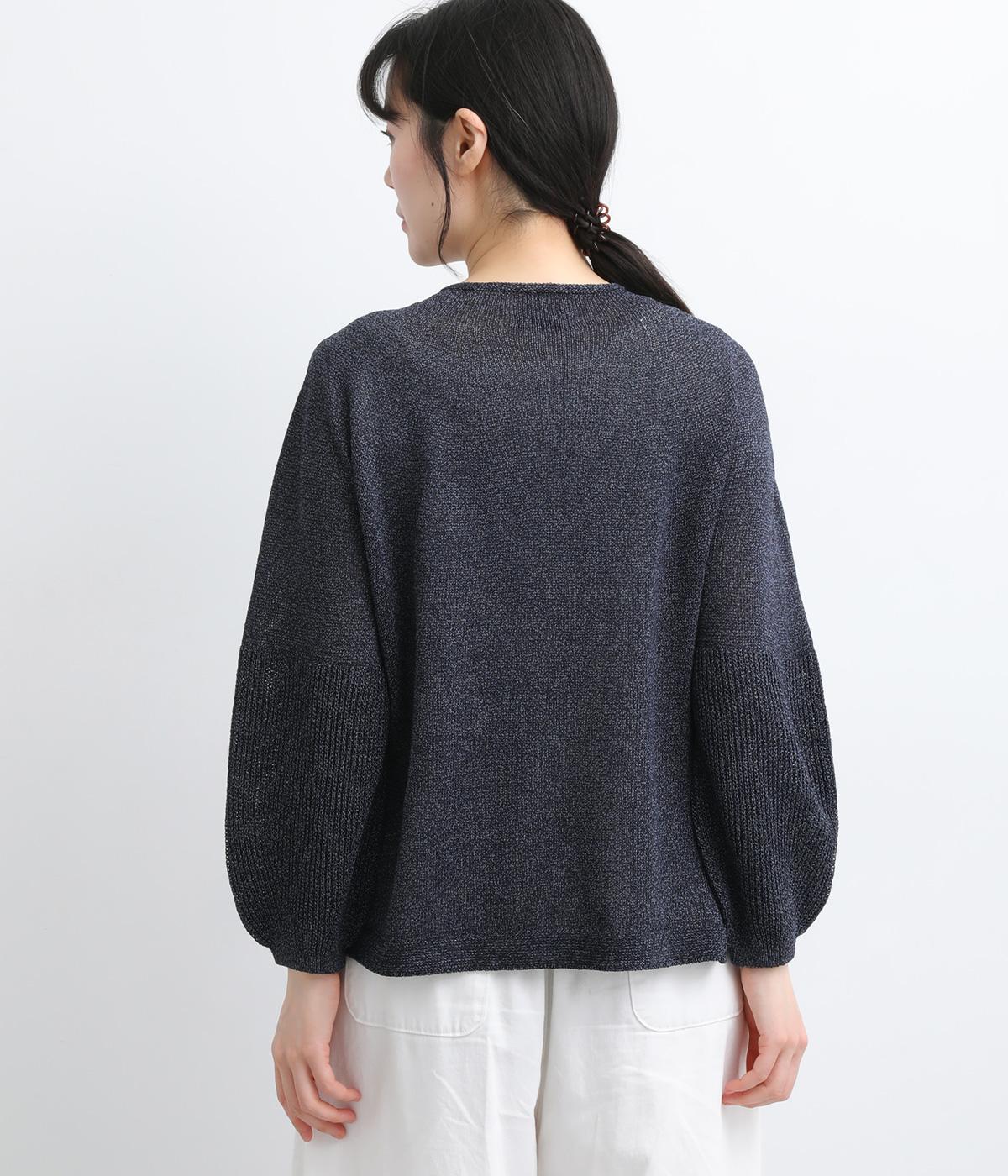 縫い目をおさえたホールガーメントで編みならではの、やわらかな落ち感が魅力です。袖部分はリブ調の編み地に切り替え、ふんわりと丸みのあるバルーンシルエットに。フロントボタンは下側のみサイズに変化をつけ、さりげないアクセントを添えています。カジュアルにもきれいめにも合わせやすい一着です。