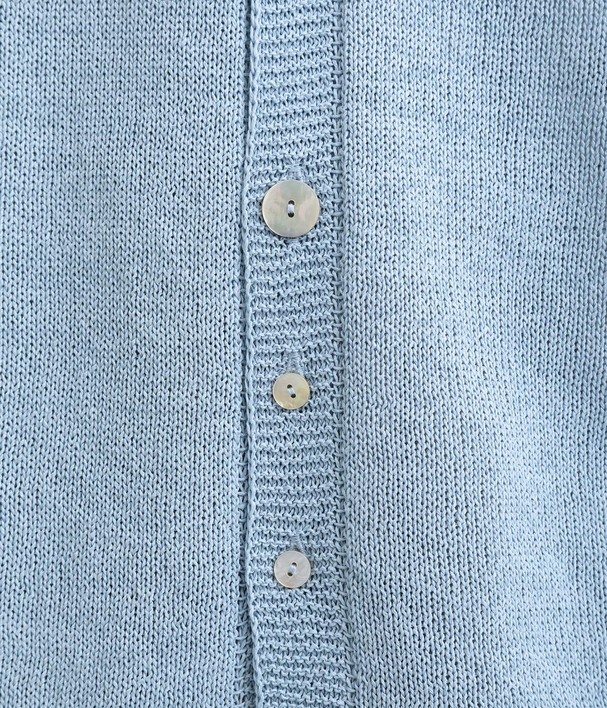 ペーパーコットンならではのドライな風合いが、清涼感のある着心地を叶えます。軽くて肌にまとわりつきにくいので、長時間の着用も快適です。ざっくりとした編みの表情が、素材のよさを引き立てています。