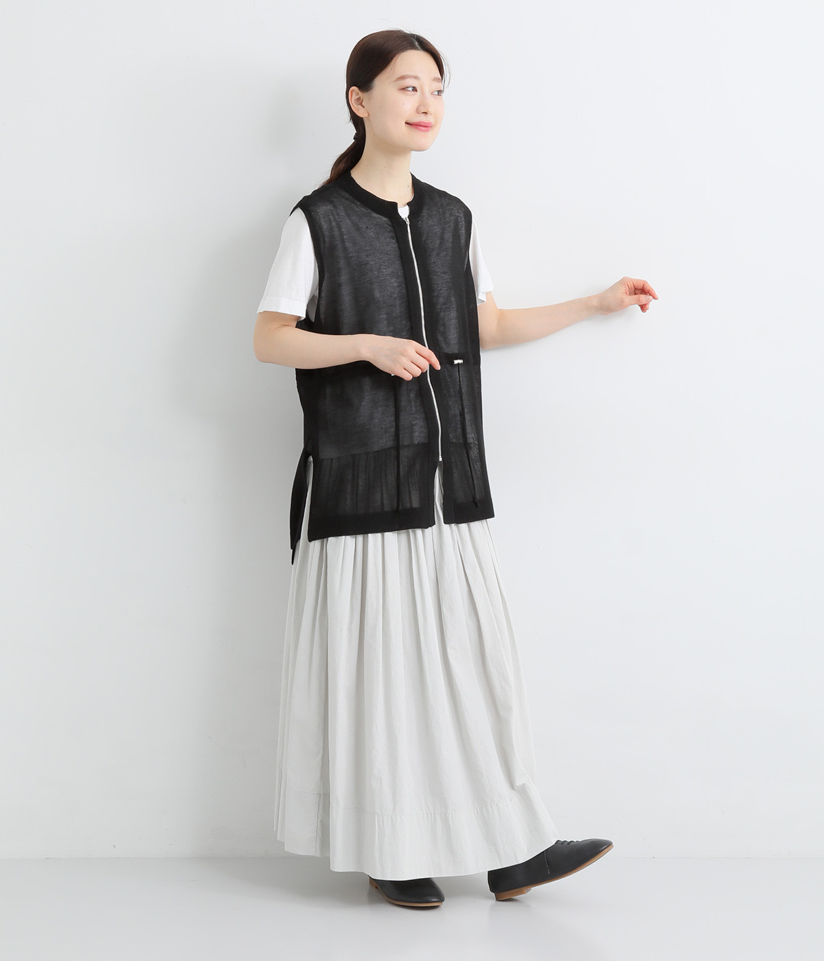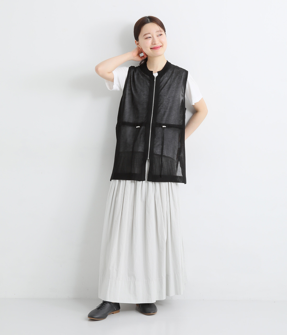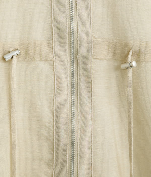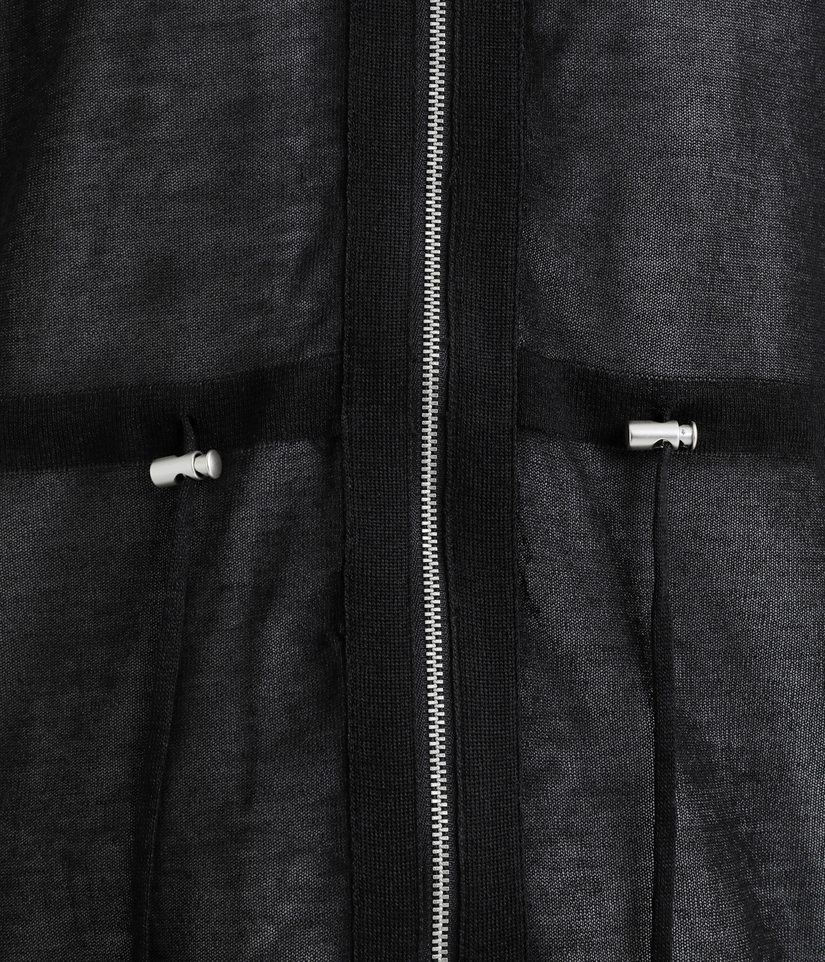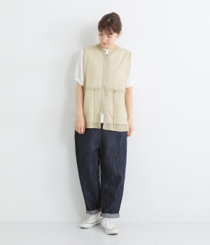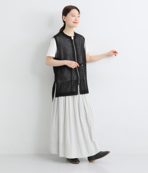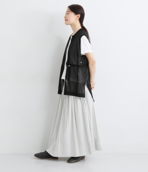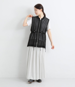 シェイプすることも可能なウエストのドロストコードがポイント。着脱しやすいジップアップ仕様なので、デイリースタイルにさっと合わせやすくなっています。サイドスリットを大きく入れて抜け感を出すとともに、前後差を持たせた裾に仕上げました。