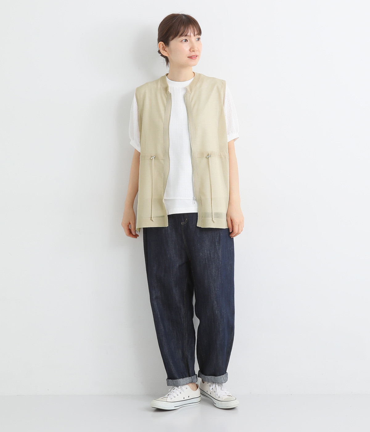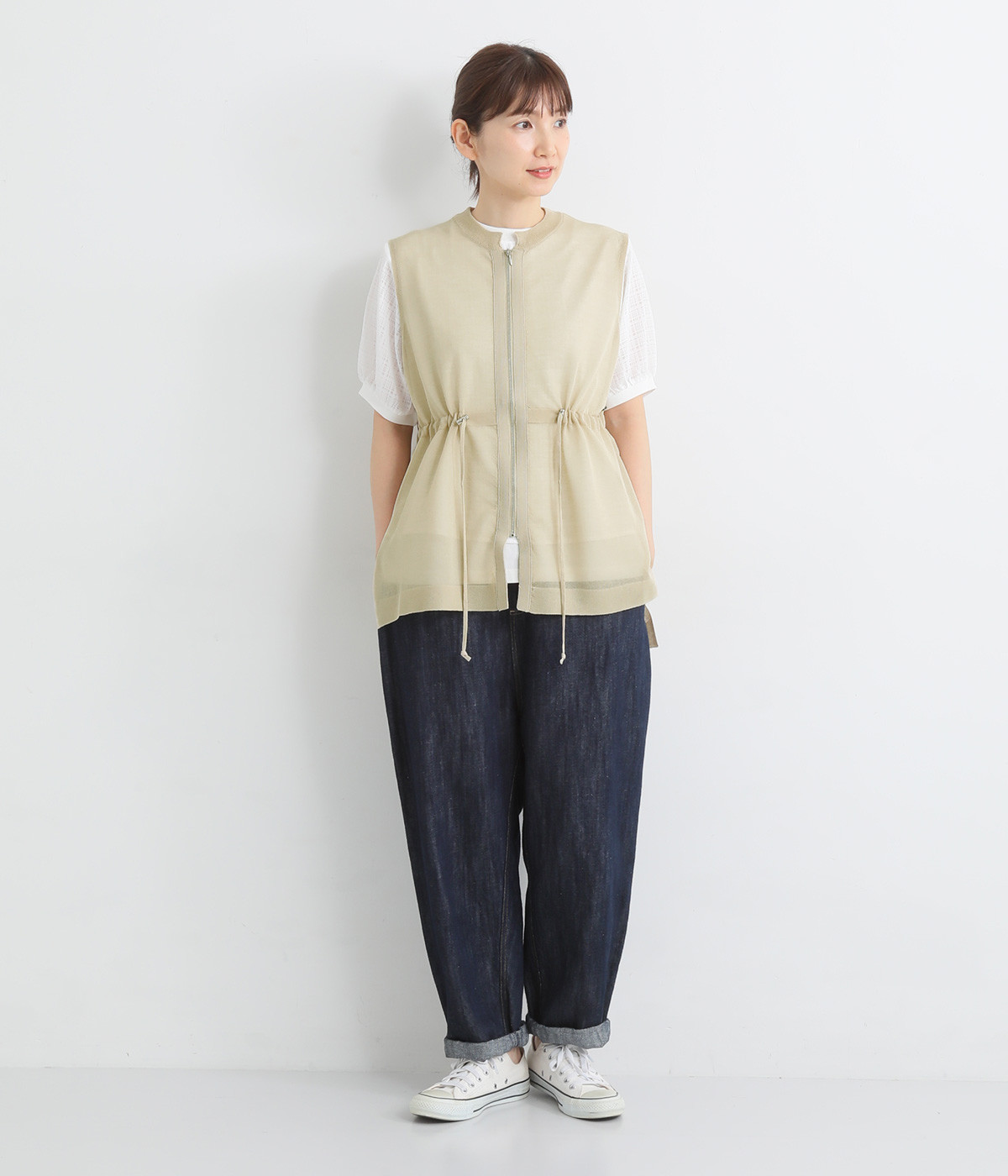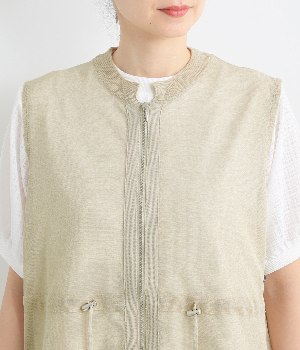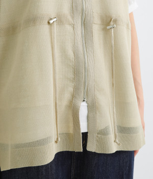 シェイプすることも可能なウエストのドロストコードがポイント。着脱しやすいジップアップ仕様なので、デイリースタイルにさっと合わせやすくなっています。サイドスリットを大きく入れて抜け感を出すとともに、前後差を持たせた裾に仕上げました。