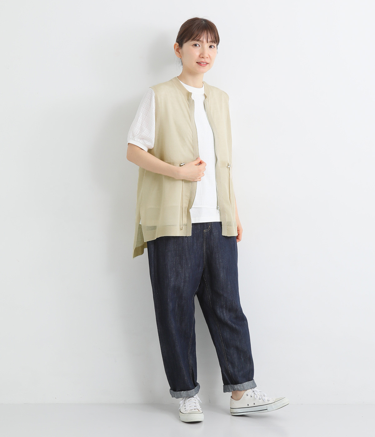 - ※お持ちのアイテムを平置きの状態で計測の上、サイズ表の寸法と比較してご検討ください。