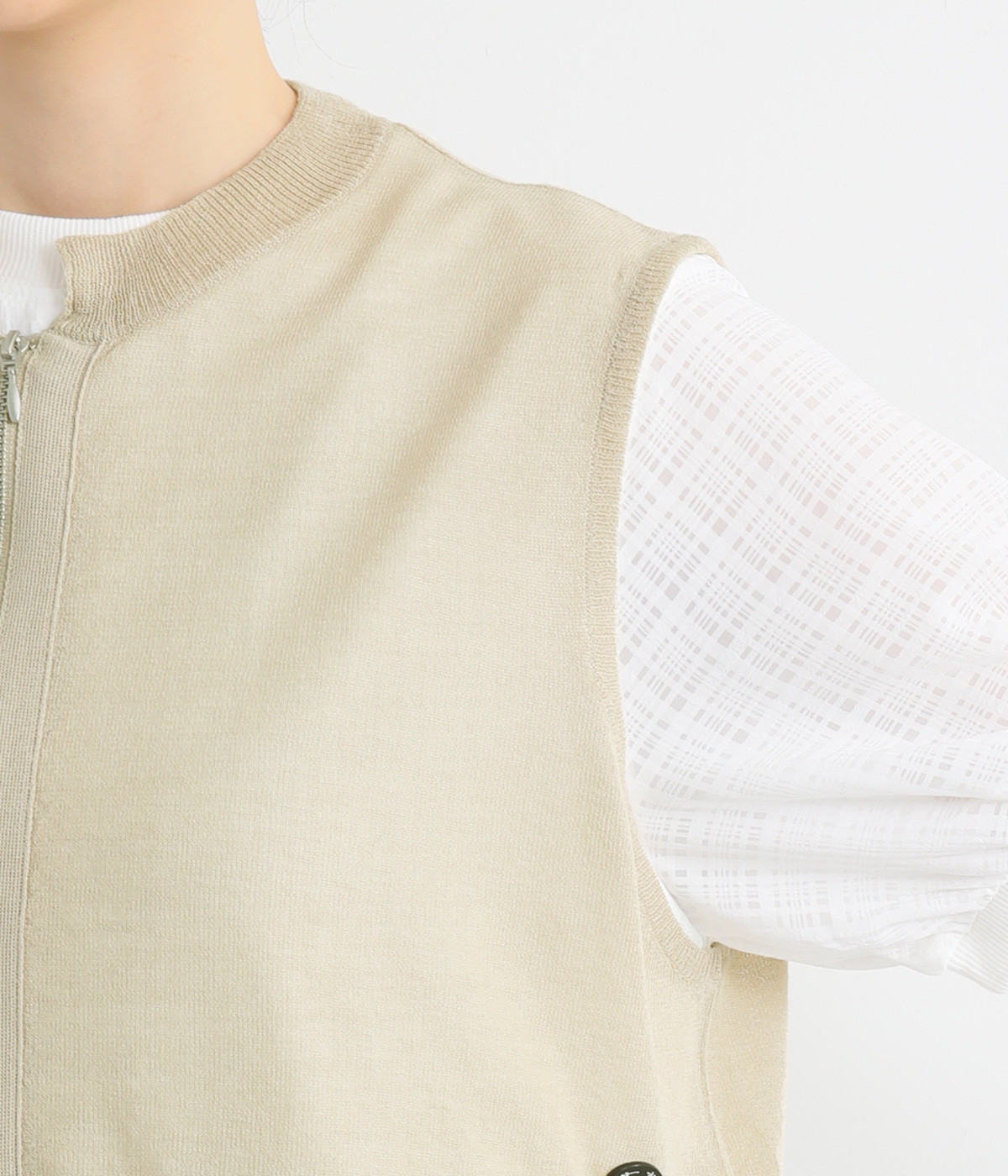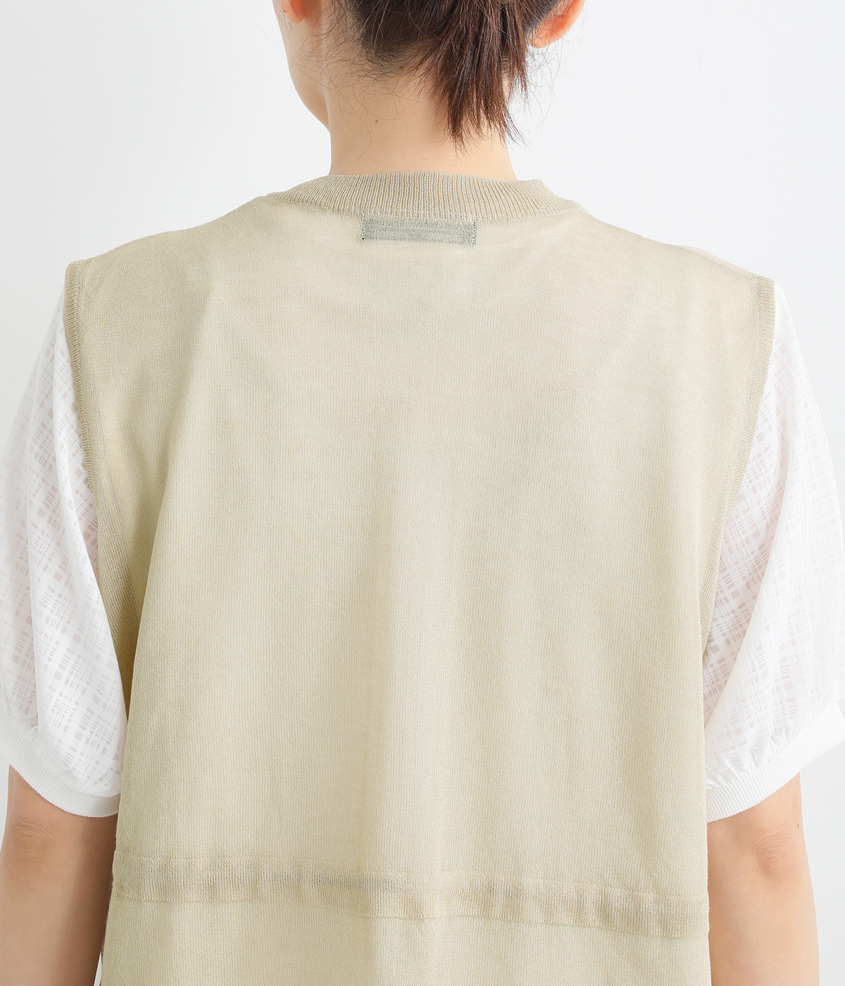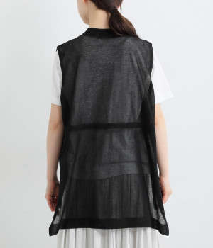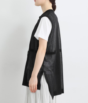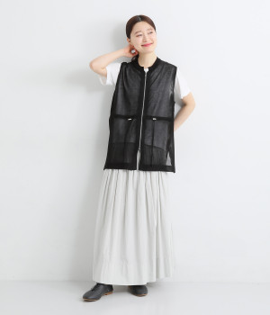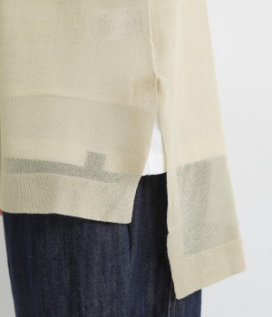 やわらかく軽やかな風合いのポリエステル×レーヨンを混紡したニット素材です。透け感たっぷりの仕上がりで、コーディネートをニュアンスアップ。風通しがよく、さわやかに着こなせます。