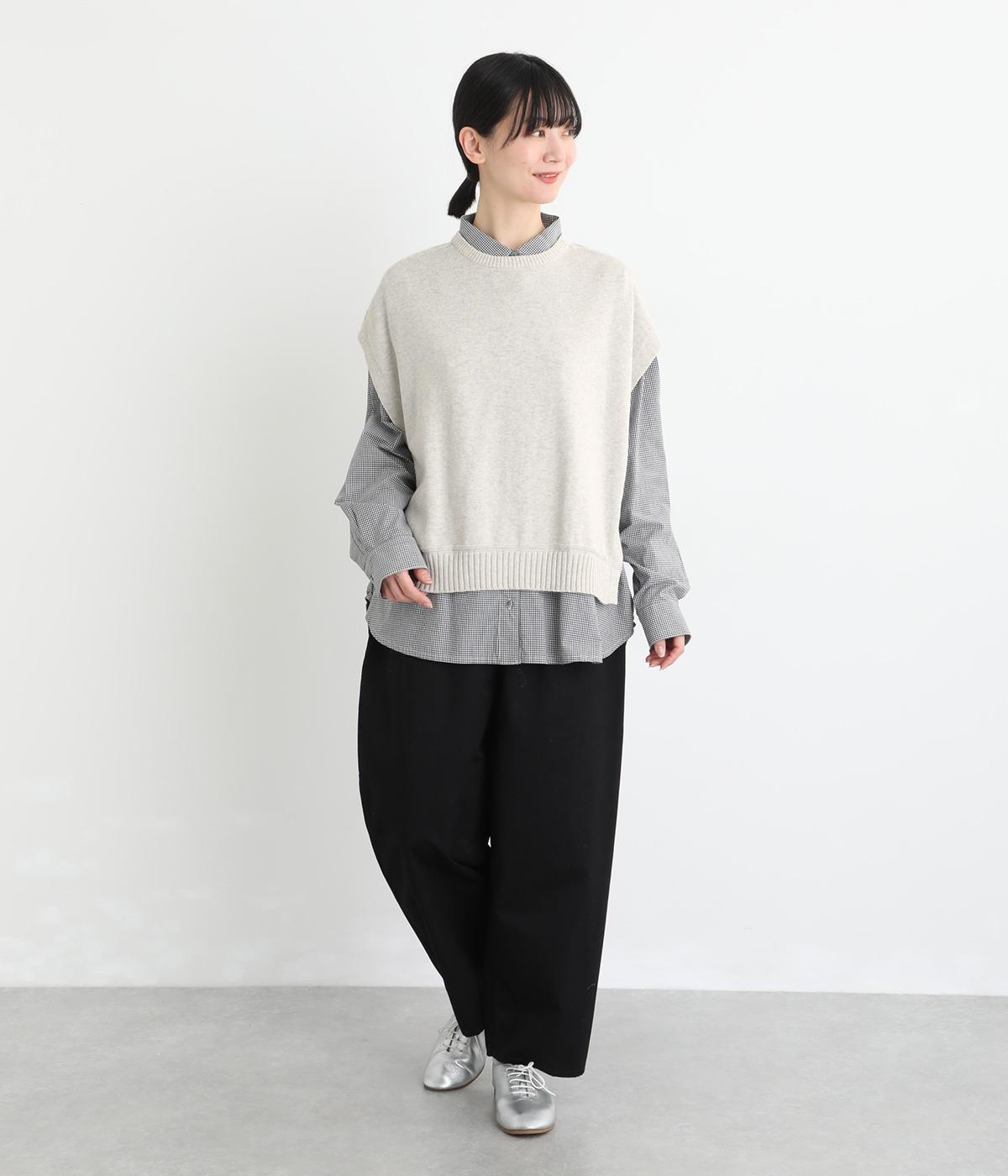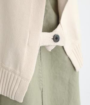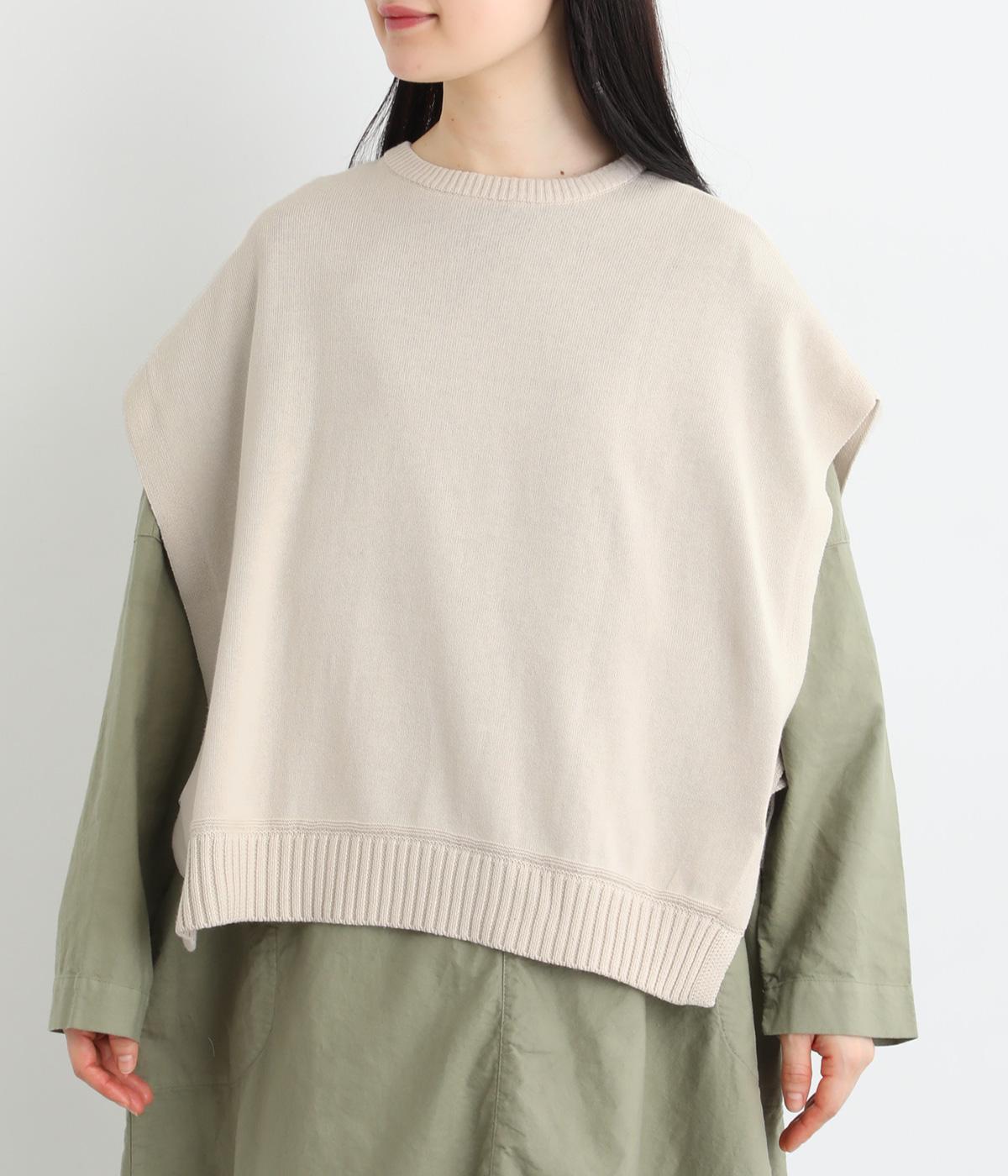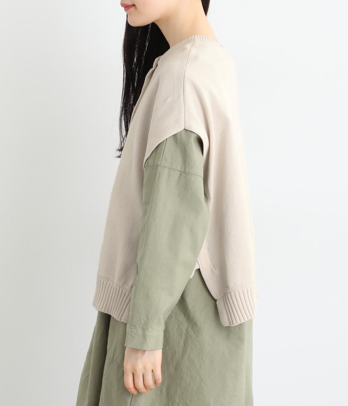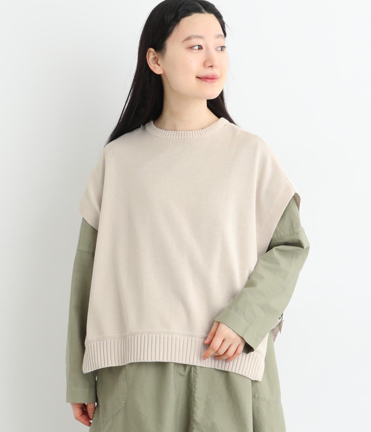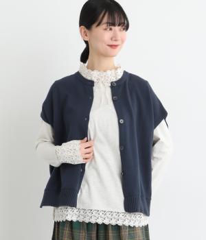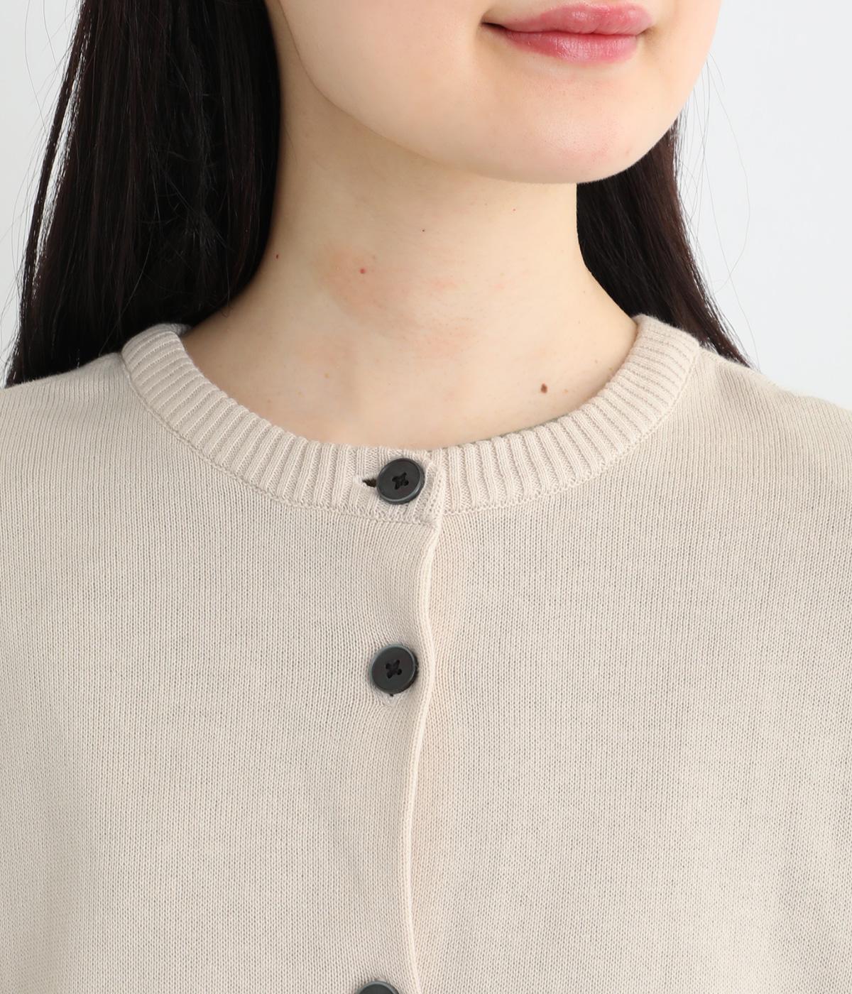 ふわりとやわらかな肌ざわりが心地よい、定番のコットンニット素材です。さらりとした着心地で、季節の変わり目にも活躍します。吸水性と伸縮性にも優れているので、デイリー使いにうれしい生地感です。