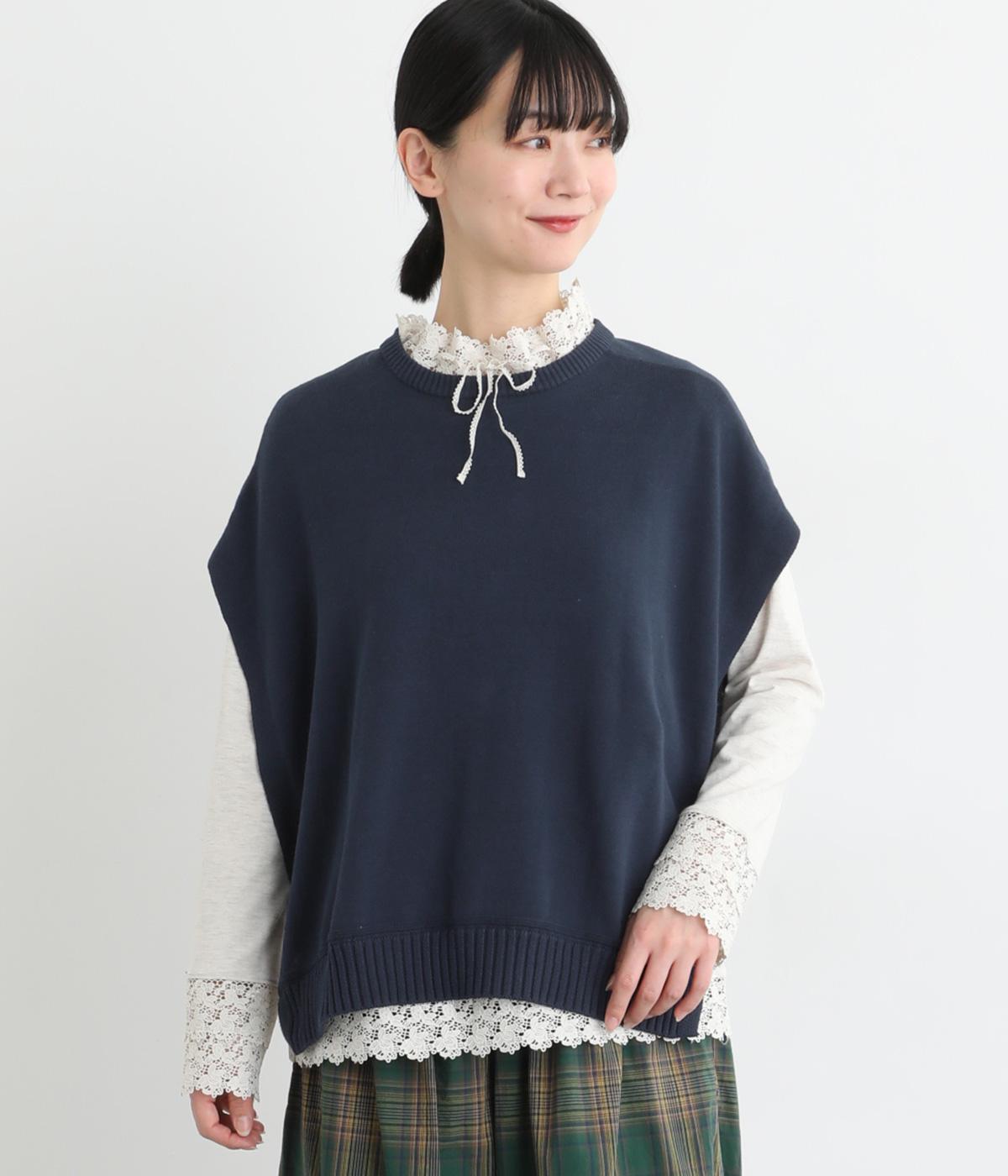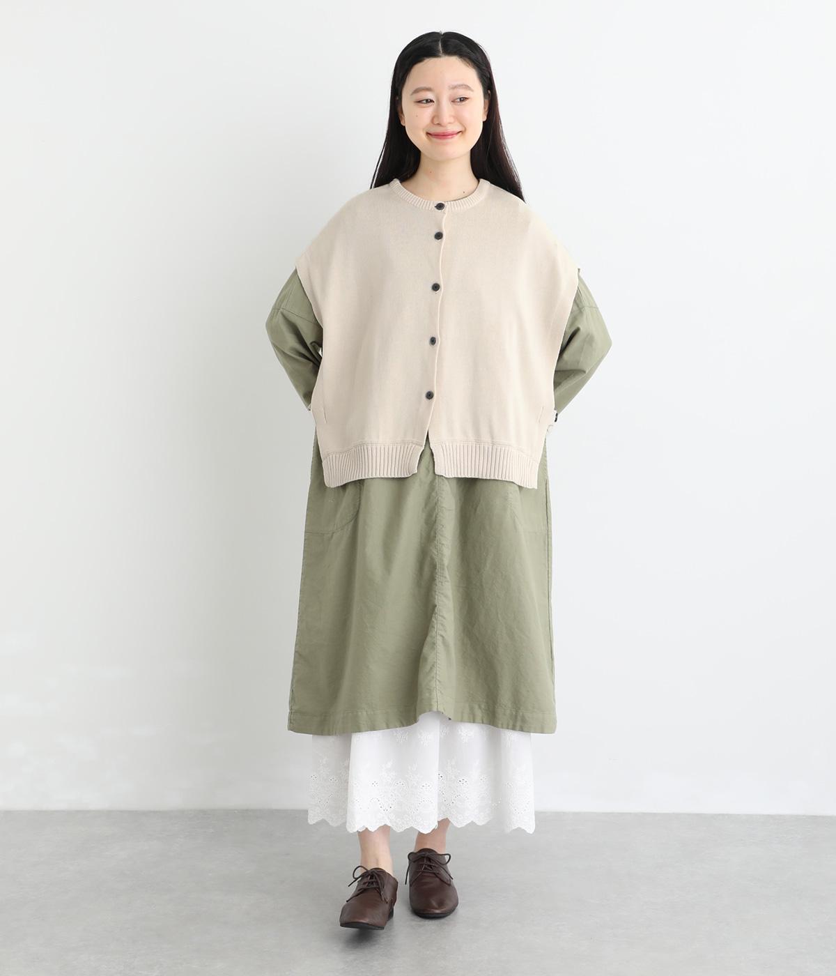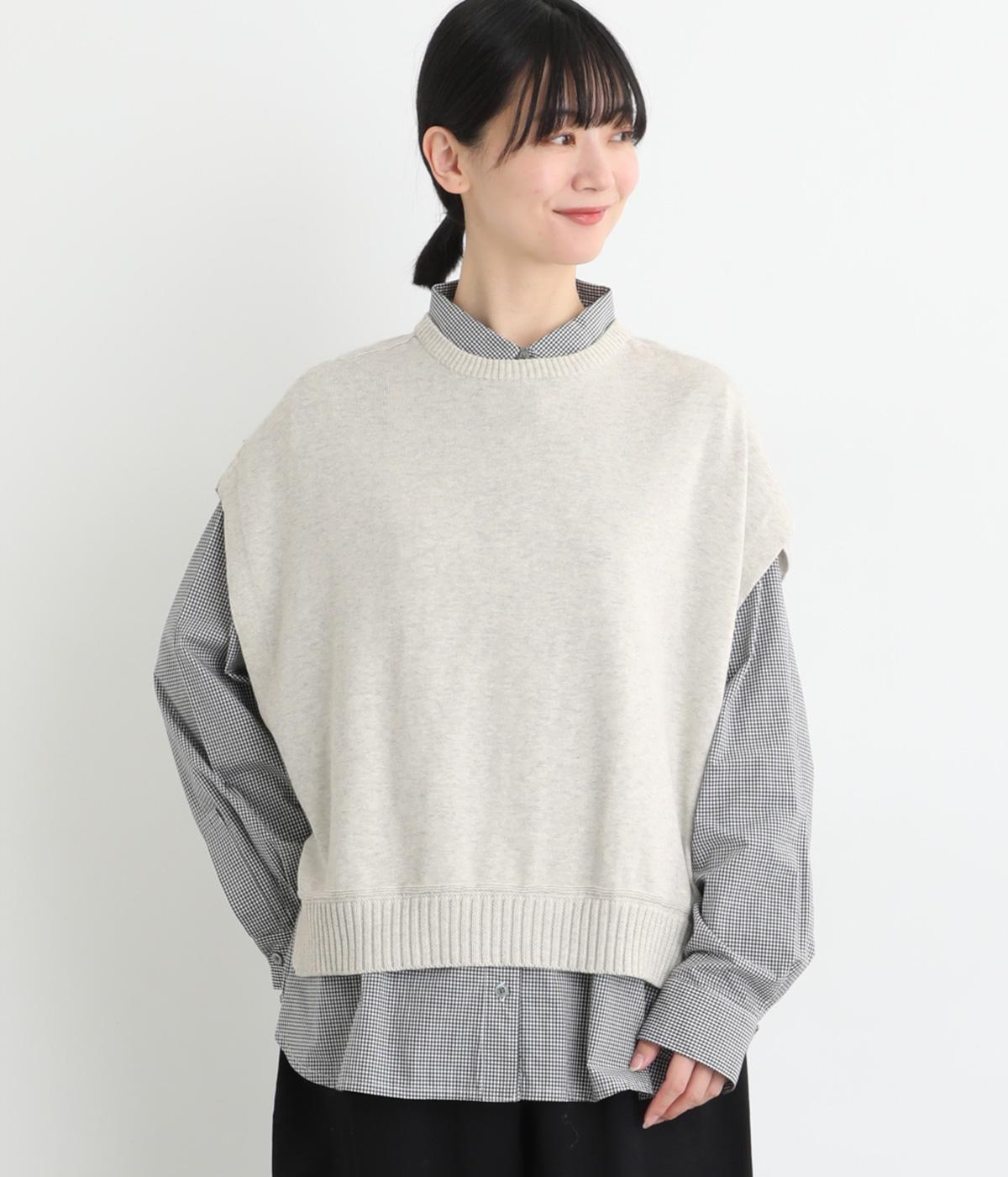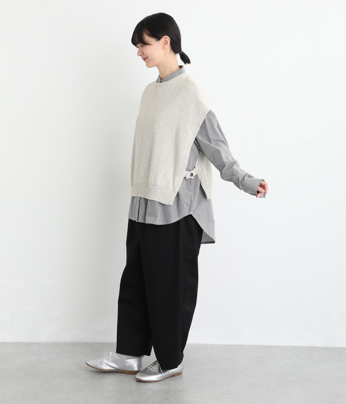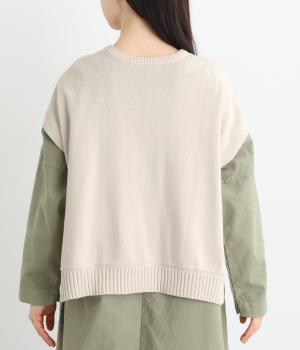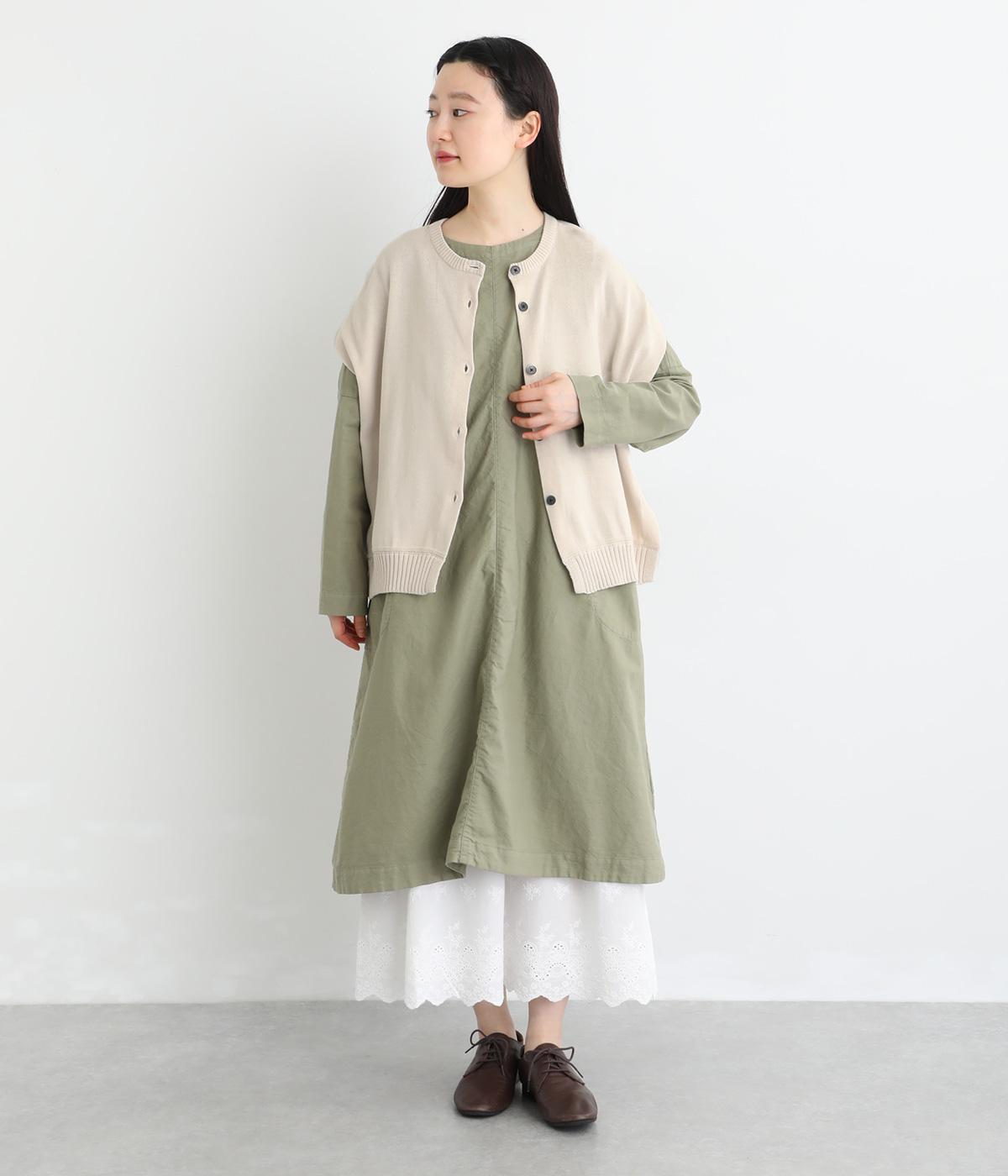 ふわりとやわらかな肌ざわりが心地よい、定番のコットンニット素材です。さらりとした着心地で、季節の変わり目にも活躍します。吸水性と伸縮性にも優れているので、デイリー使いにうれしい生地感です。