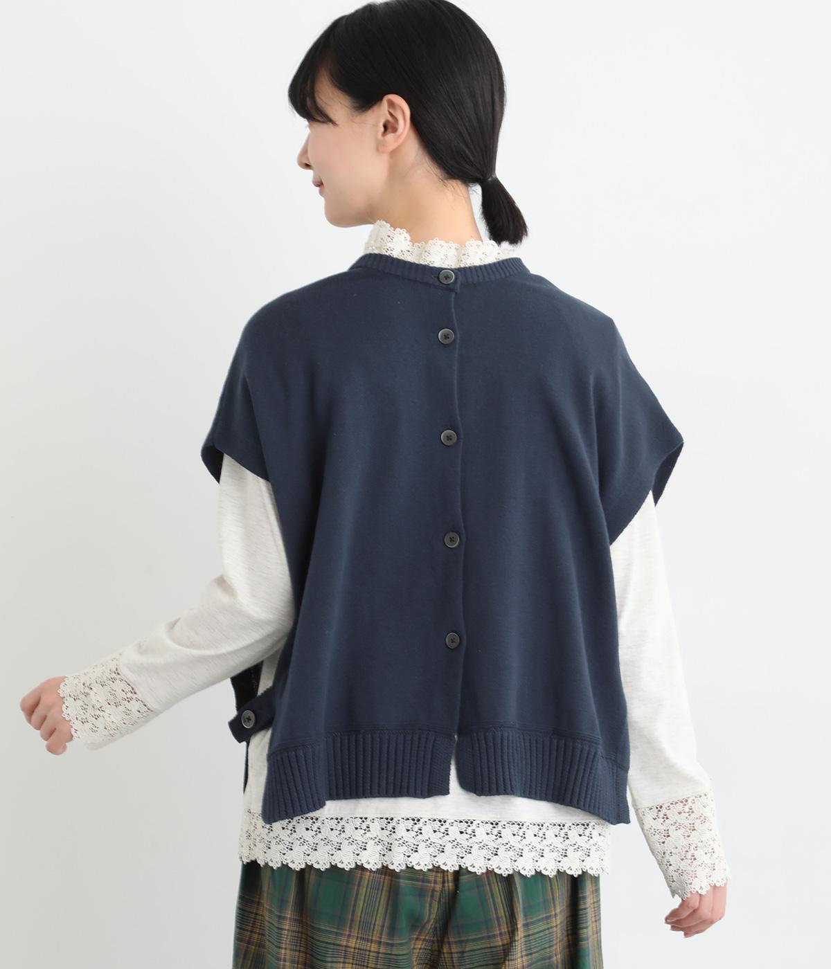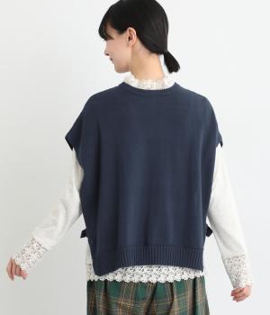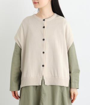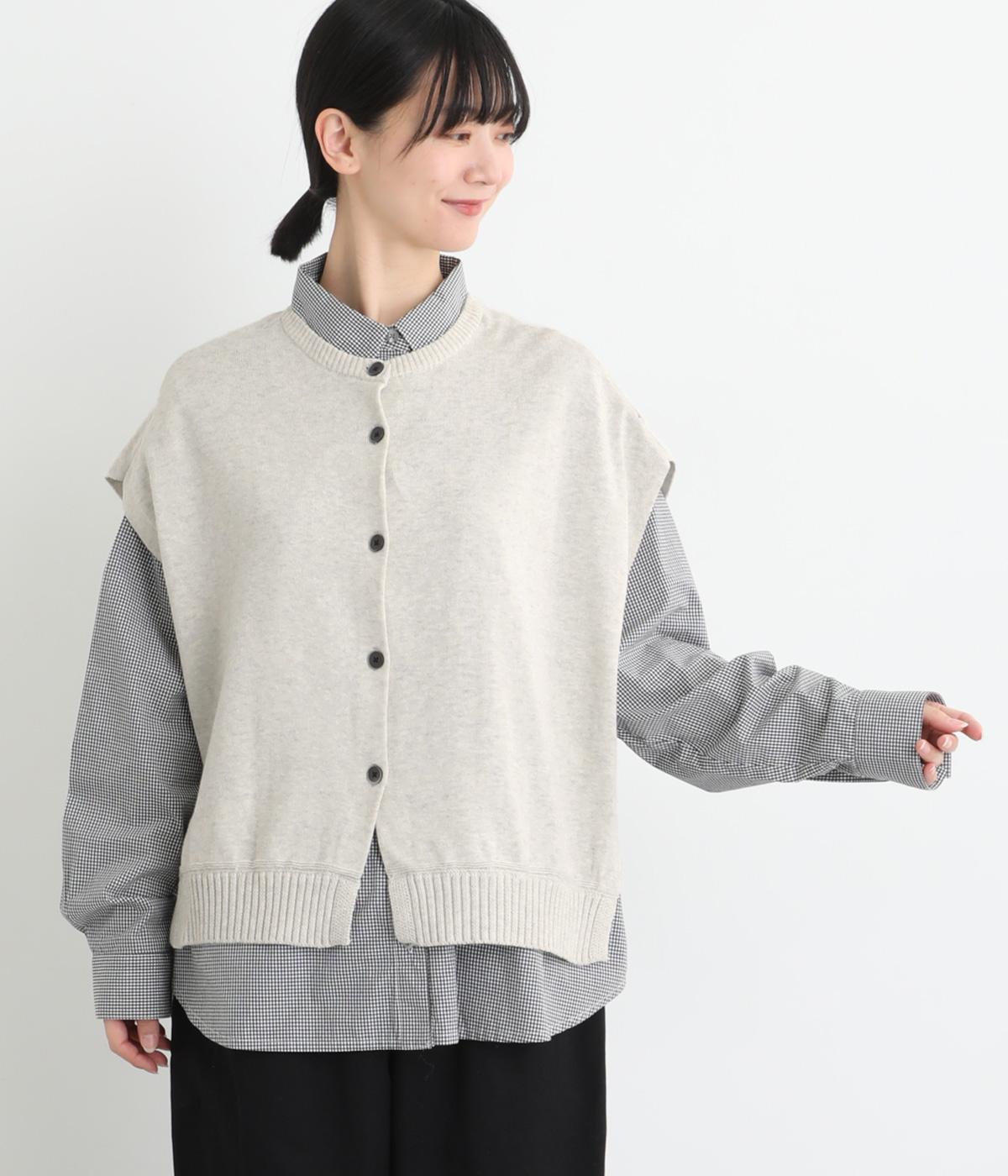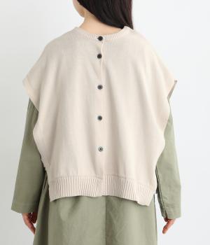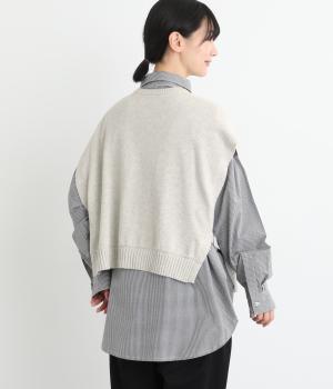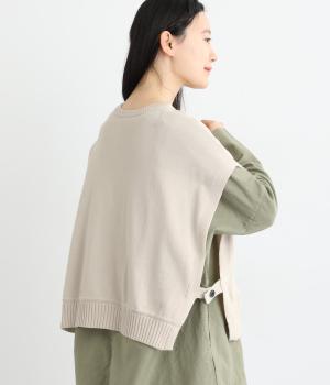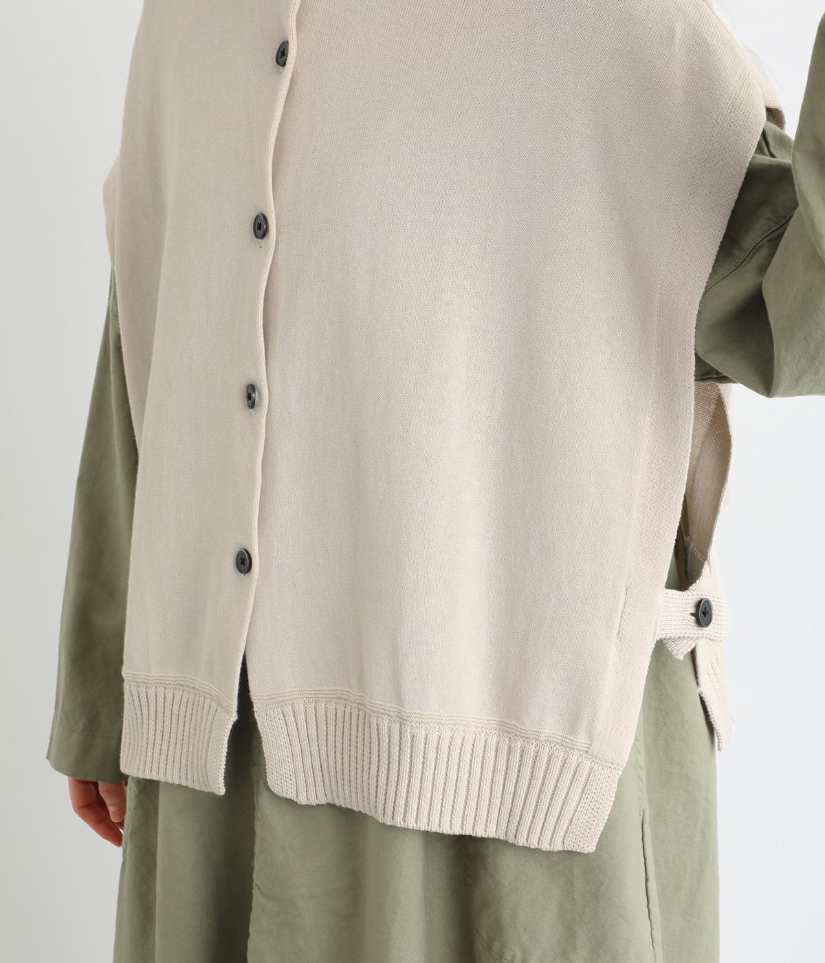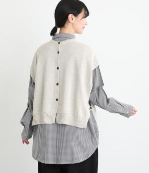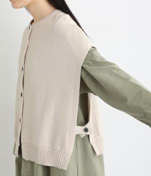 両脇に大胆なオープンデザインを施した、個性が光るベストです。ボタンの開閉で印象を変えられ、前後どちらでも着用できる2way仕様。着るだけで、いつものコーディネートに新鮮さをプラスしてくれるアイテムです。