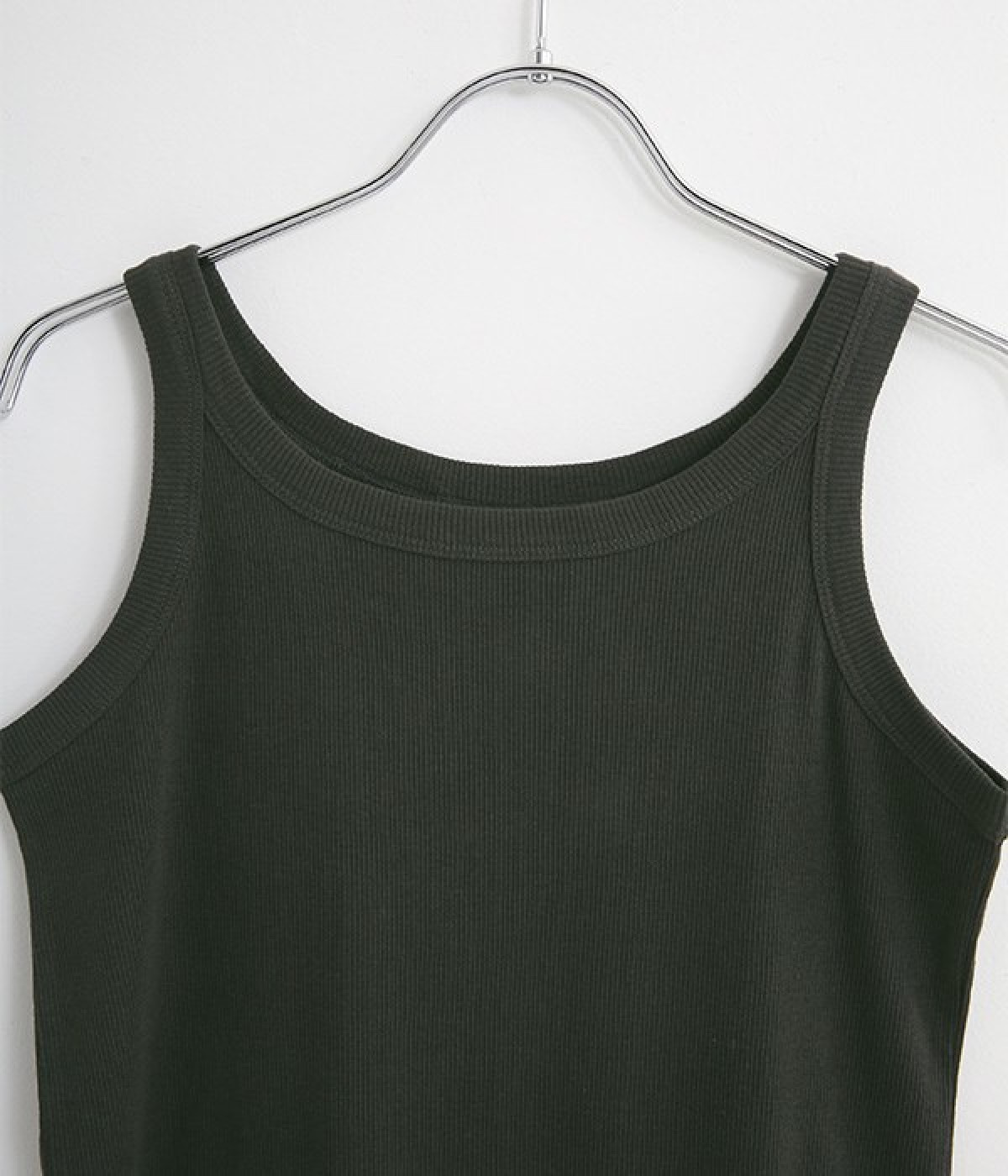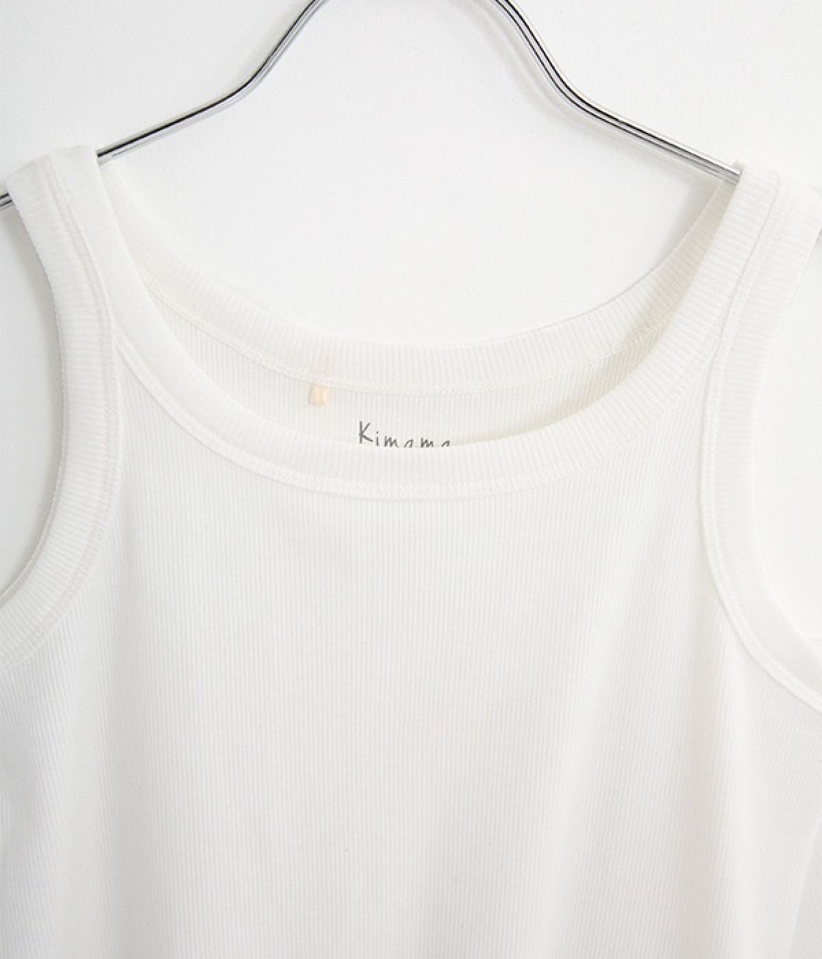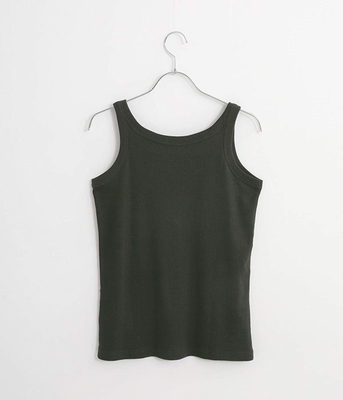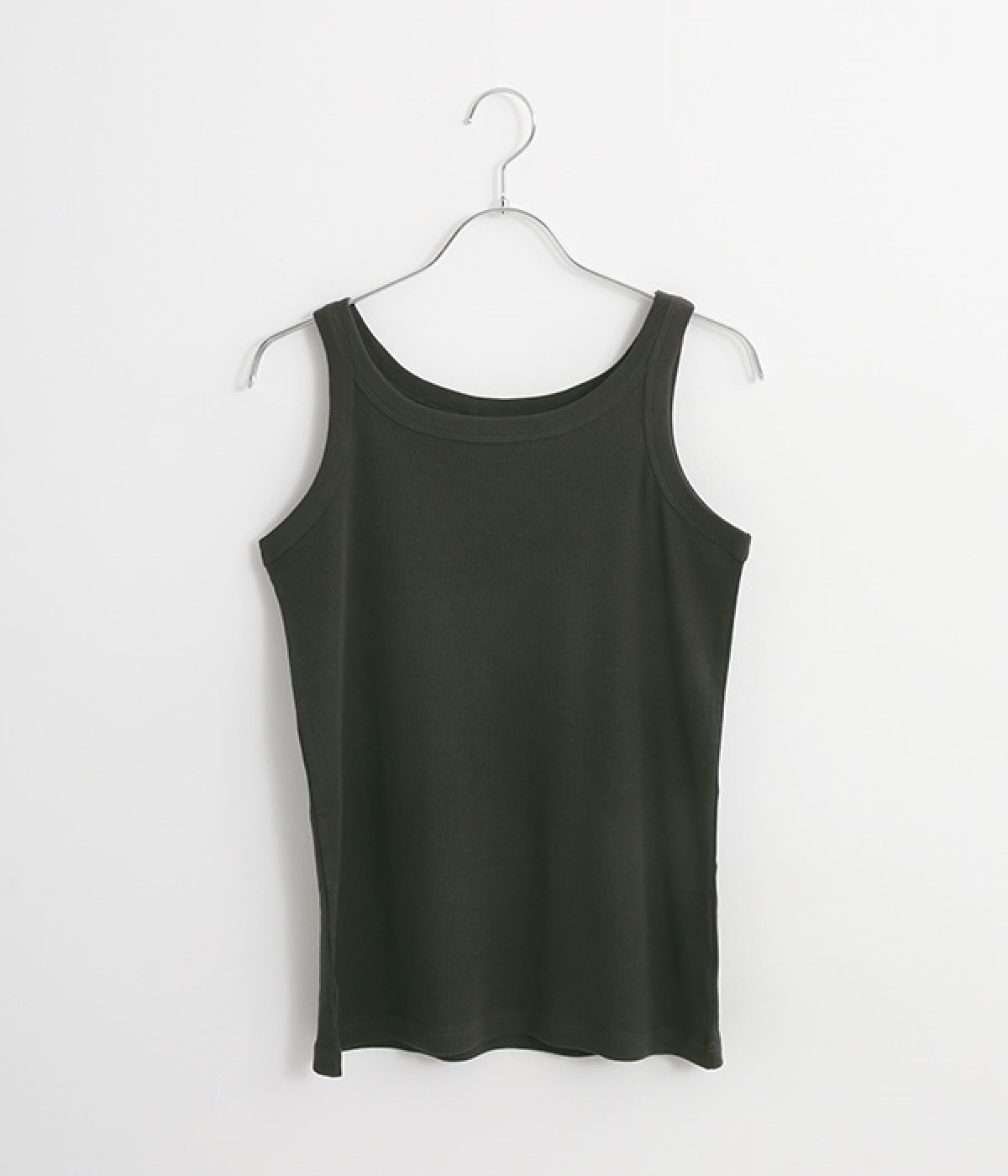 ほどよい厚みの細畝のリブカットソー生地は、ストレッチが効いていて着心地も抜群。素肌に心地よいインナーアイテムです。首元が詰まっているタイプのタンクトップは胸元カバーができ、すっきりと見せてくれます。大きすぎず小さすぎないジャストなサイズにベーシックなカラーで季節を問わず使える一枚です。