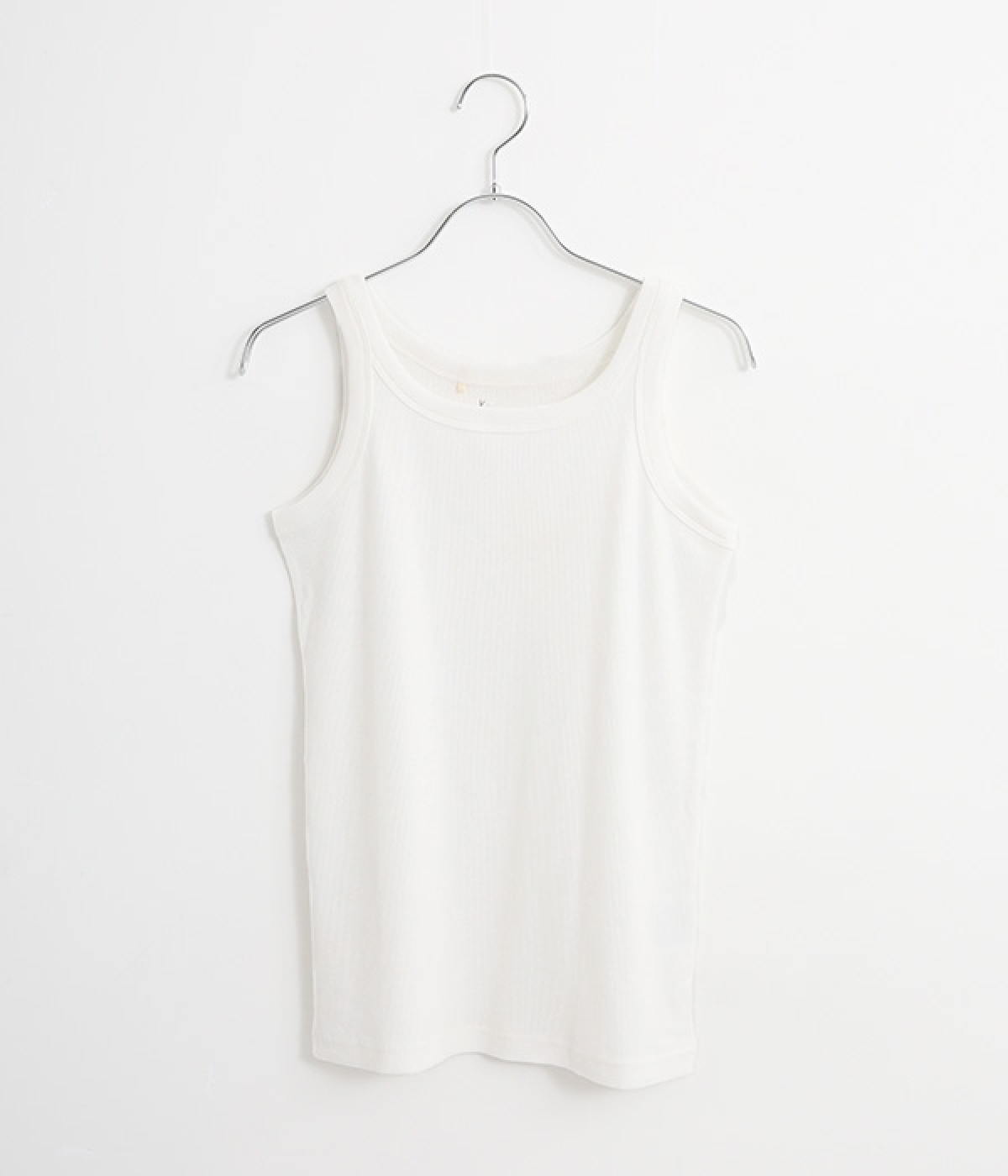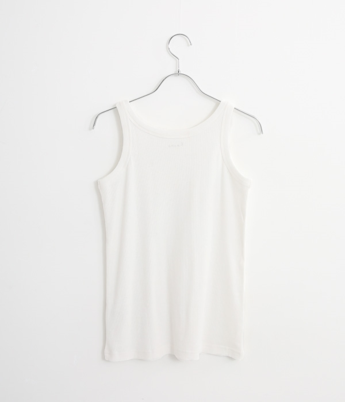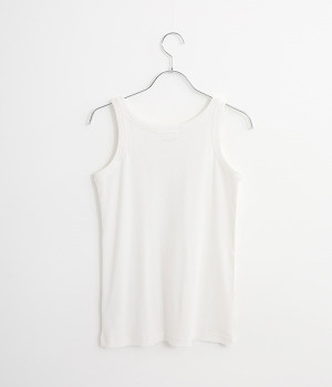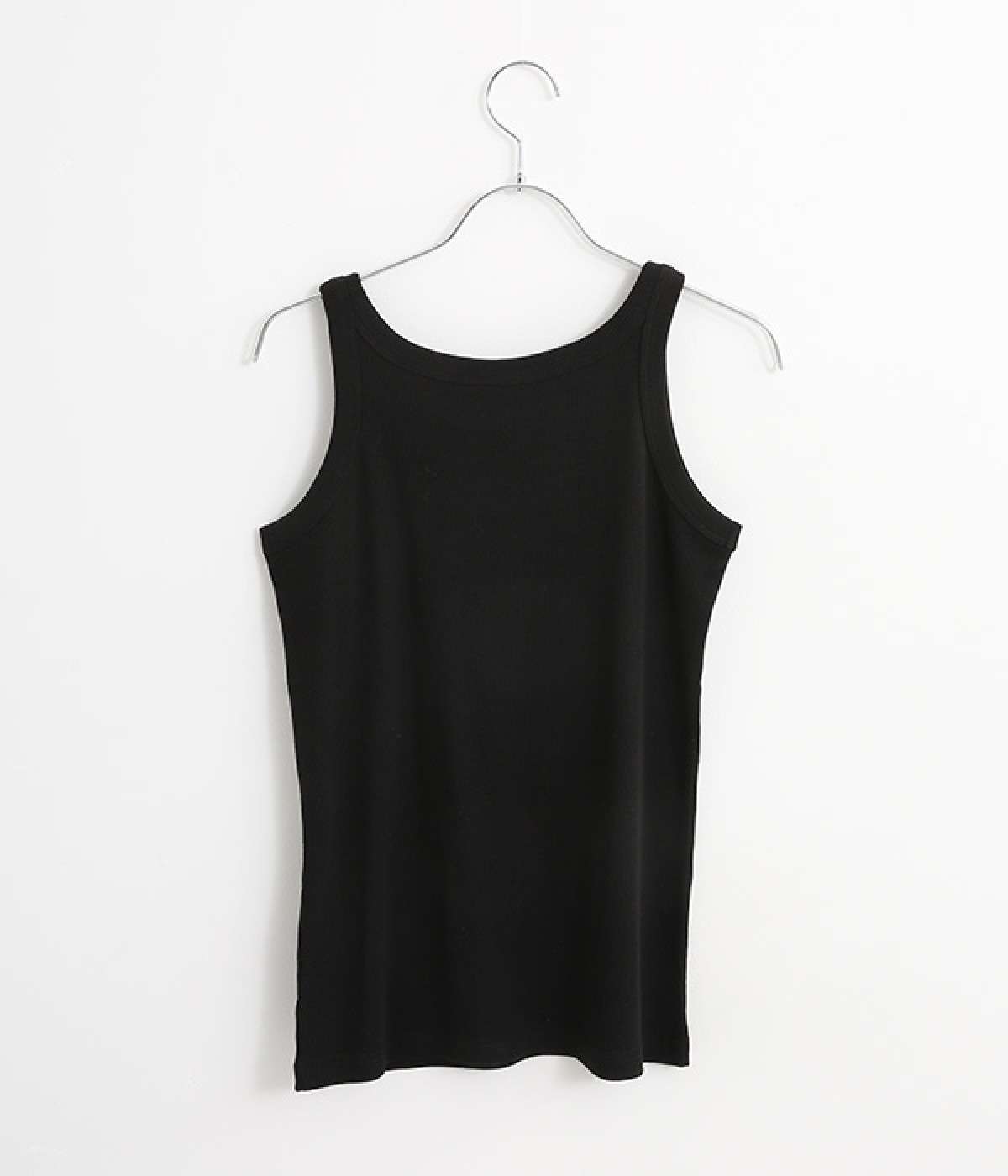 ほどよい厚みの細畝のリブカットソー生地は、ストレッチが効いていて着心地も抜群。素肌に心地よいインナーアイテムです。首元が詰まっているタイプのタンクトップは胸元カバーができ、すっきりと見せてくれます。大きすぎず小さすぎないジャストなサイズにベーシックなカラーで季節を問わず使える一枚です。