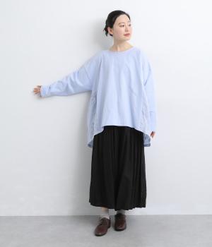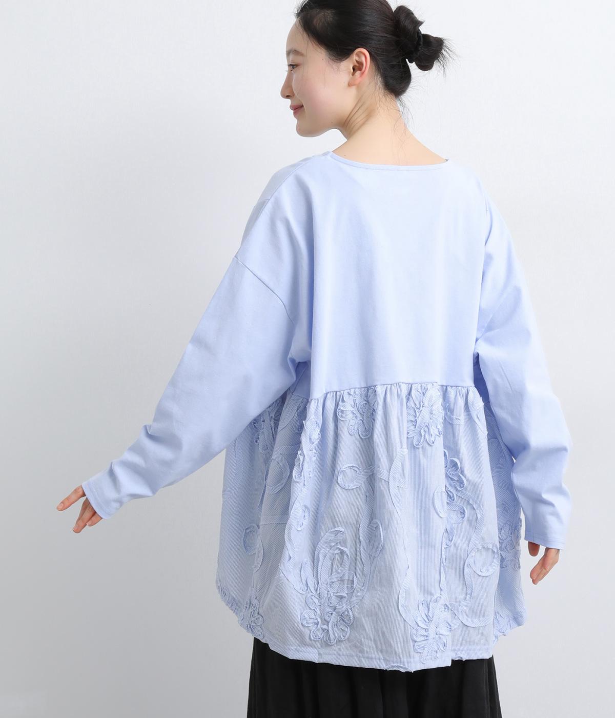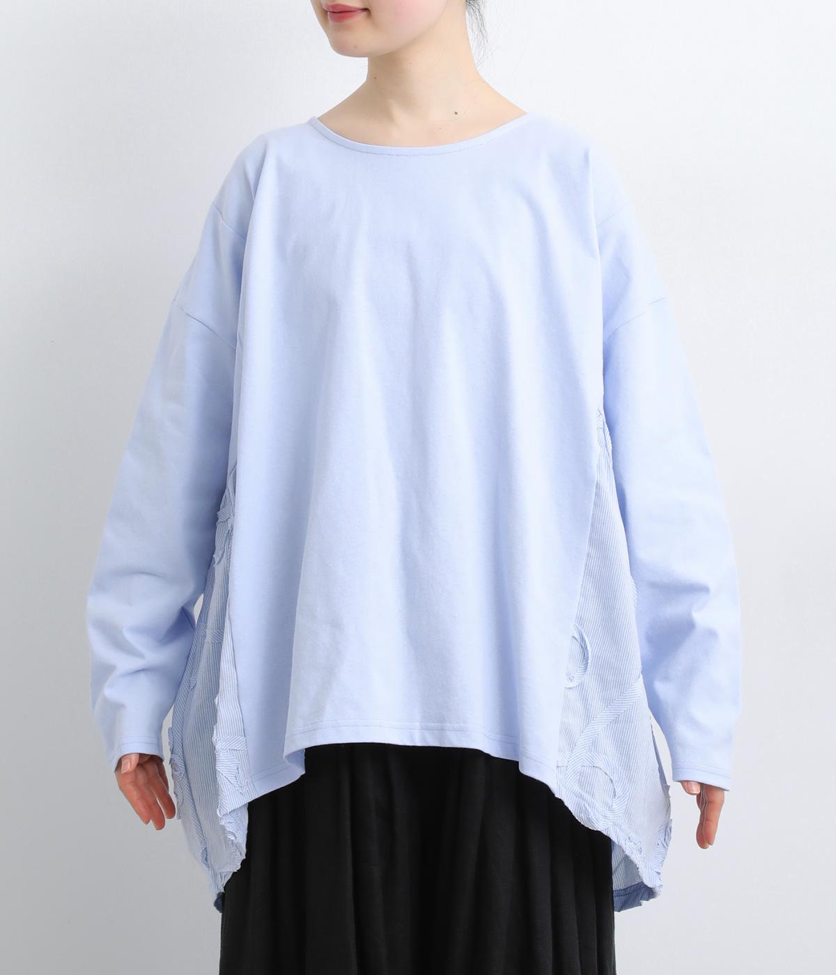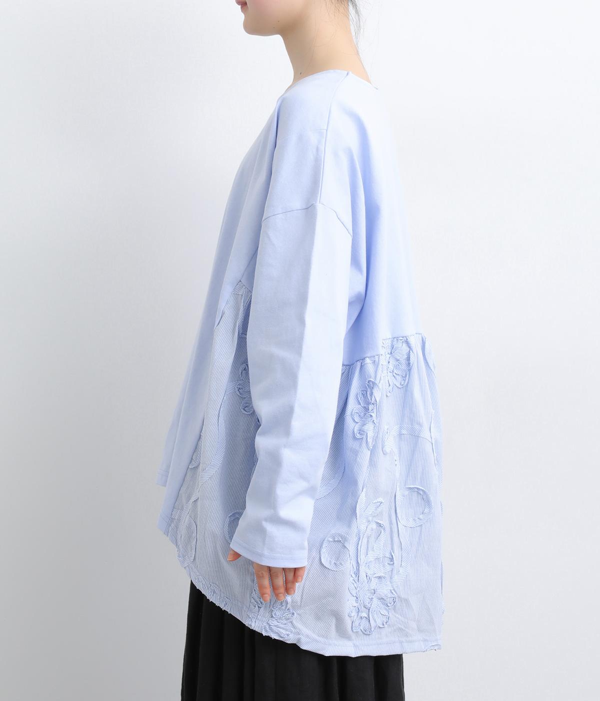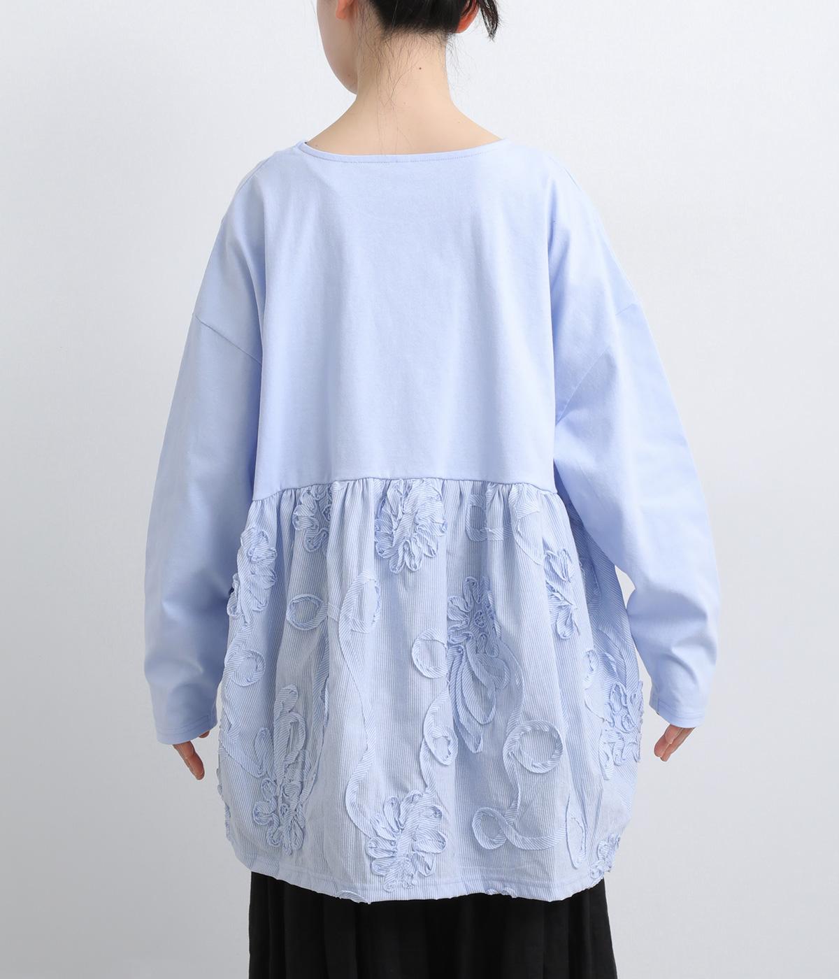 カジュアルスタイルに欠かせないカットソーに花モチーフの柄生地を配して着映え力を高めました。同色系でまとめているので着こなしやすく、適度なゆとりで着心地もリラクシー。裾は前後差をつけ、シルエットに動きをプラス。