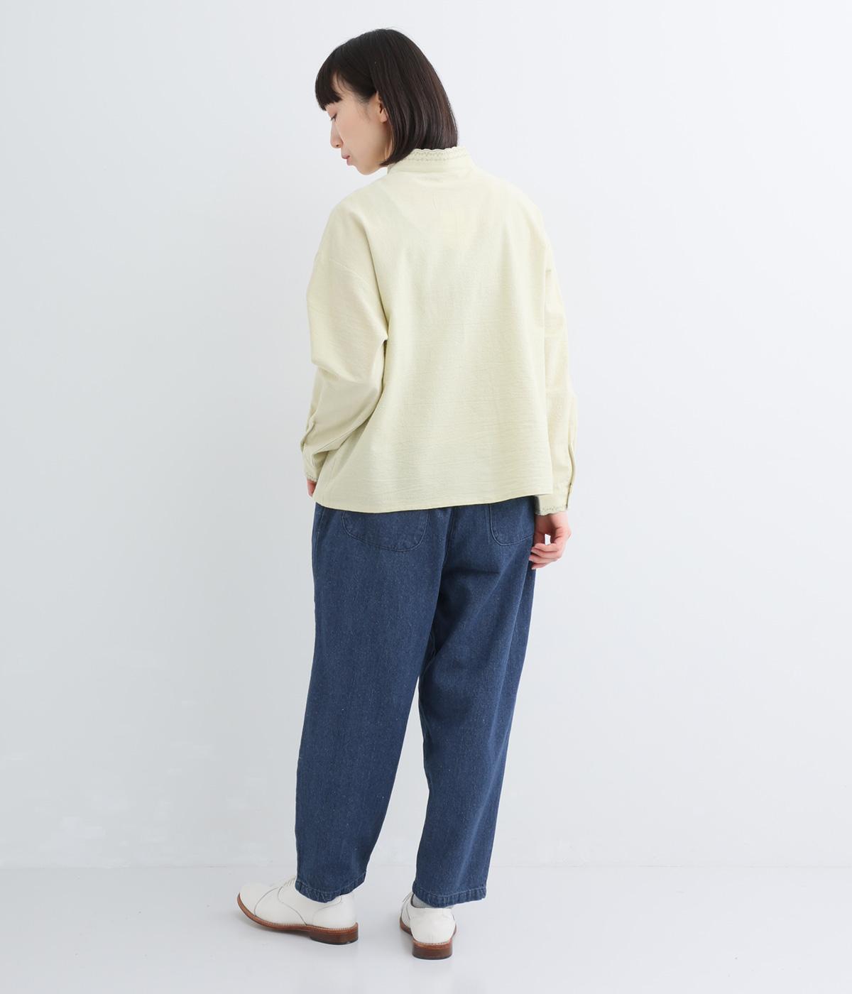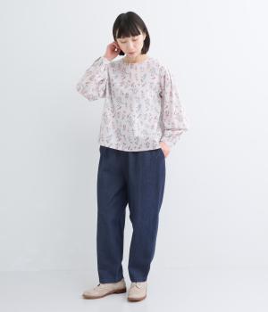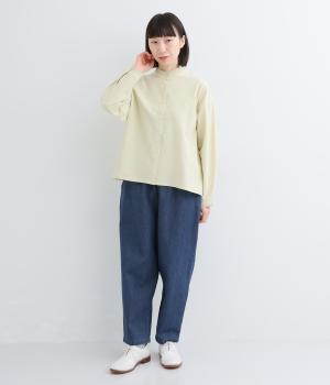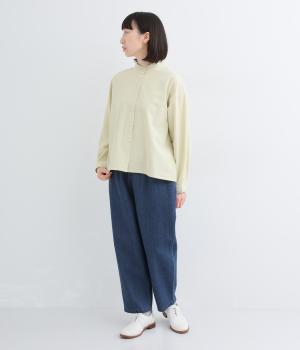 タフなデニムにリネンの清涼感をミックスし、ネップのあるナチュラルな表情に仕上げました。着るほどに体になじみ、柔らかく変化していく天然素材ならではの変化を楽しめる素材です。
