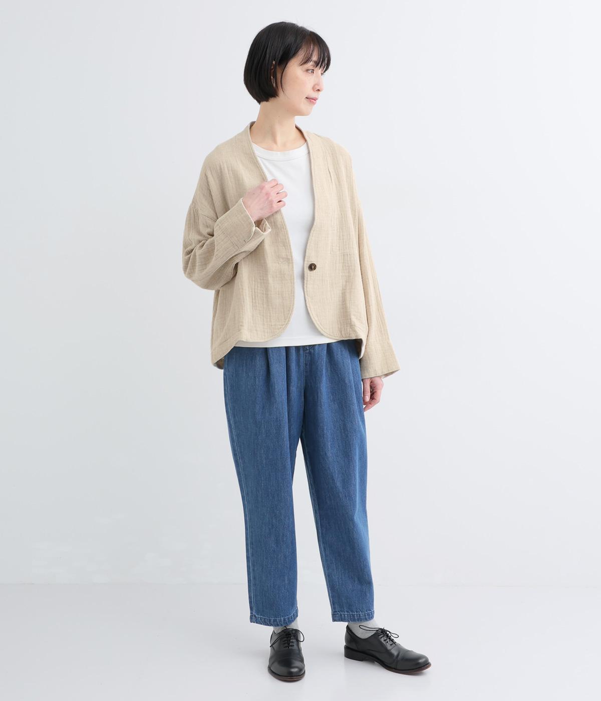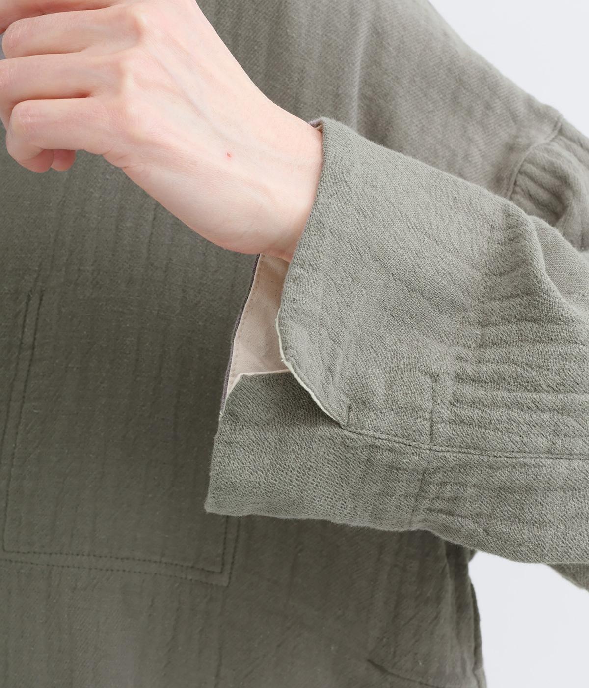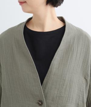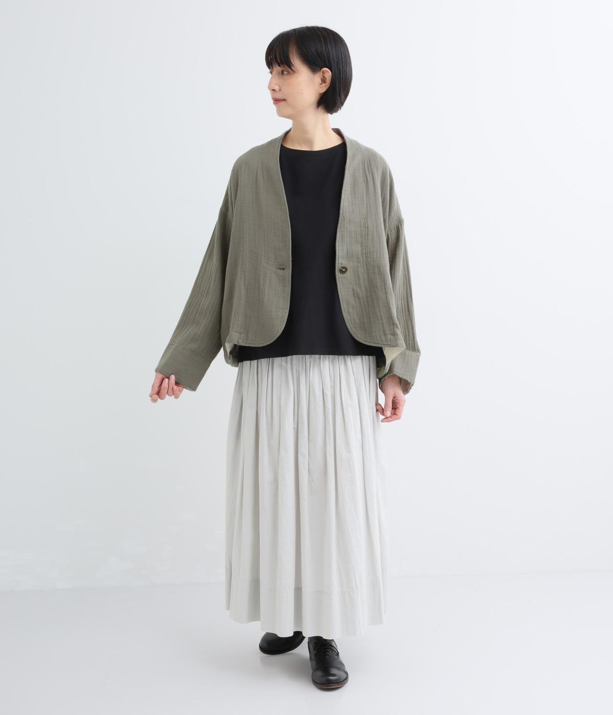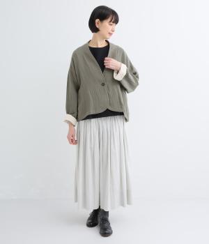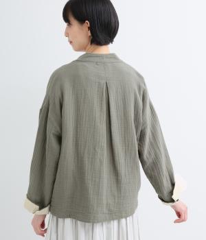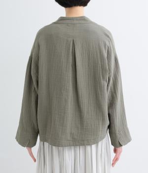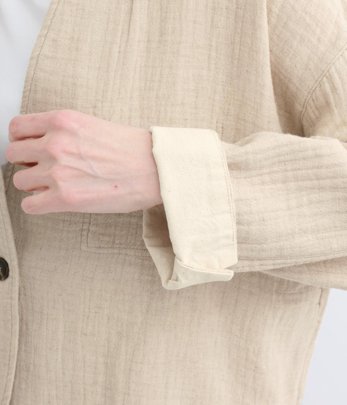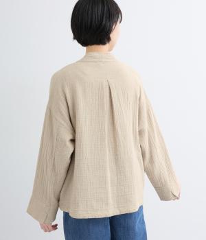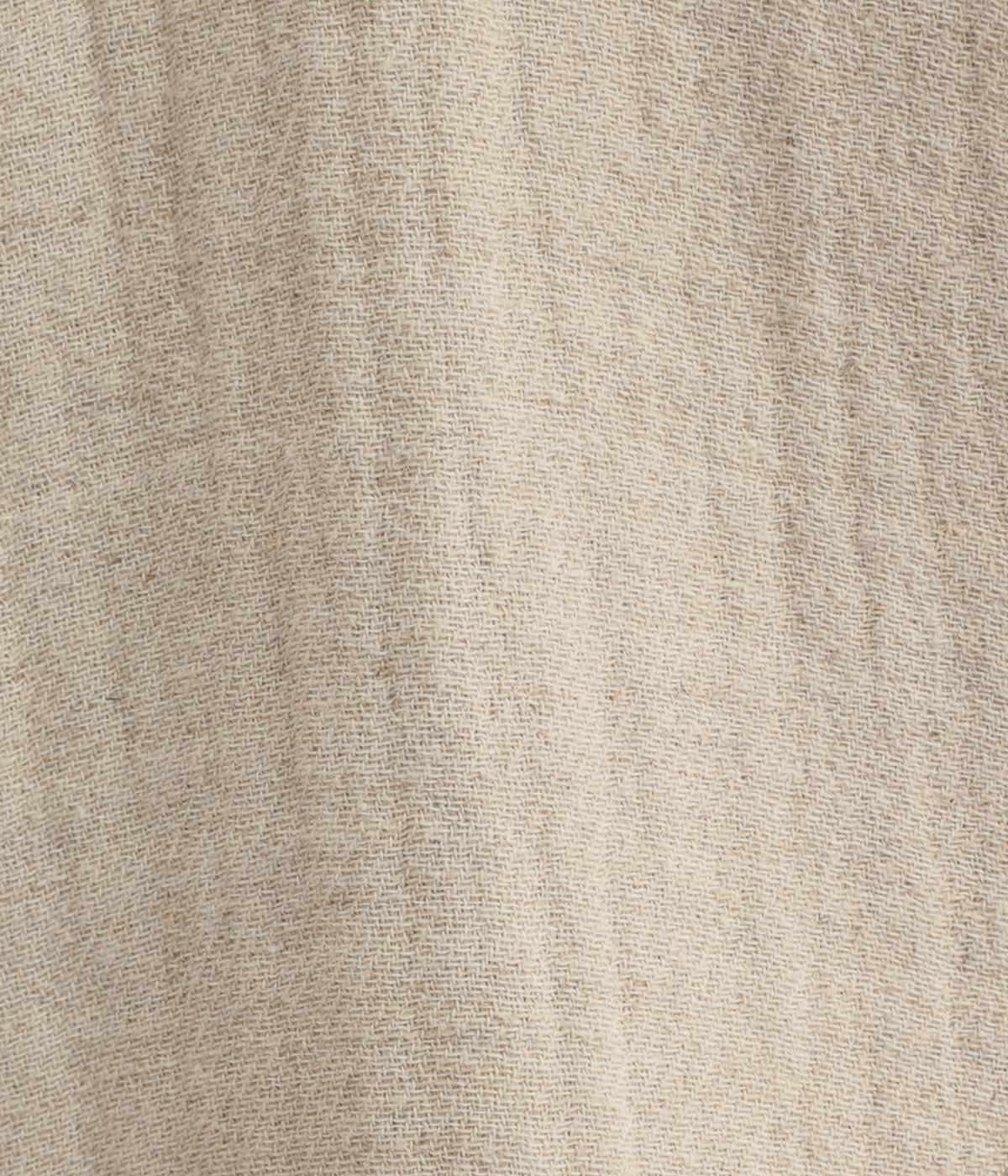 ナチュラルで豊かな表情のコットンリネンのガーゼ生地。ふんわりと空気を纏うような心地よさです。ナチュラルなシワ感で、シワを気にせず着られるのもうれしいポイントです。