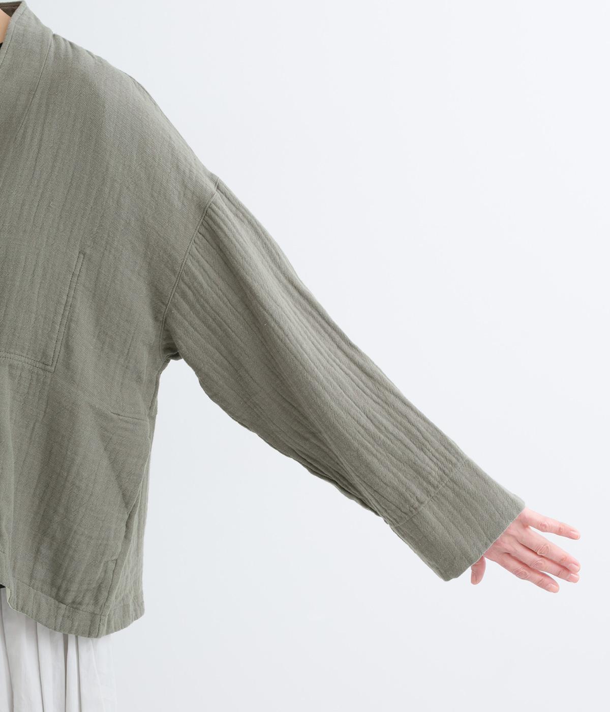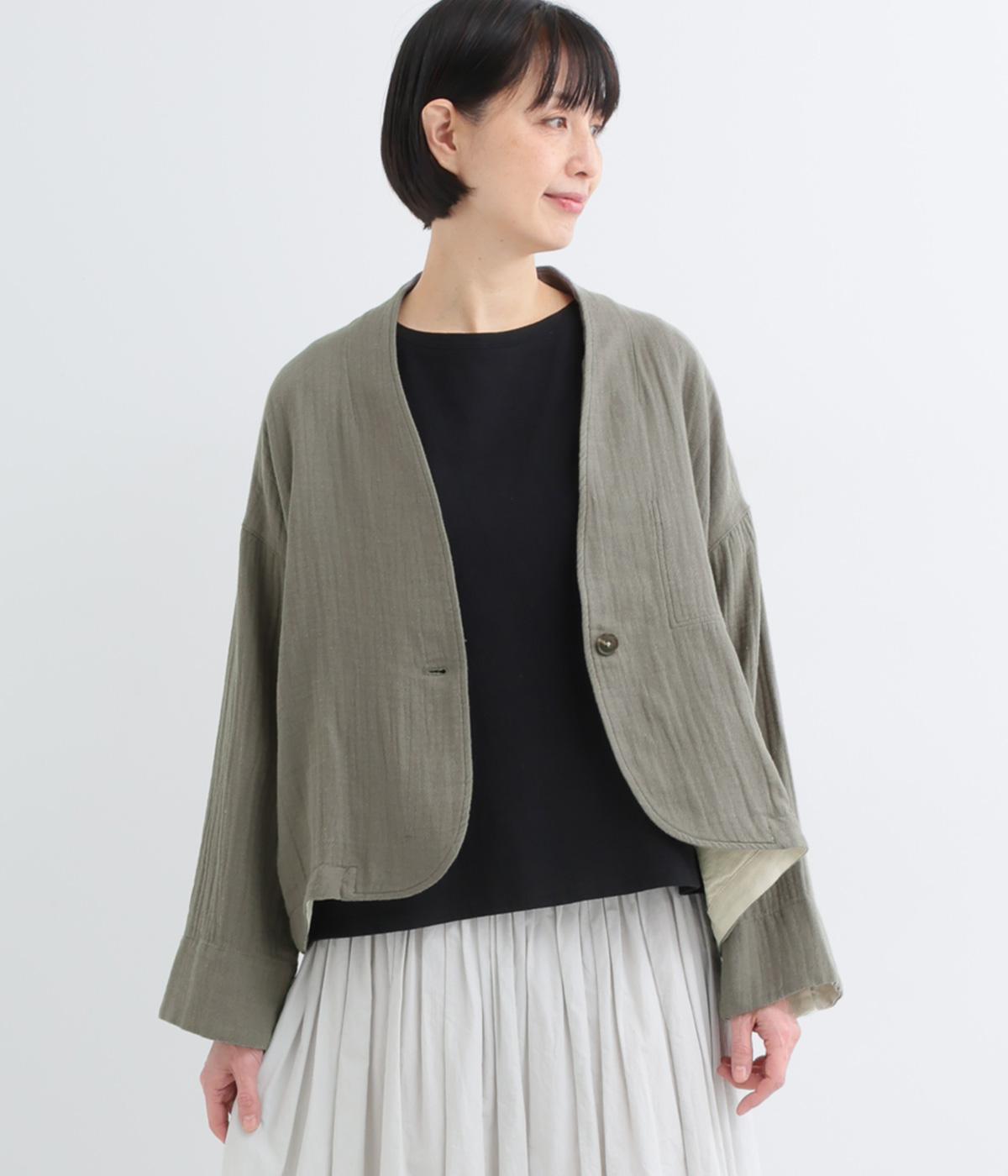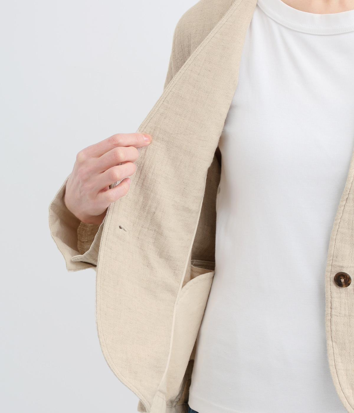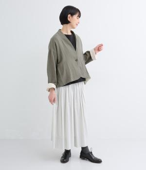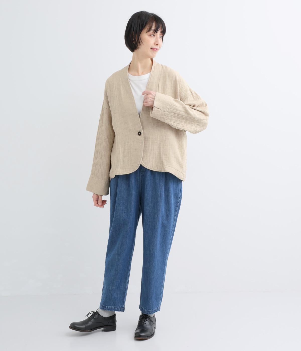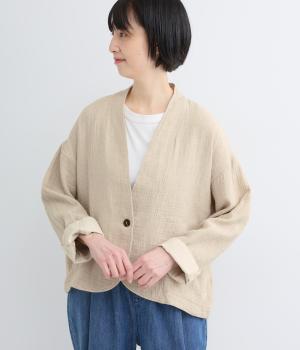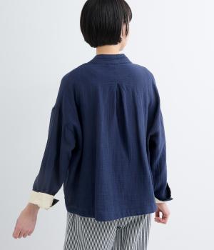ナチュラルで豊かな表情のコットンリネンのガーゼ生地。ふんわりと空気を纏うような心地よさです。ナチュラルなシワ感で、シワを気にせず着られるのもうれしいポイントです。