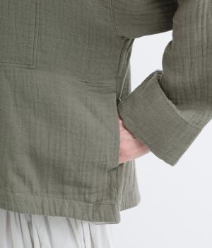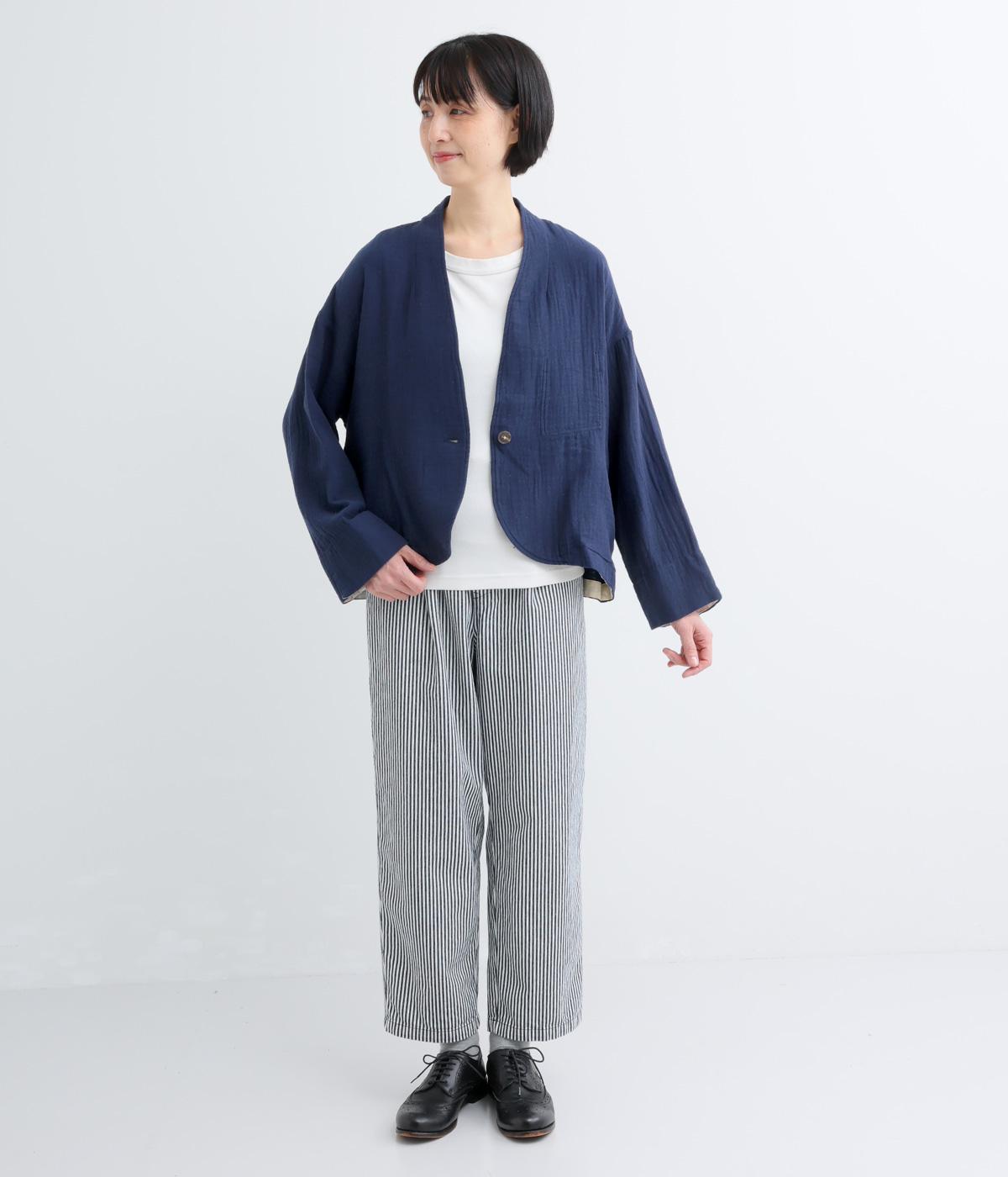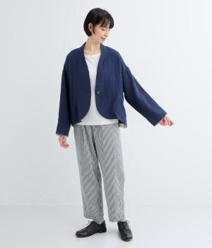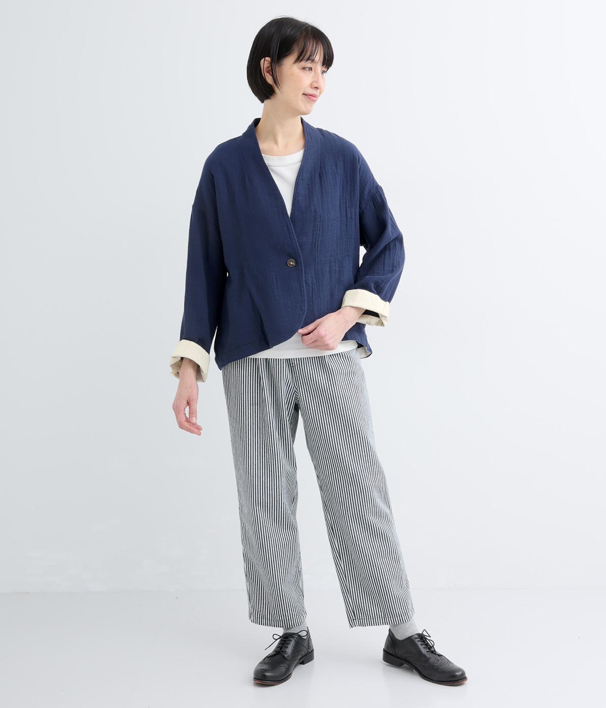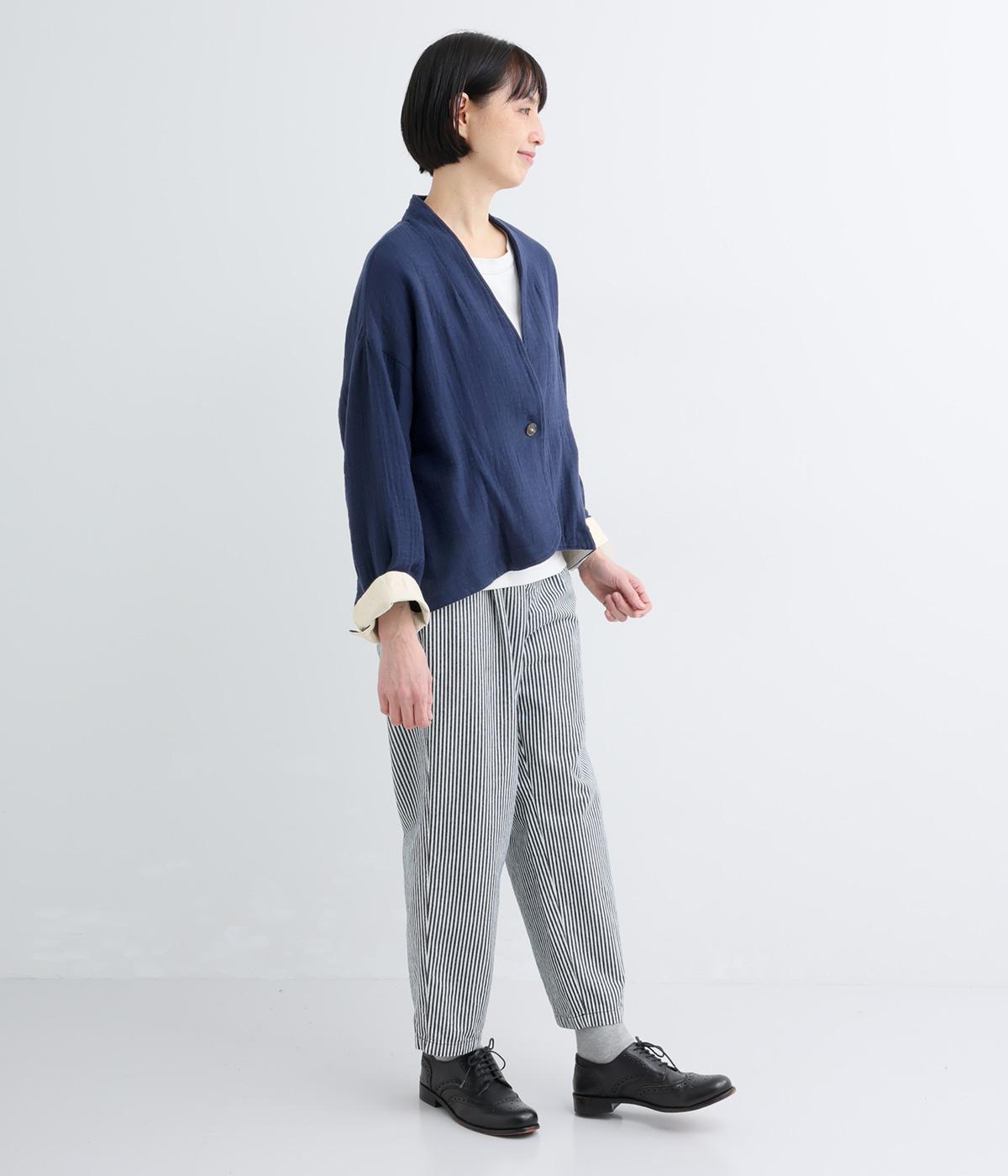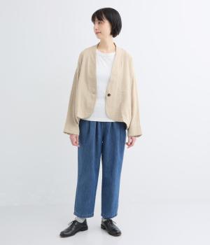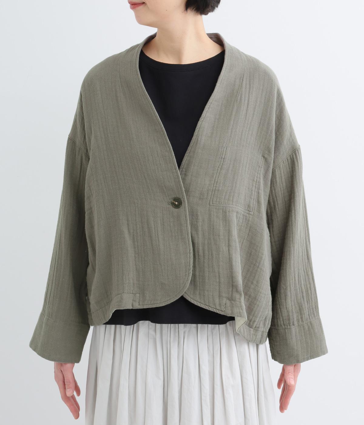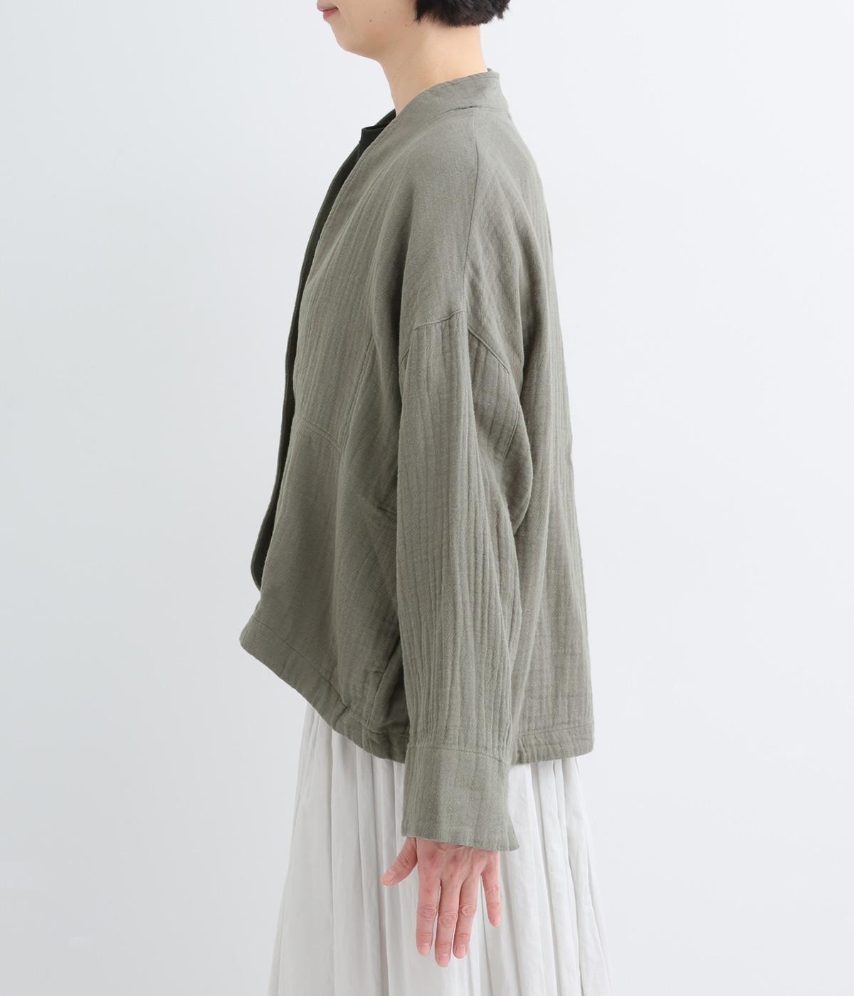 ナチュラルで豊かな表情のコットンリネンのガーゼ生地。ふんわりと空気を纏うような心地よさです。ナチュラルなシワ感で、シワを気にせず着られるのもうれしいポイントです。