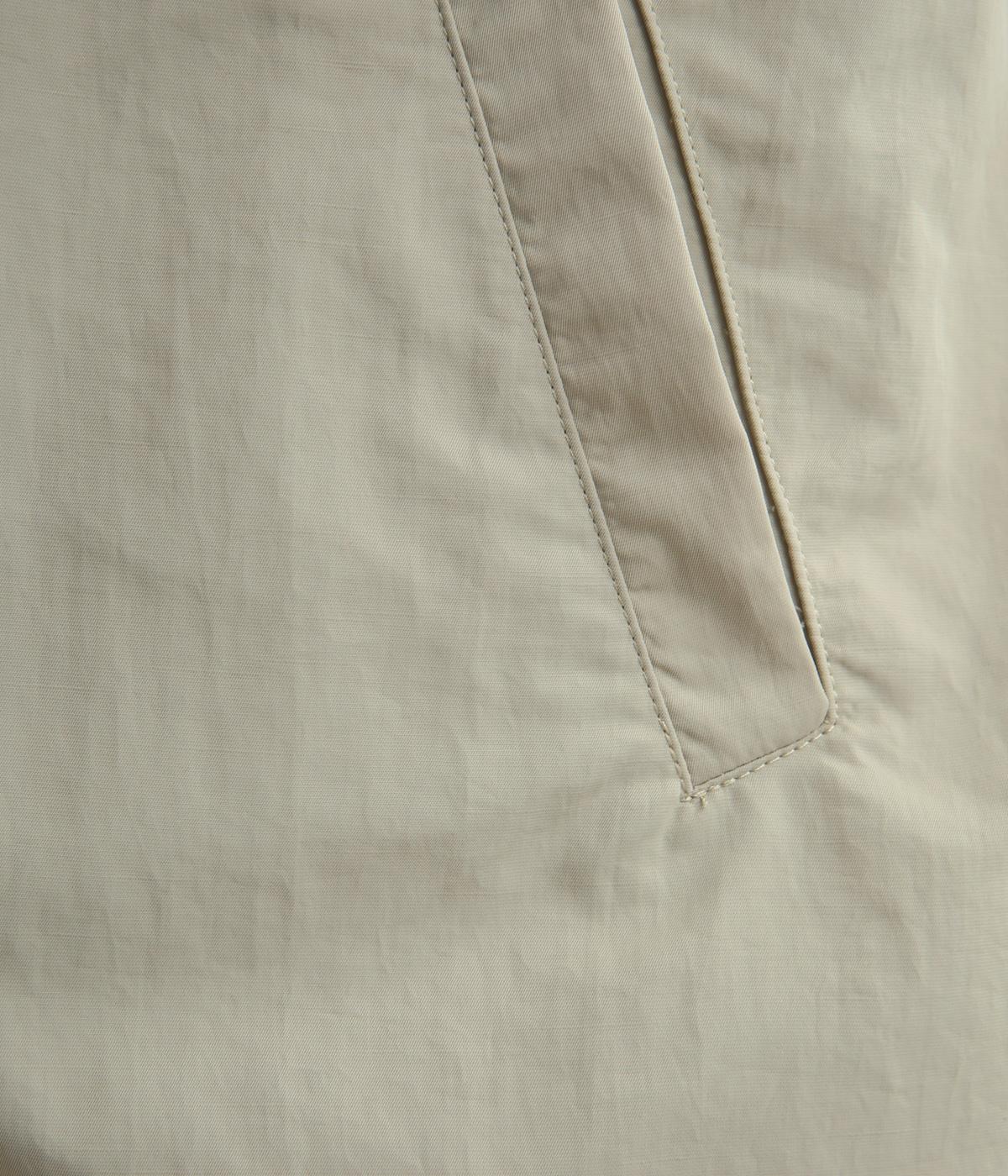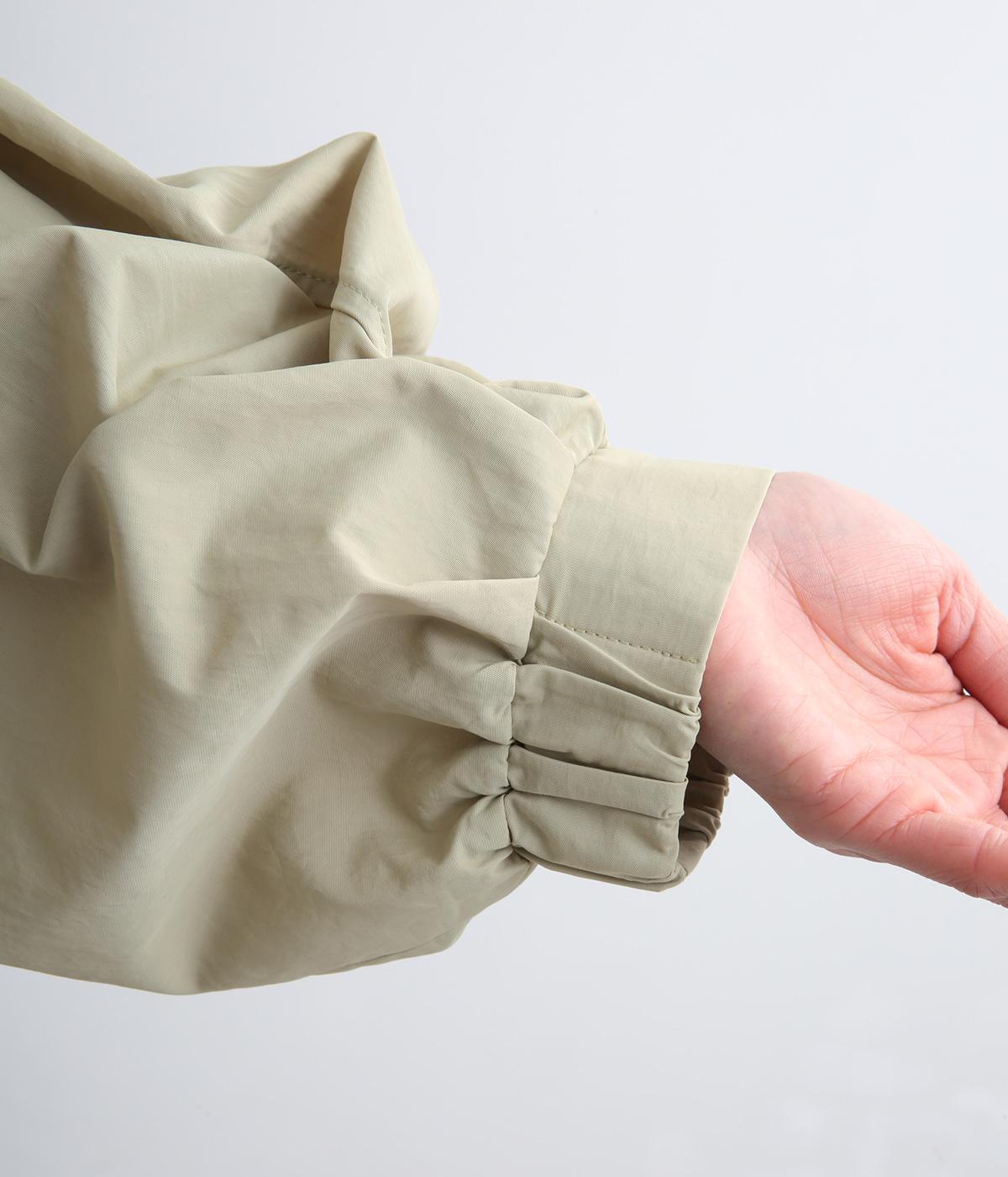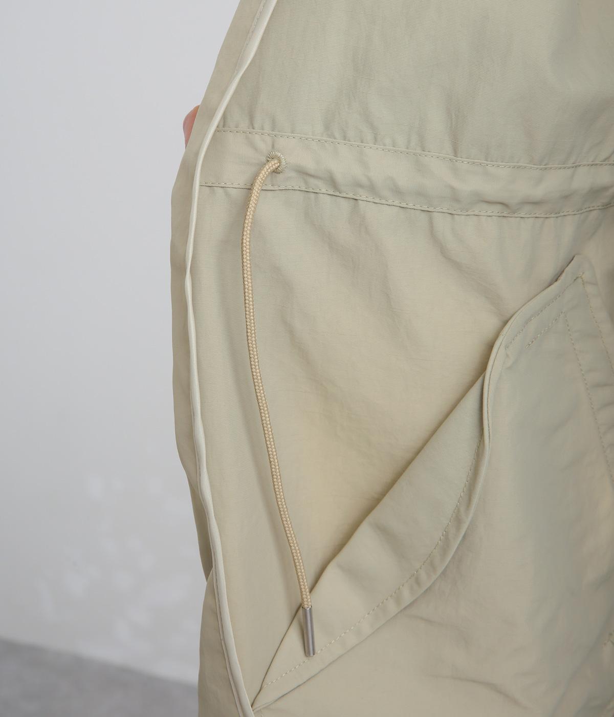 シャカシャカとした小気味いい肌触りやセミマットな質感が特徴的なナイロン生地を使用。タフでデイリー使いしやすく、軽量仕上げで羽織りやすい作りです。