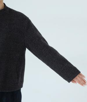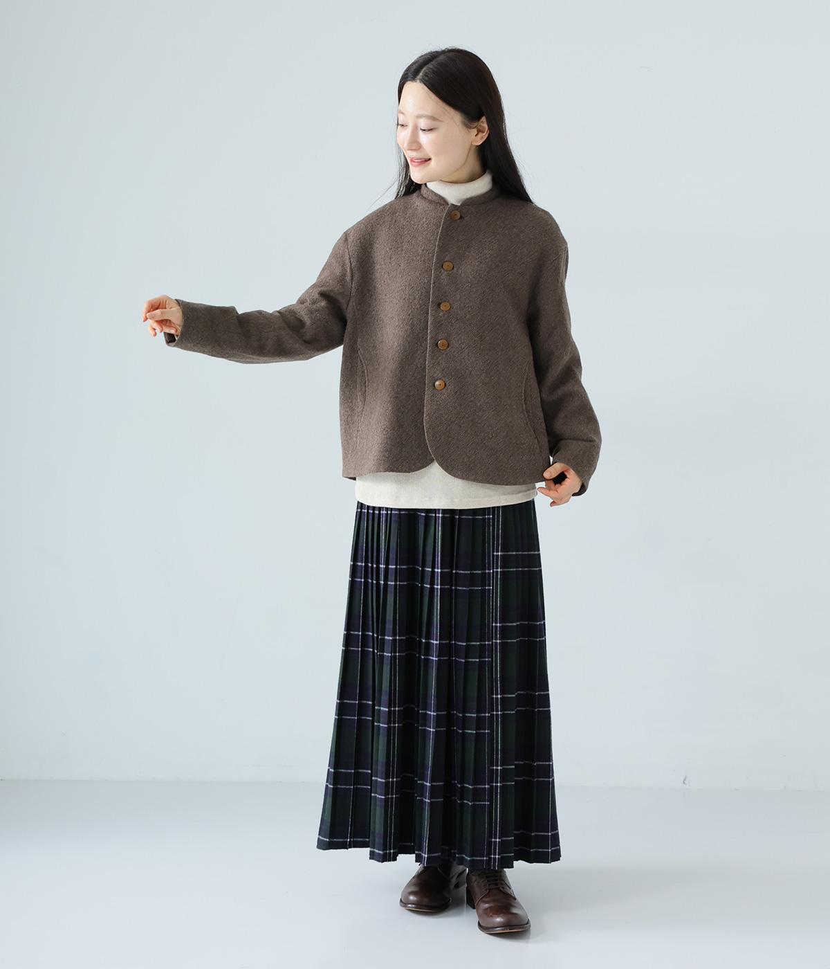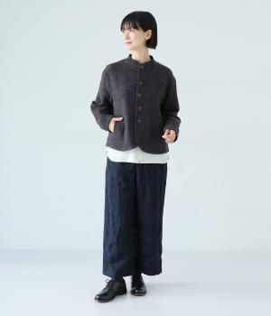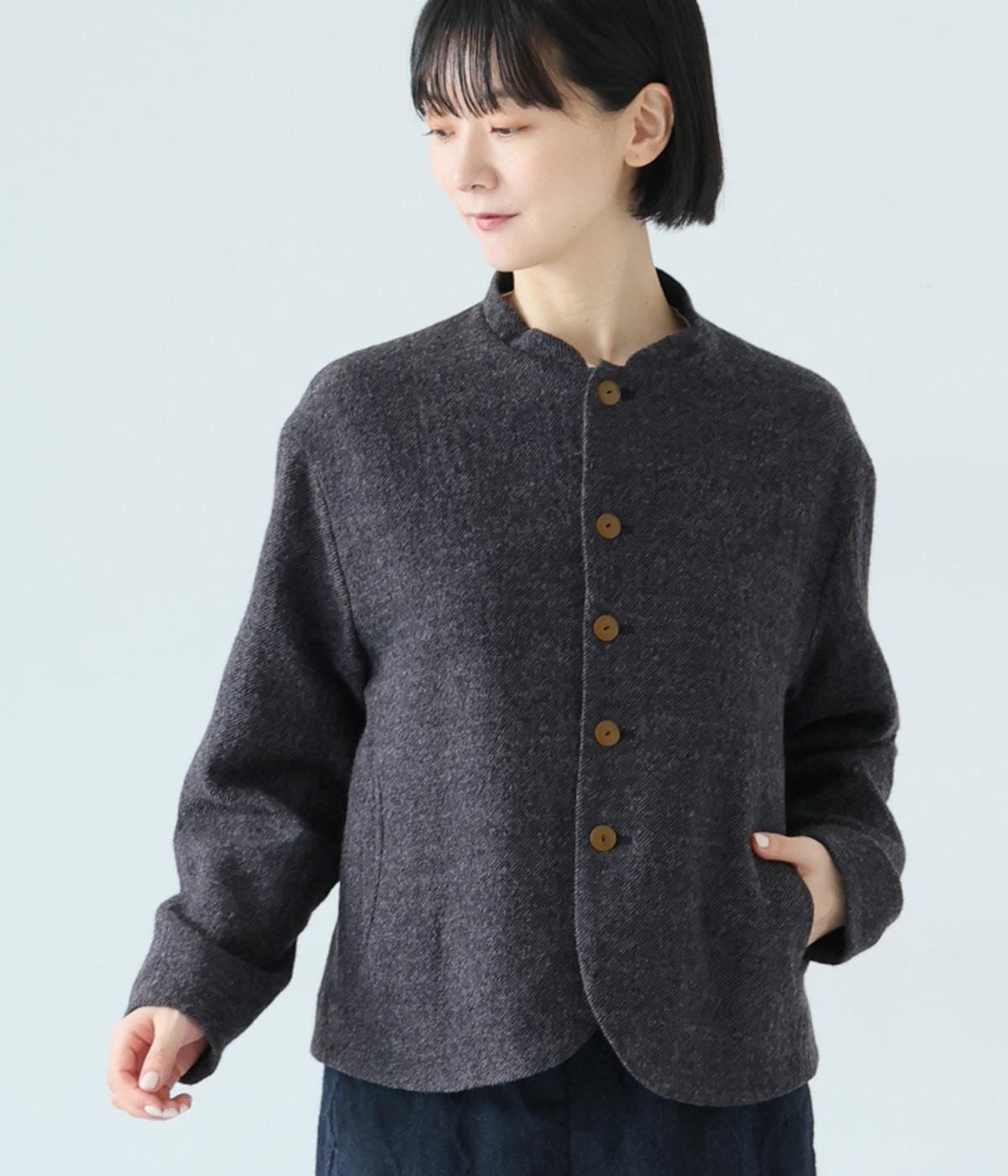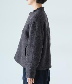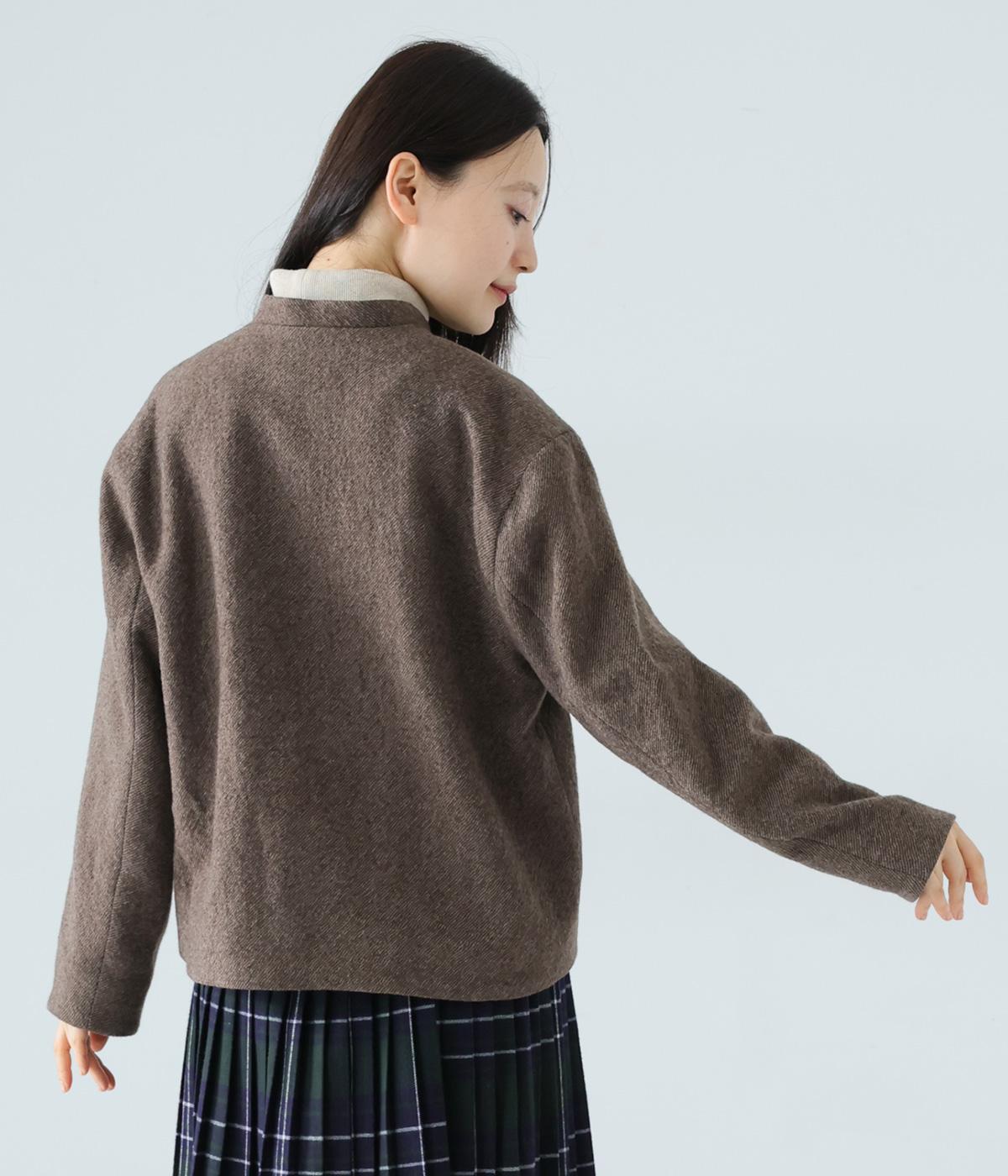控えめに立ち上げた襟元がクラシカルなムードを漂わせるブルゾン。全体にほどよくゆとりを持たせ、インナーがもたつきにくい羽織りやすいサイズ感に仕上げました。曲線を描くヘムラインは女性らしいやわらかな表情を添えてくれます。
