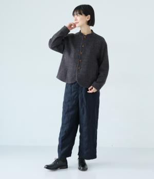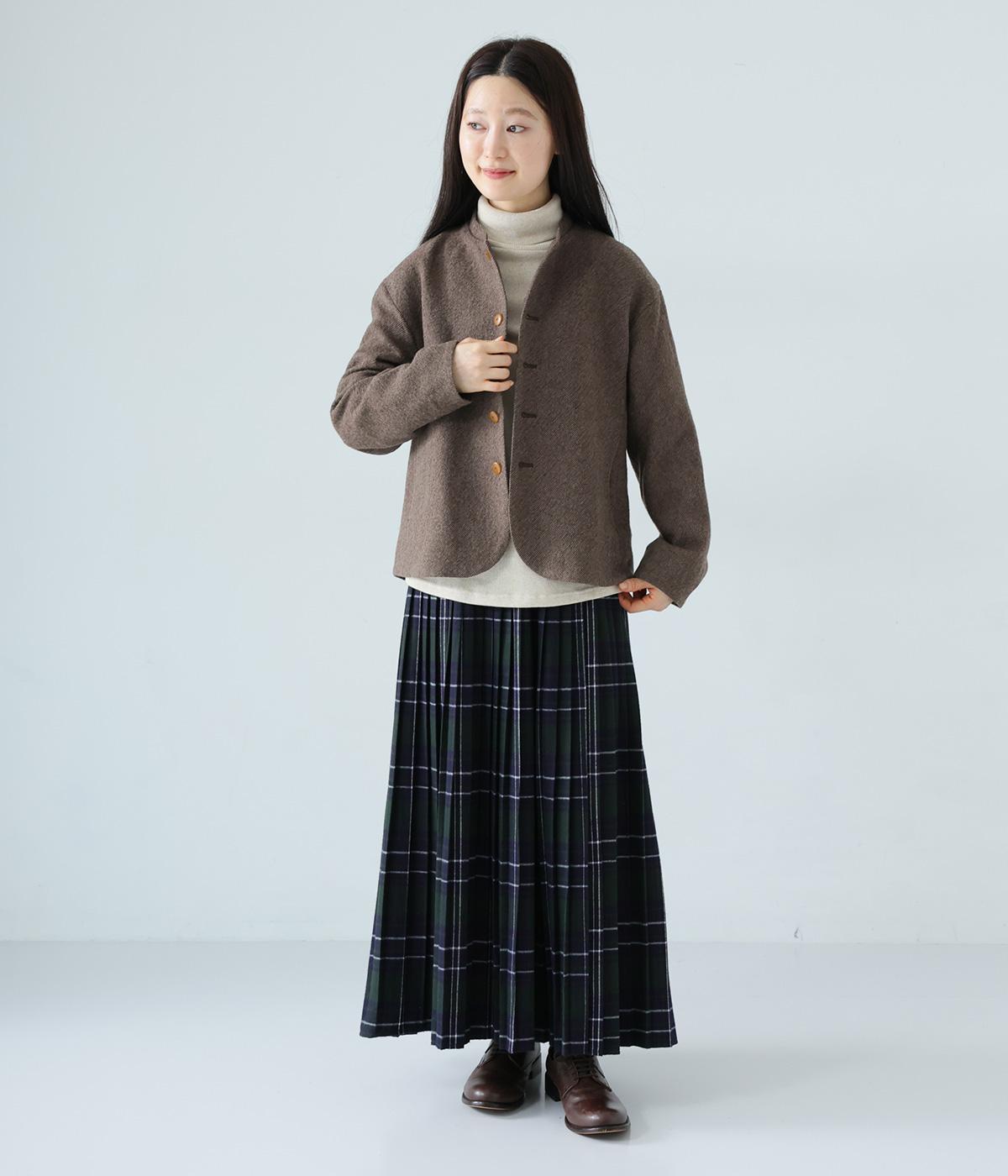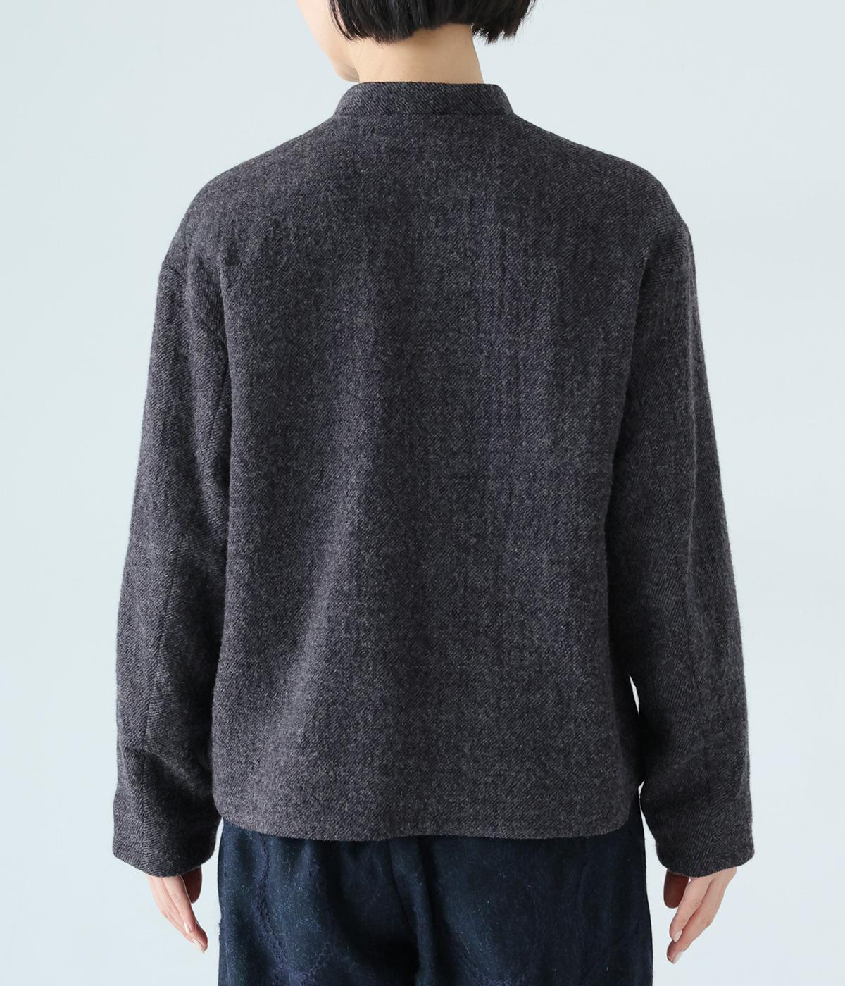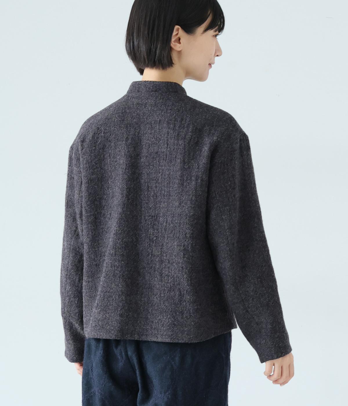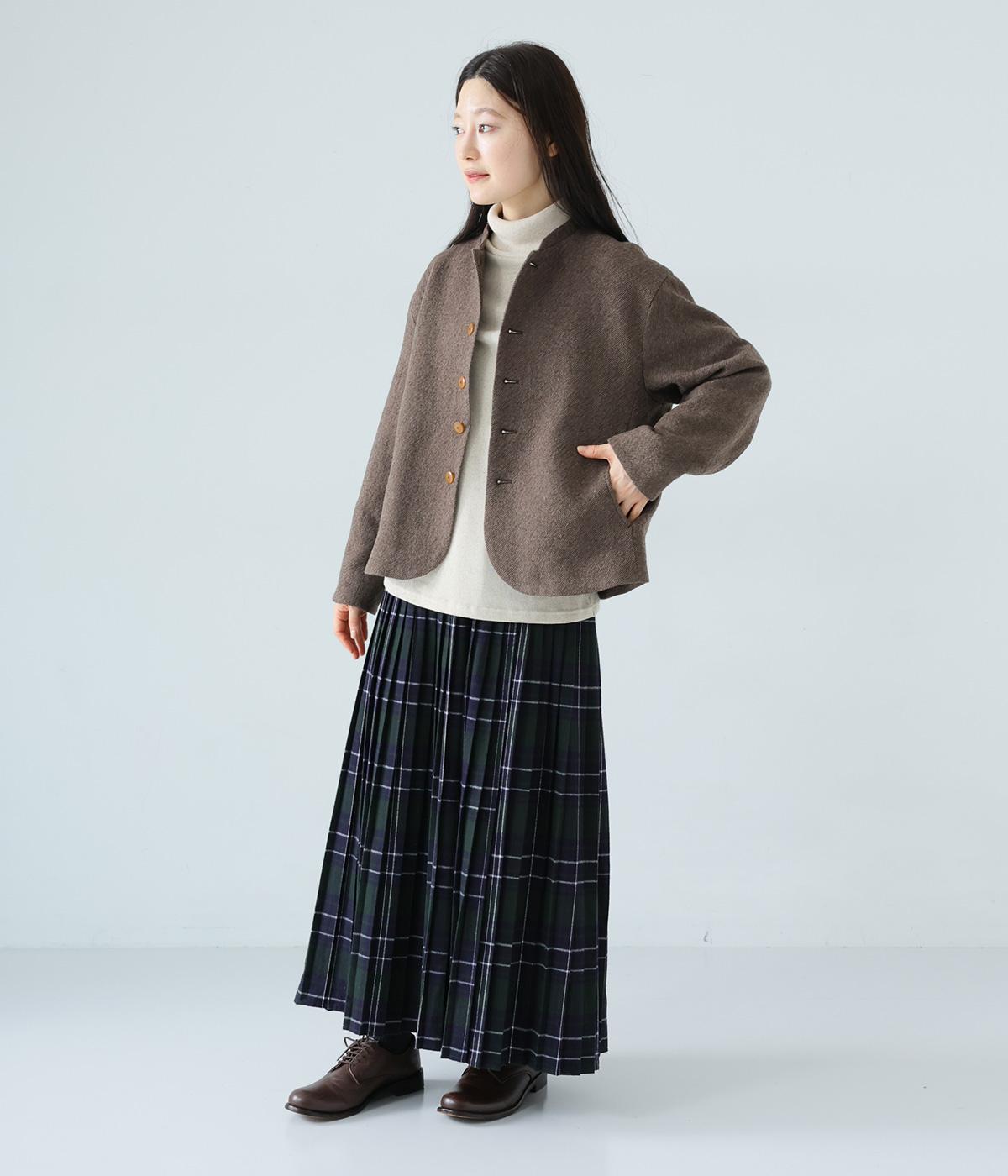 ウールを用いて適度な厚みとあたたかみがありつつ軽やかな風合の綾織り生地に仕立てました。斜めの細かな畝が見える起毛がかった上品な表面が魅力です。さらりとした滑りのよい裏地つき。