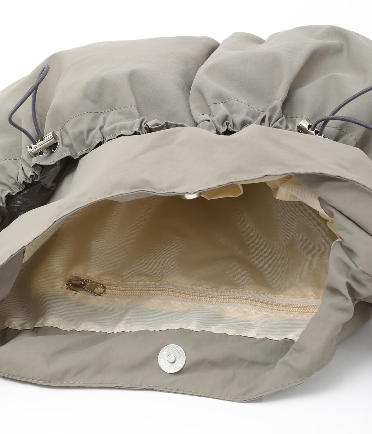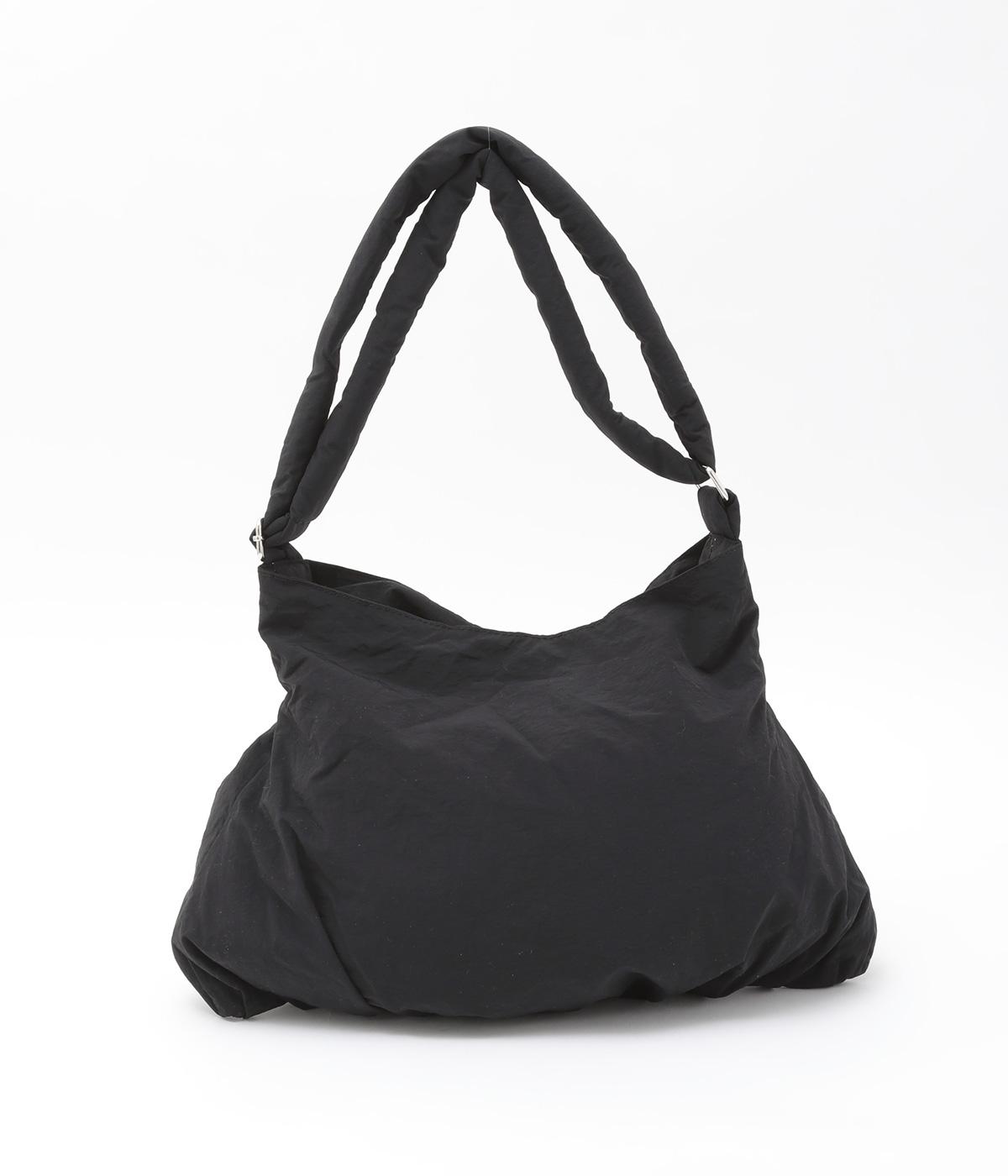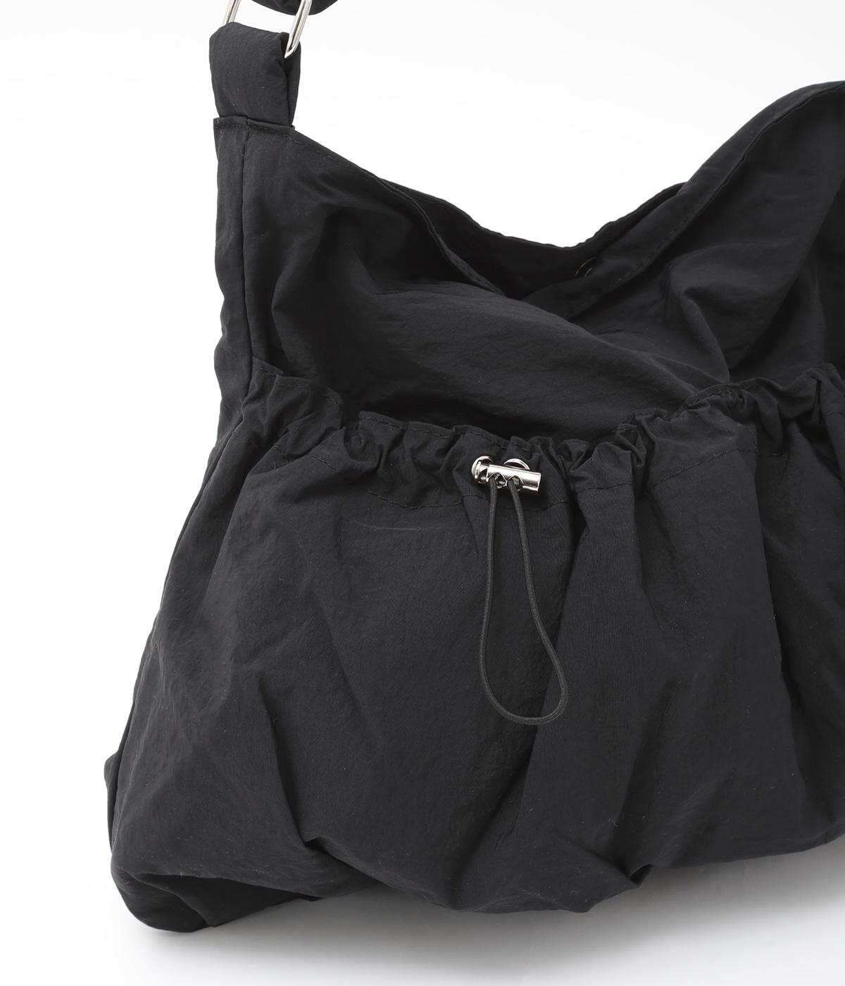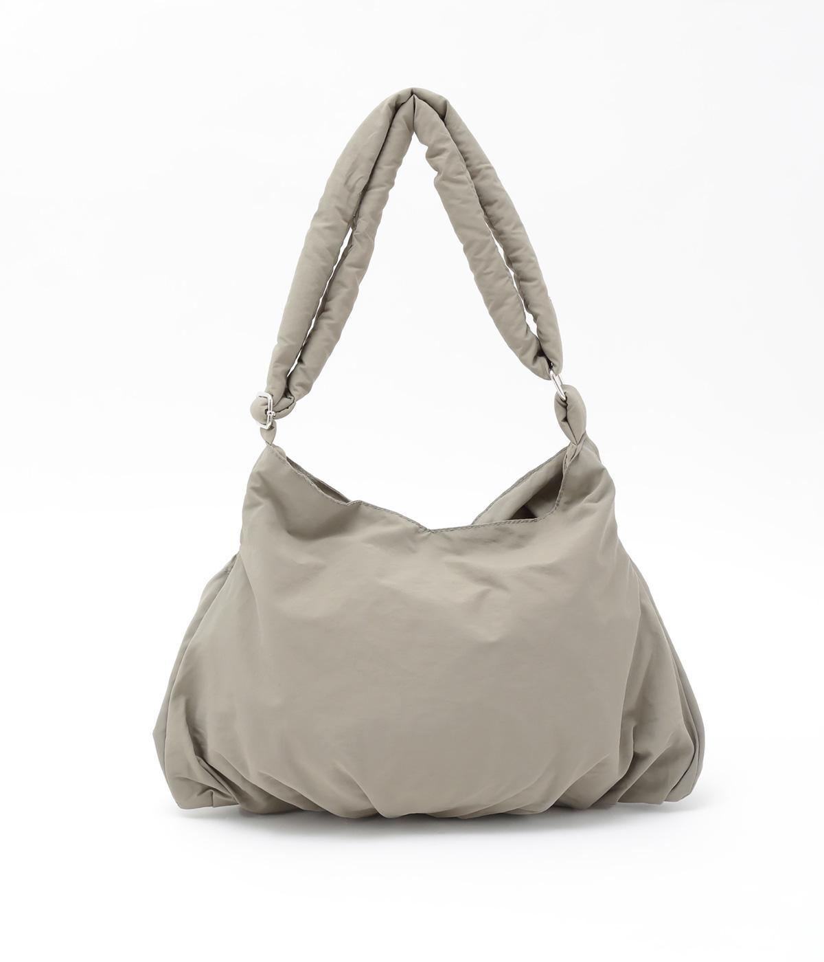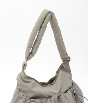 ギャザーを寄せた丸みのあるフォルムが、やさしい印象を与えるショルダーバッグです。ゴム紐でくしゅっと仕上げた外ポケットが、立体感のあるアクセントに。厚みがあるふかふかの持ち手は、肩への負担をやわらげます。内側にも2つのポケットを備え、収納力もばつぐんです。