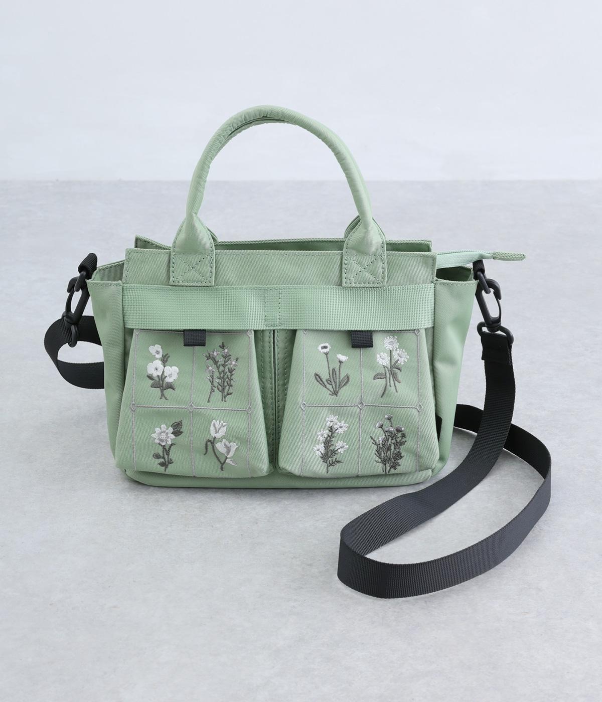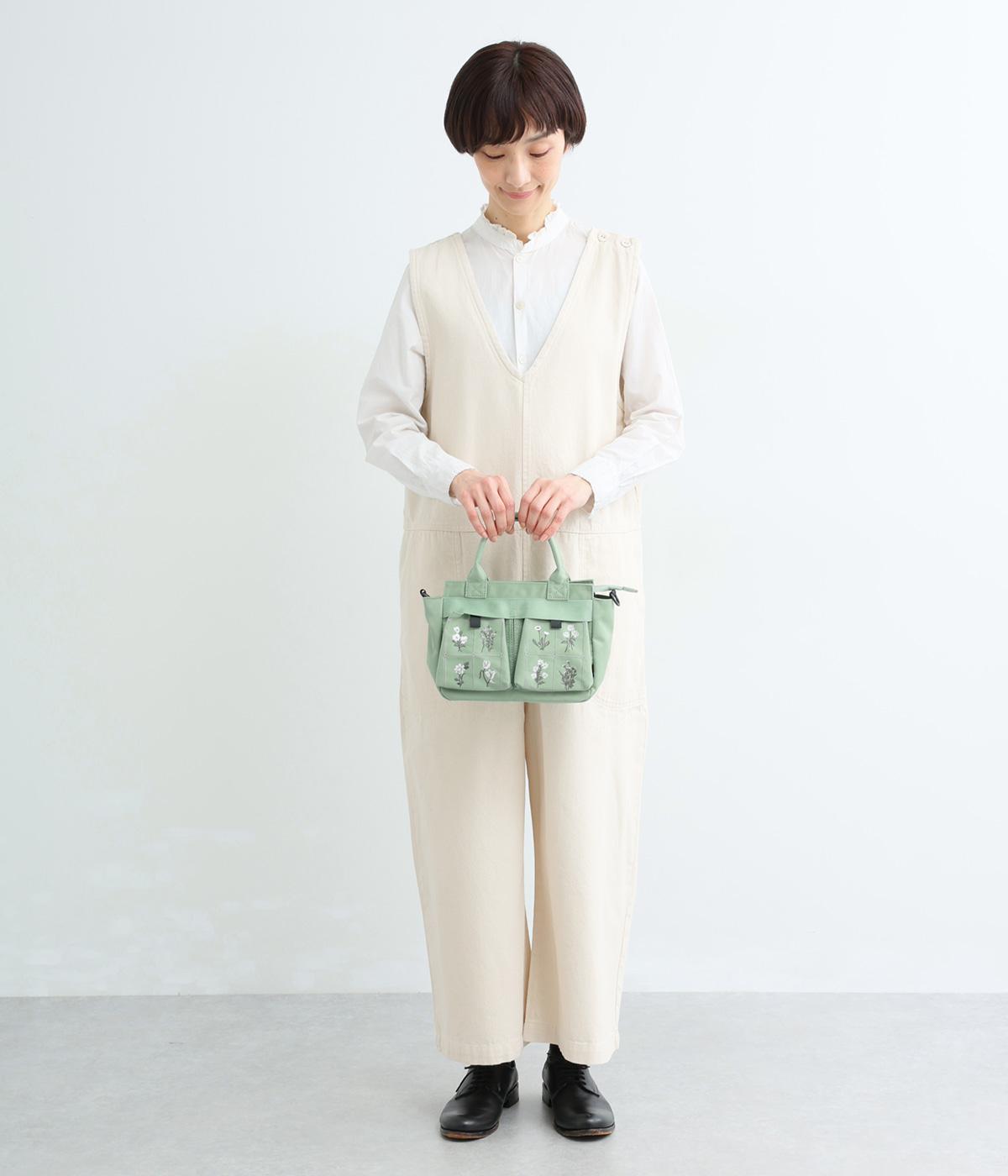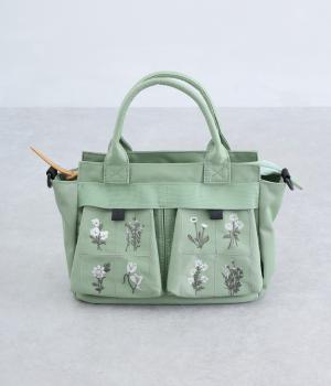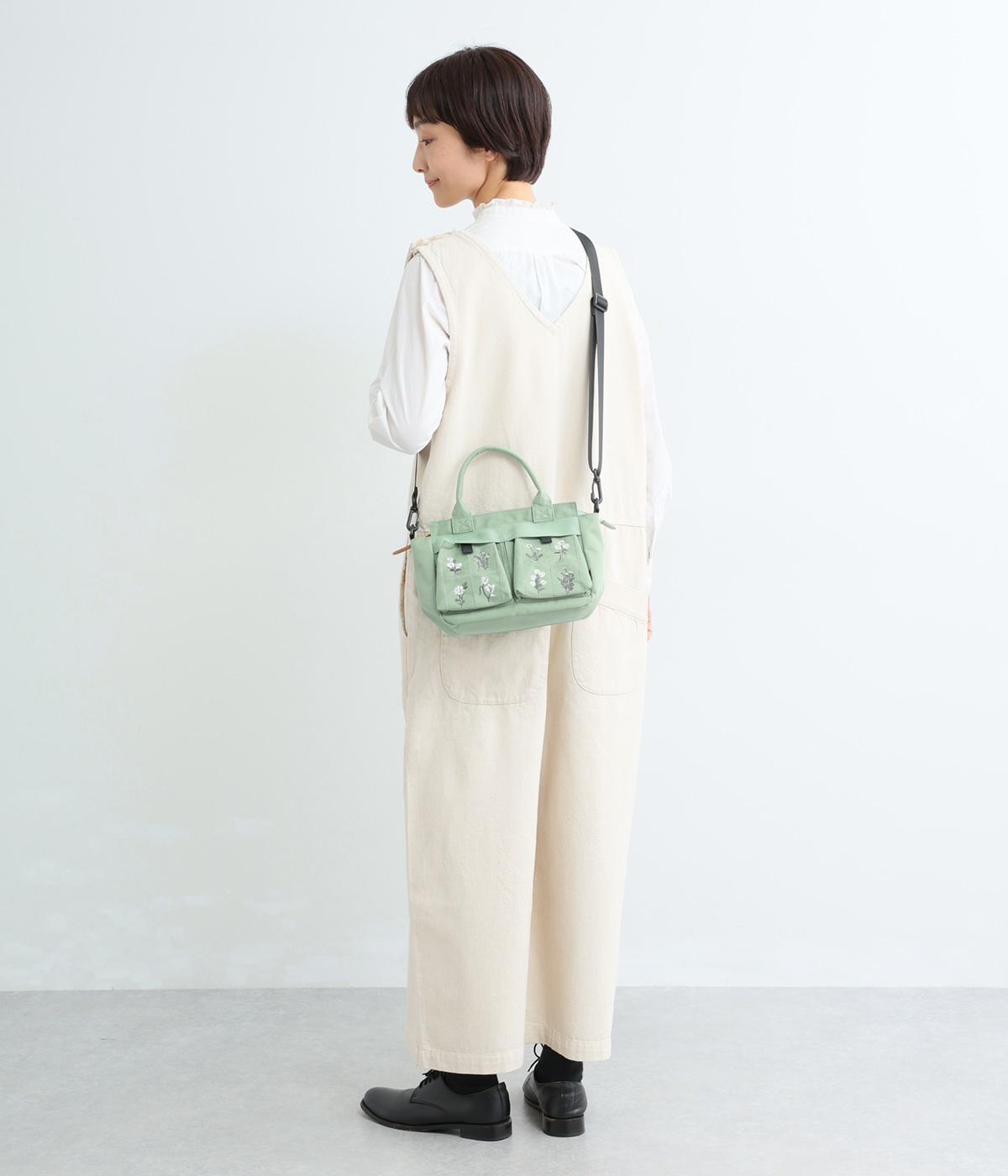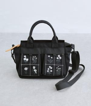 繊細な植物モチーフの刺しゅうが目をひく、上品な佇まいのミニショルダーバッグです。フロントの立体的なダブルポケットは、マチつきで収納力もばつぐん。ハンドとショルダーの2way仕様で、シーンに合わせた使い方がたのしめるのもうれしいポイントです。