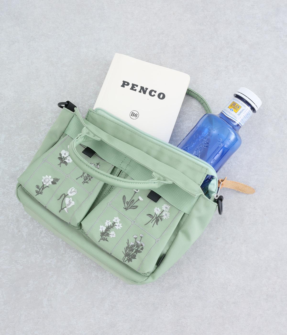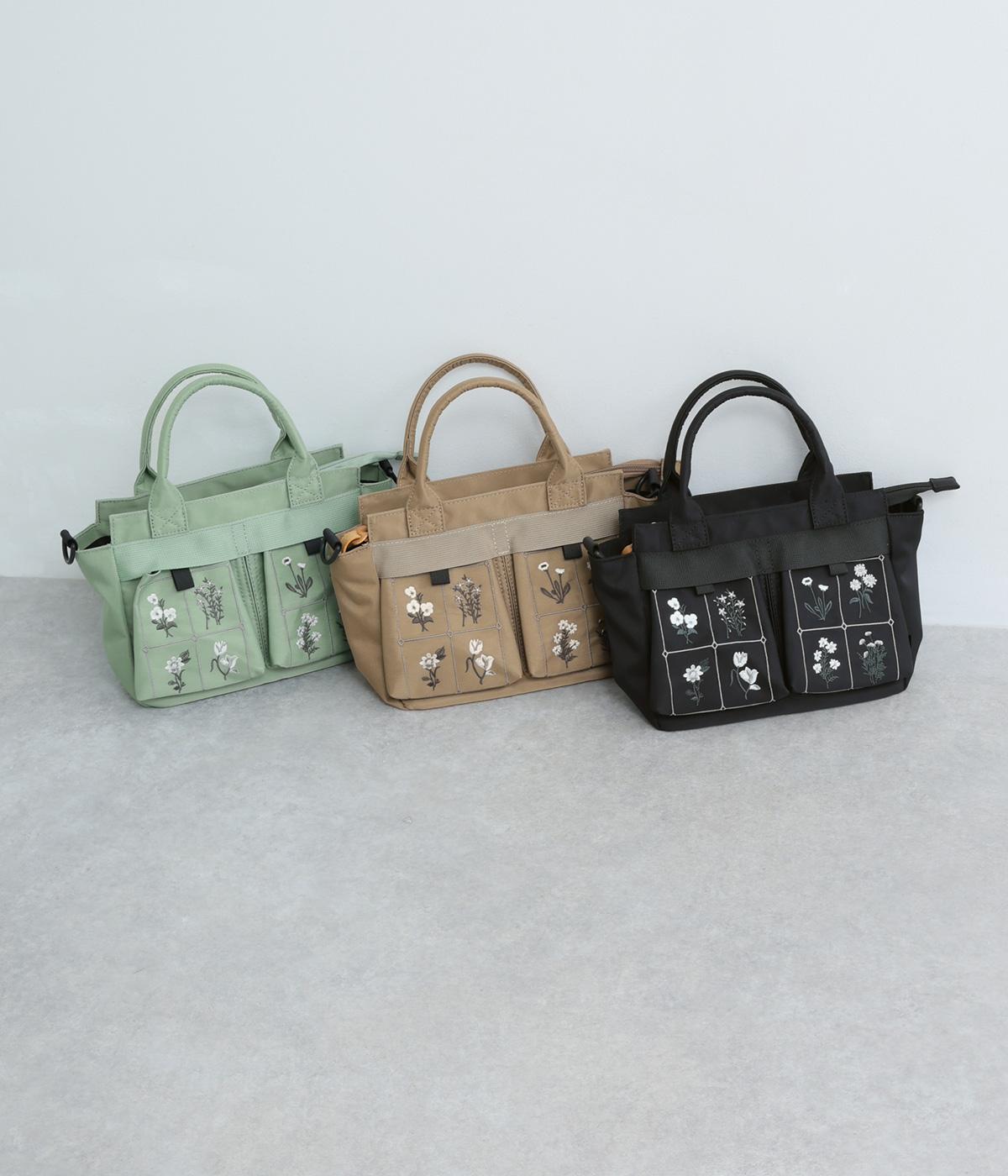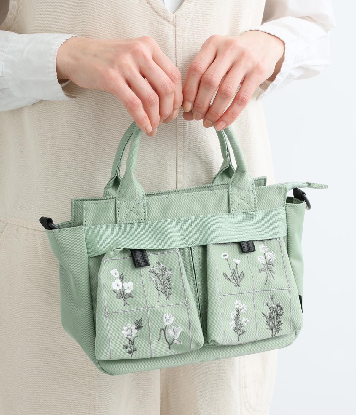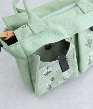 繊細な植物モチーフの刺しゅうが目をひく、上品な佇まいのミニショルダーバッグです。フロントの立体的なダブルポケットは、マチつきで収納力もばつぐん。ハンドとショルダーの2way仕様で、シーンに合わせた使い方がたのしめるのもうれしいポイントです。