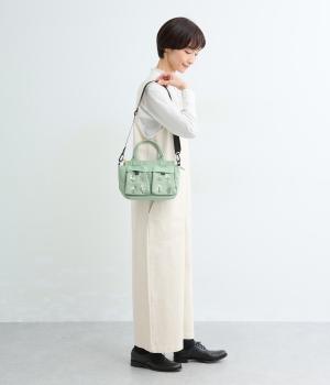 するりとなめらかな手ざわりのナイロン素材。軽やかさと水や汚れに強い丈夫さを兼ね備え、デイリー使いに頼れる仕上がりです。ほのかな光沢感が上品さを添え、カジュアルになりすぎない印象に。