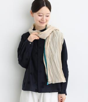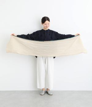 ふんわり軽い薄手のストールです。コーディネートのポイントになるだけでなく、日よけや冷房対策に1つあると便利。首に巻くほか、広げてはおりのようにすることもできます。薄手で軽いので普段使いや旅行まで役立ちます。