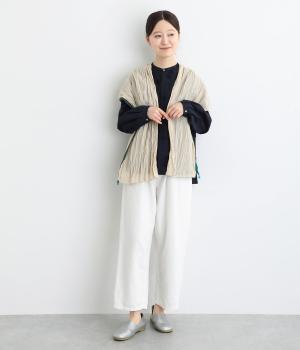 ソフトな肌ざわりのコットンを使用。シワ加工でこなれ感ある風合いになっています。サイドについたニットテープでさりげなくアクセントをプラスしました。
