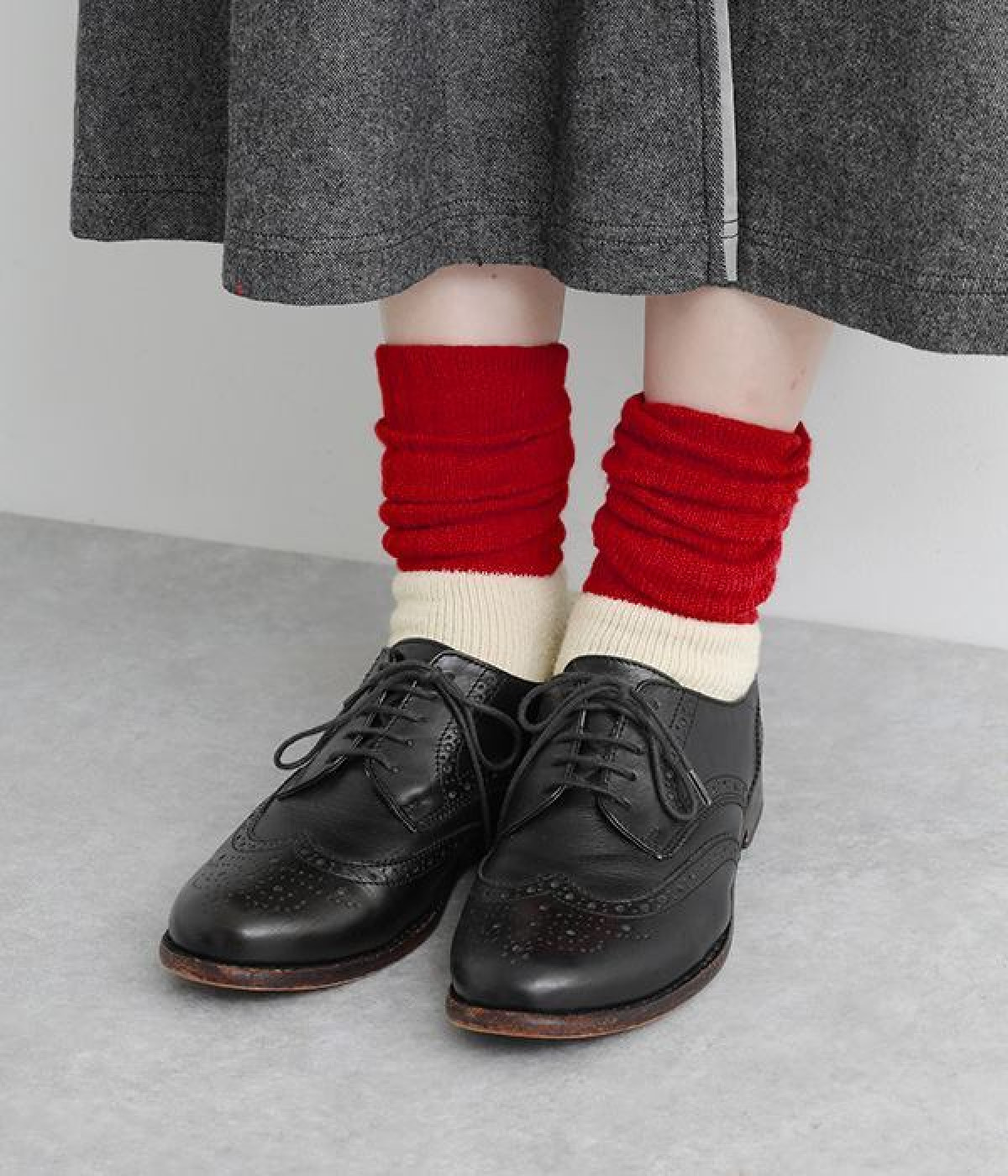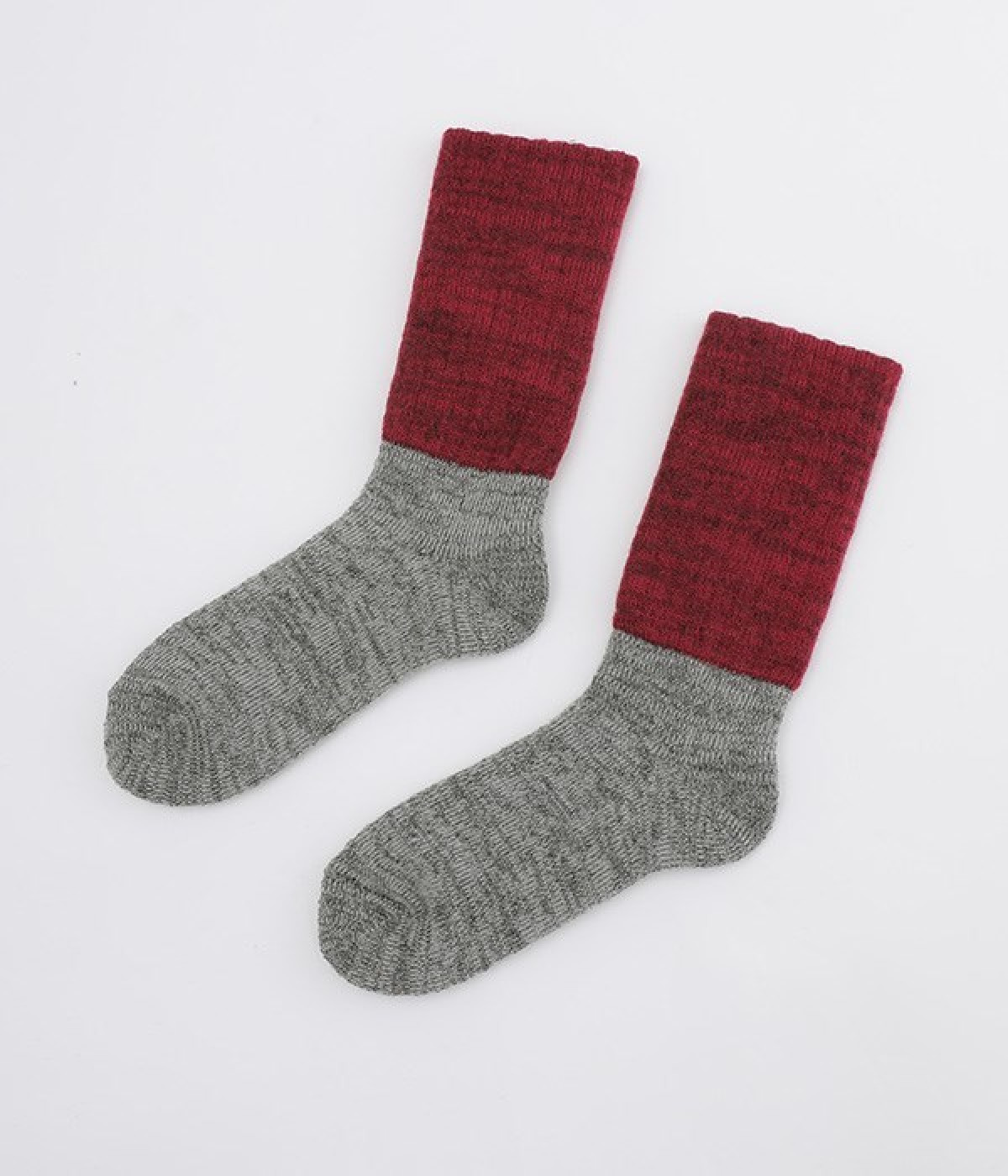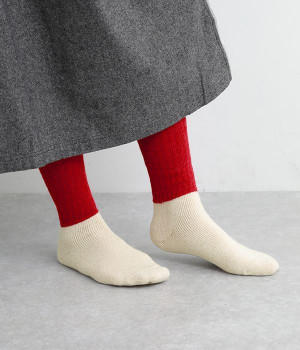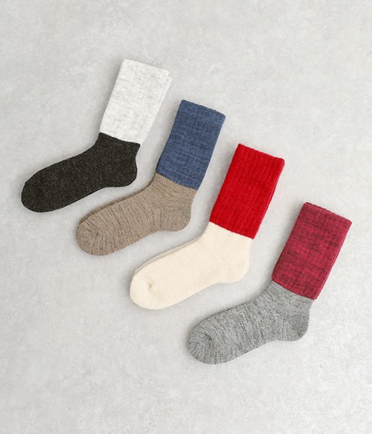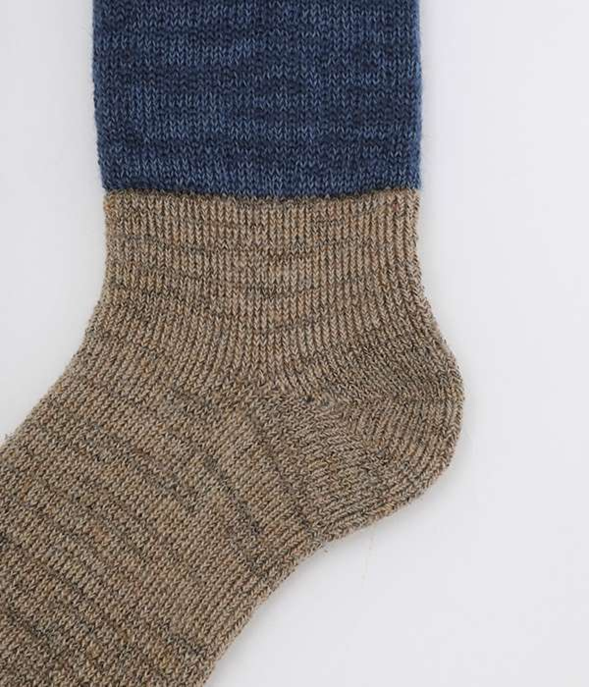 保温性に優れたモヘア、ナイロン、ウールなどを混紡した糸で仕立てたパイルソックスです。やわらかで軽く、冷えが心配な時も安心なあたたかな履き心地。足の部分はパイル、足首はふっくらと二重に編んだおしゃれな切り替え仕様が着こなしを彩ります。履き口の締め付けも強すぎず快適さをプラスしました。