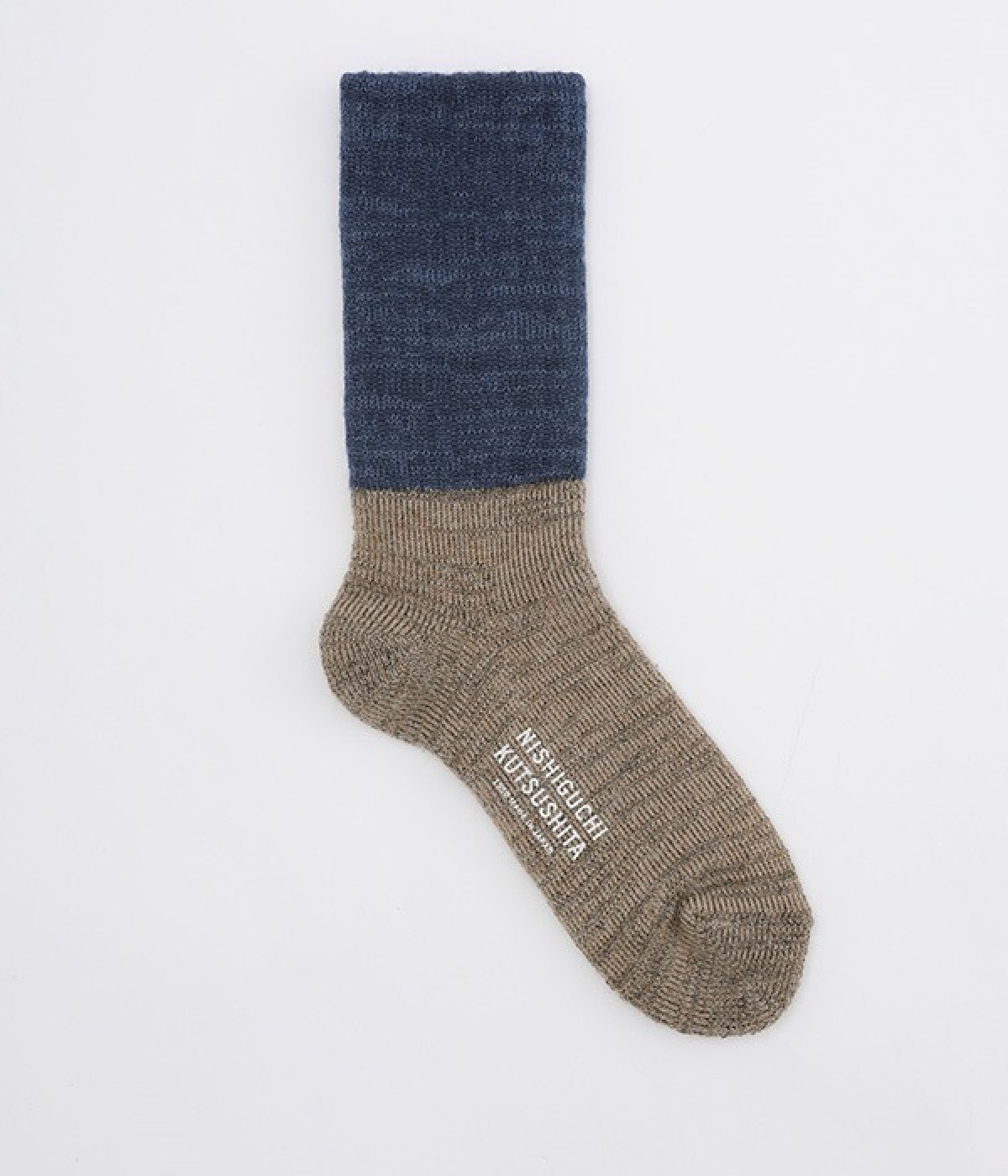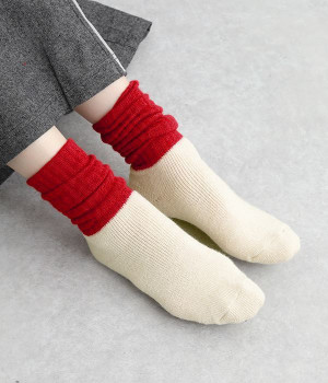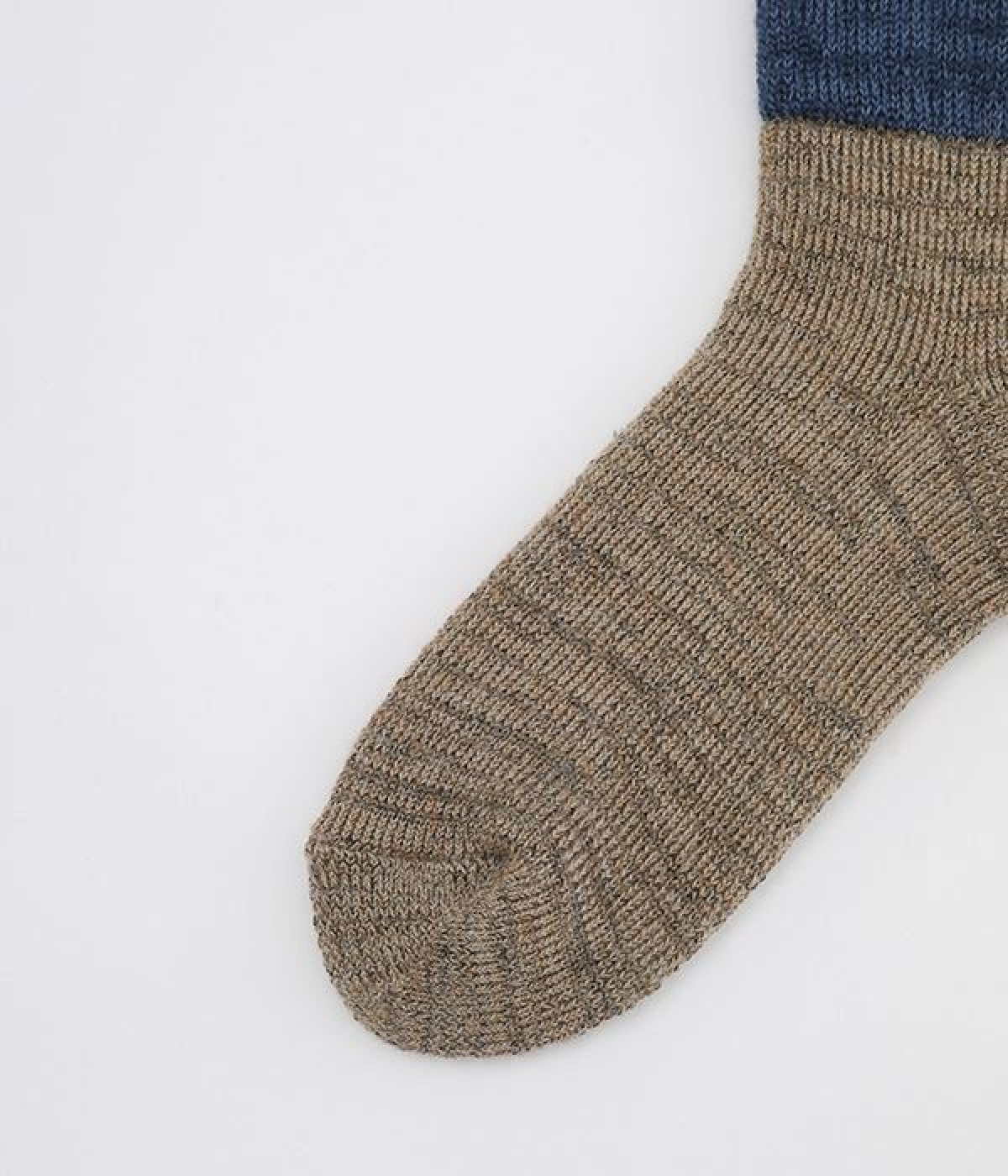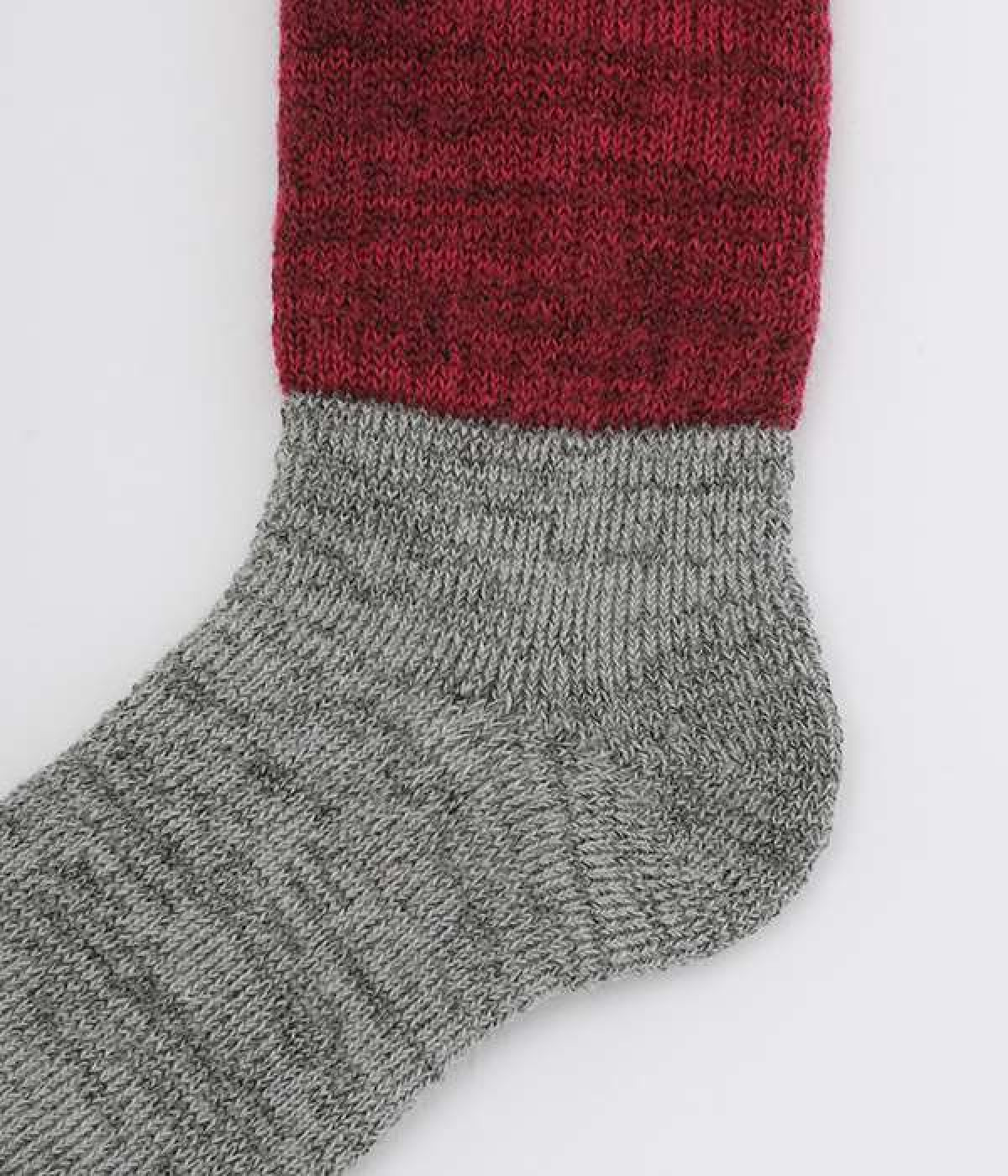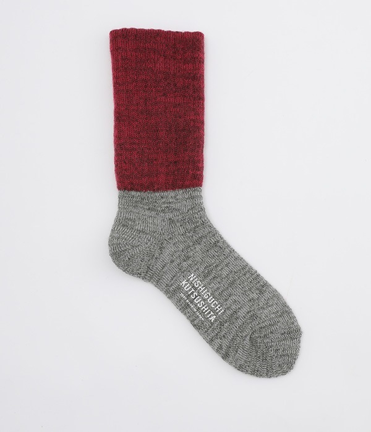 保温性に優れたモヘア、ナイロン、ウールなどを混紡した糸で仕立てたパイルソックスです。やわらかで軽く、冷えが心配な時も安心なあたたかな履き心地。足の部分はパイル、足首はふっくらと二重に編んだおしゃれな切り替え仕様が着こなしを彩ります。履き口の締め付けも強すぎず快適さをプラスしました。