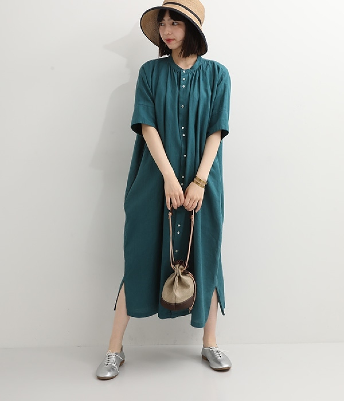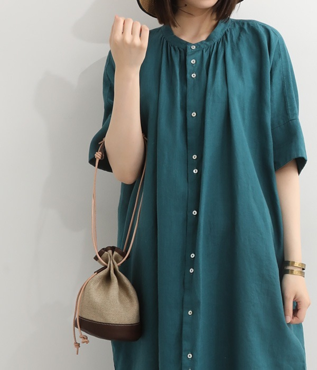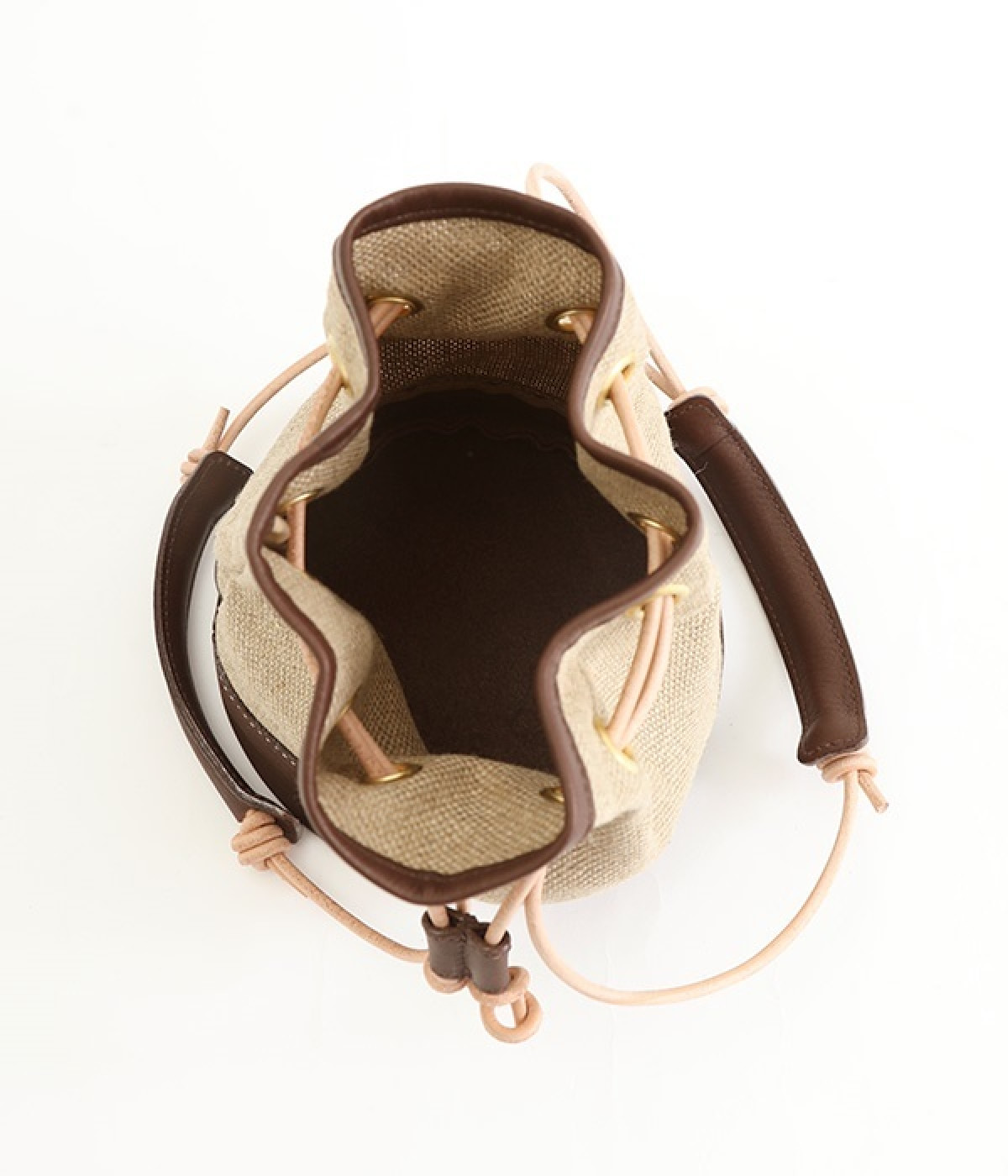 リネンと本革を使用したコンビ素材のコントラストがおしゃれな巾着バッグです。肩掛けスタイルにも手持ちスタイルにも対応するので、気分によって使い分けが可能。円形の底マチが備わって安定感があり、見た目以上にアイテムが収まります。天然素材を使用しているため、シワやシボなどの変化していく自然な風合いを楽しめるのも魅力。