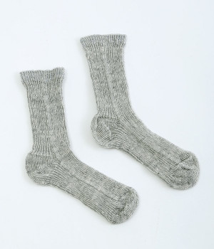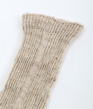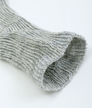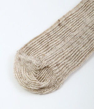 リネン特有のほどよいコシがありながらも、伸縮性に優れたリブ編みがとても柔らかなソックスです。さらっとした涼しげな肌あたりは、汗ばむ日に取り入れやすいのも◎。スタイリングになじむ、やさしいトーンのカラーをセレクト。くしゅっとたるませるとかわいらしいニュアンスが出ます。スニーカーにはもちろん、サンダル合わせにもどうぞ。